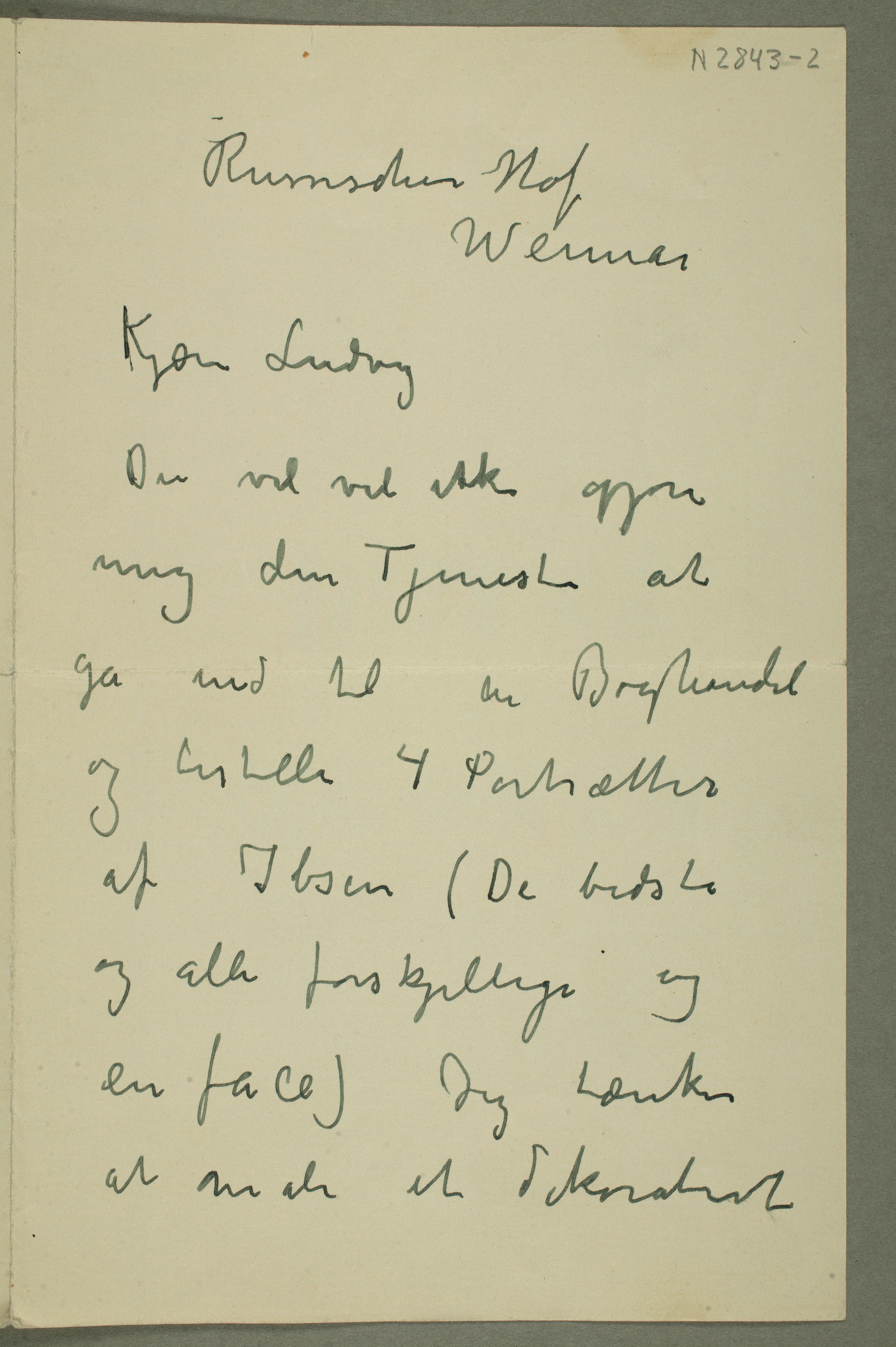 MM N 2843, Munchmuseet. Datert 6.7.1906. Brev til Ludvig Ravensberg