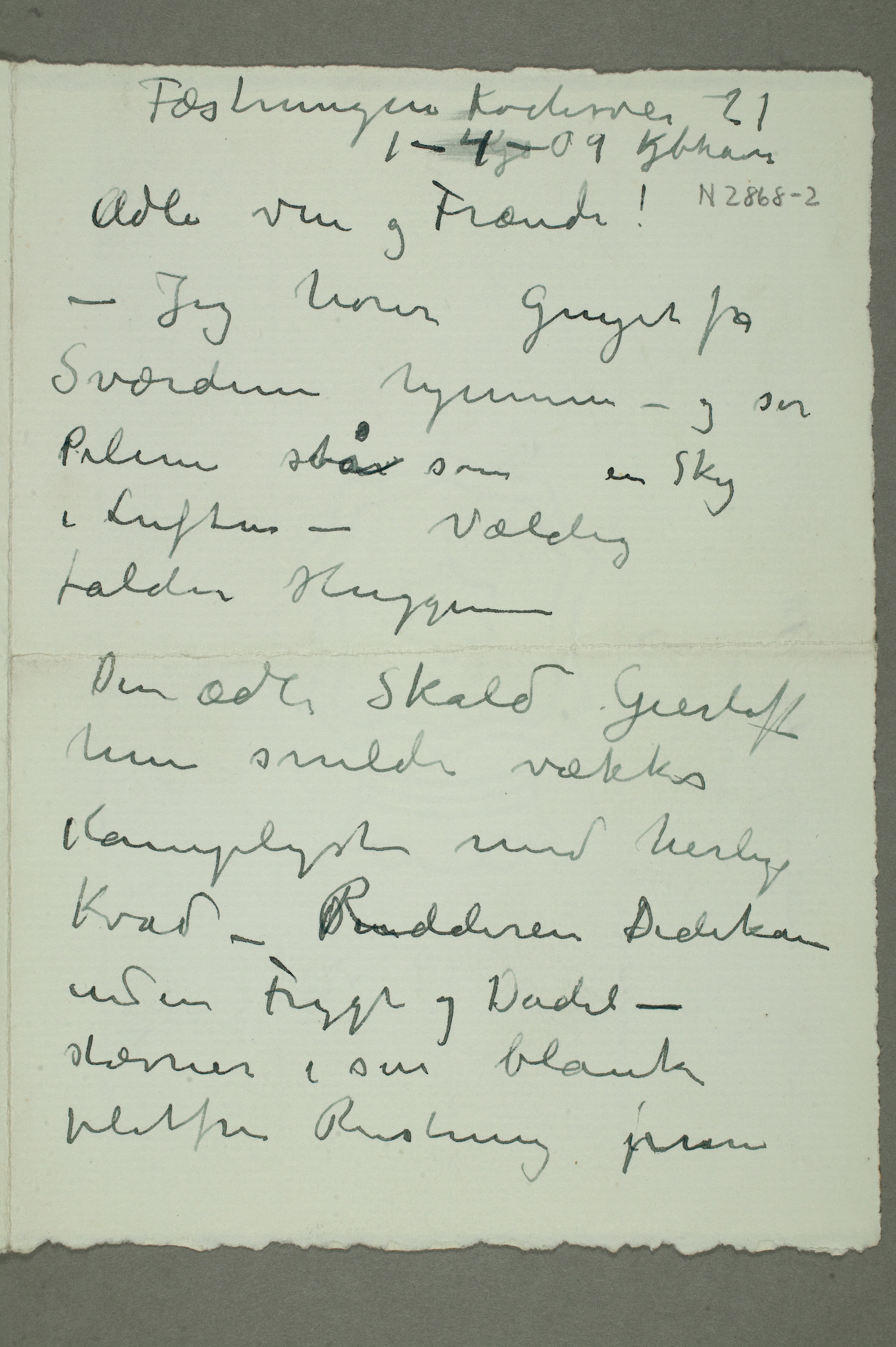 MM N 2868, Munchmuseet. Datert 2.4.1909. Brev til Ludvig Ravensberg