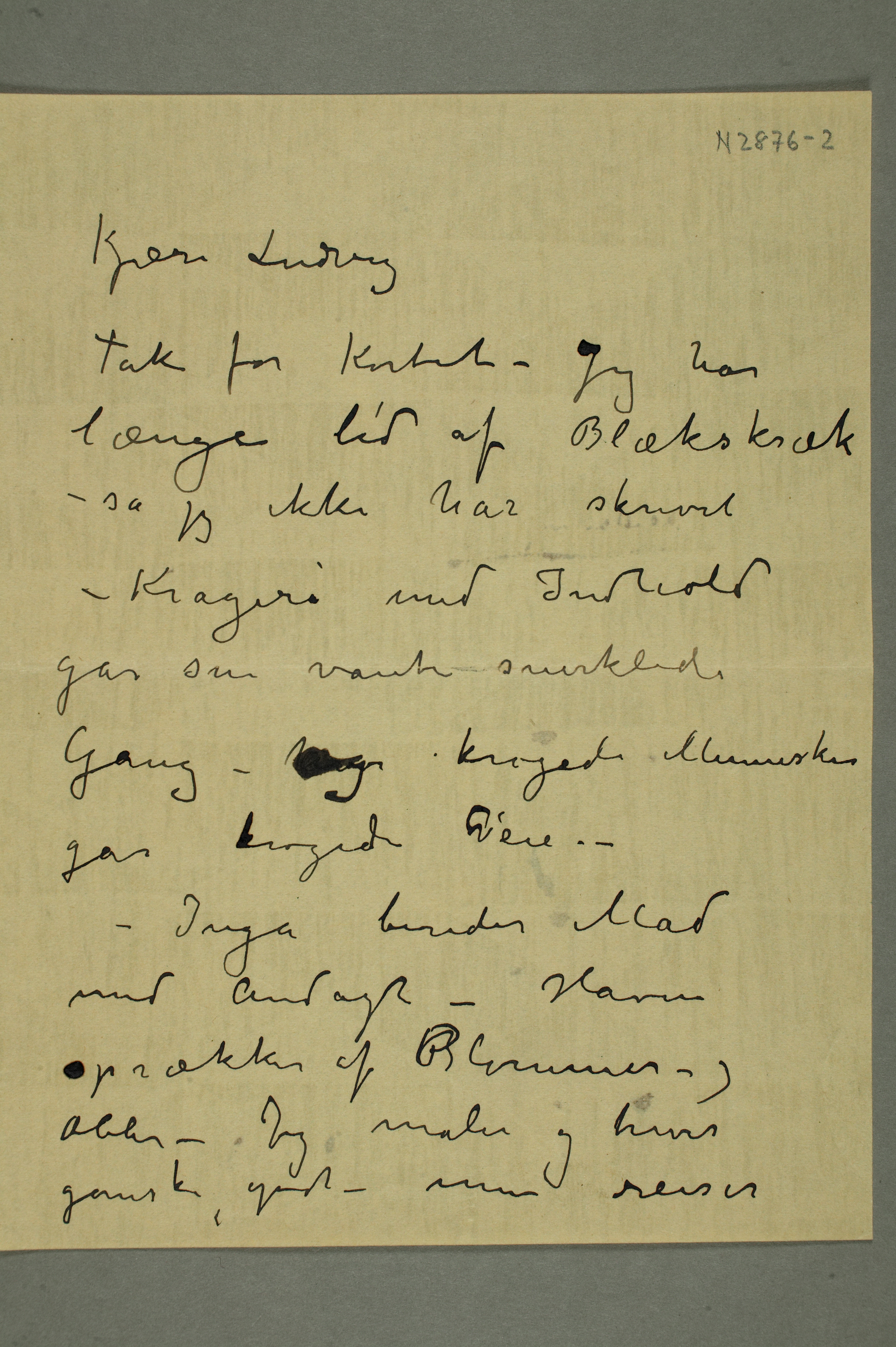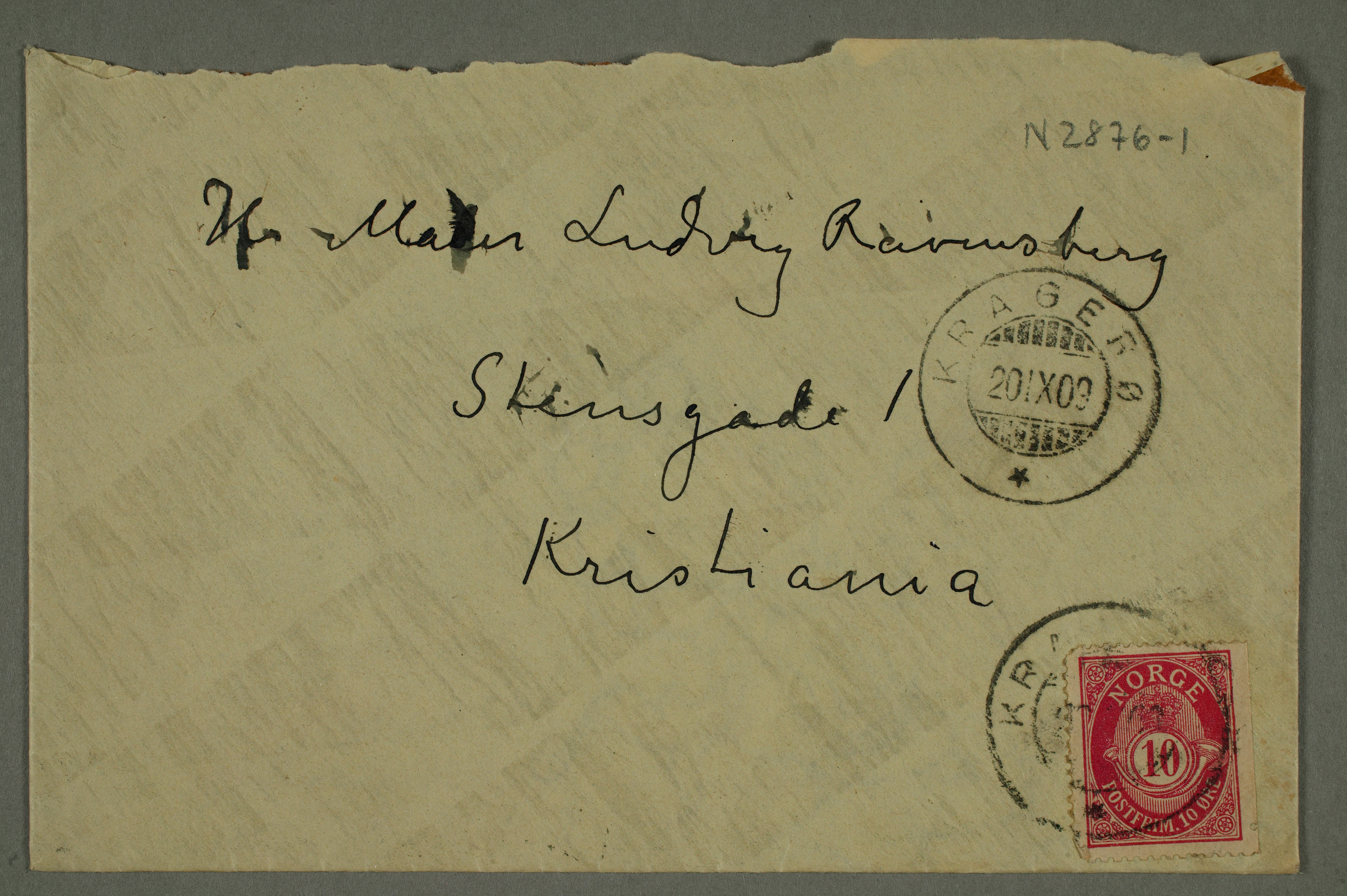 MM N 2876, Munchmuseet. Datert 21.9.1909. Brev til Ludvig Ravensberg