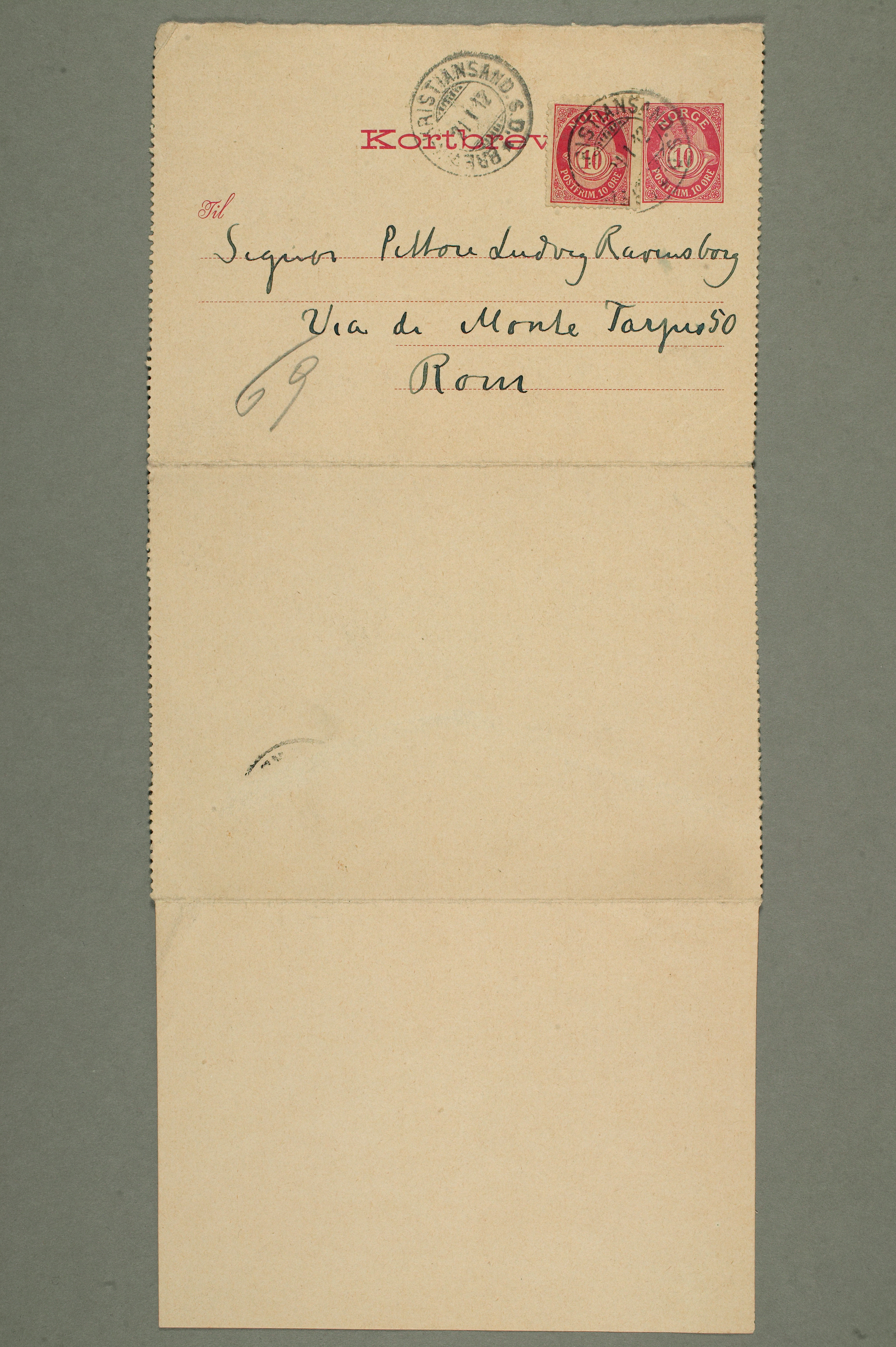 MM N 2884, Munchmuseet. Datert 21.1.1912. Brev til Ludvig Ravensberg