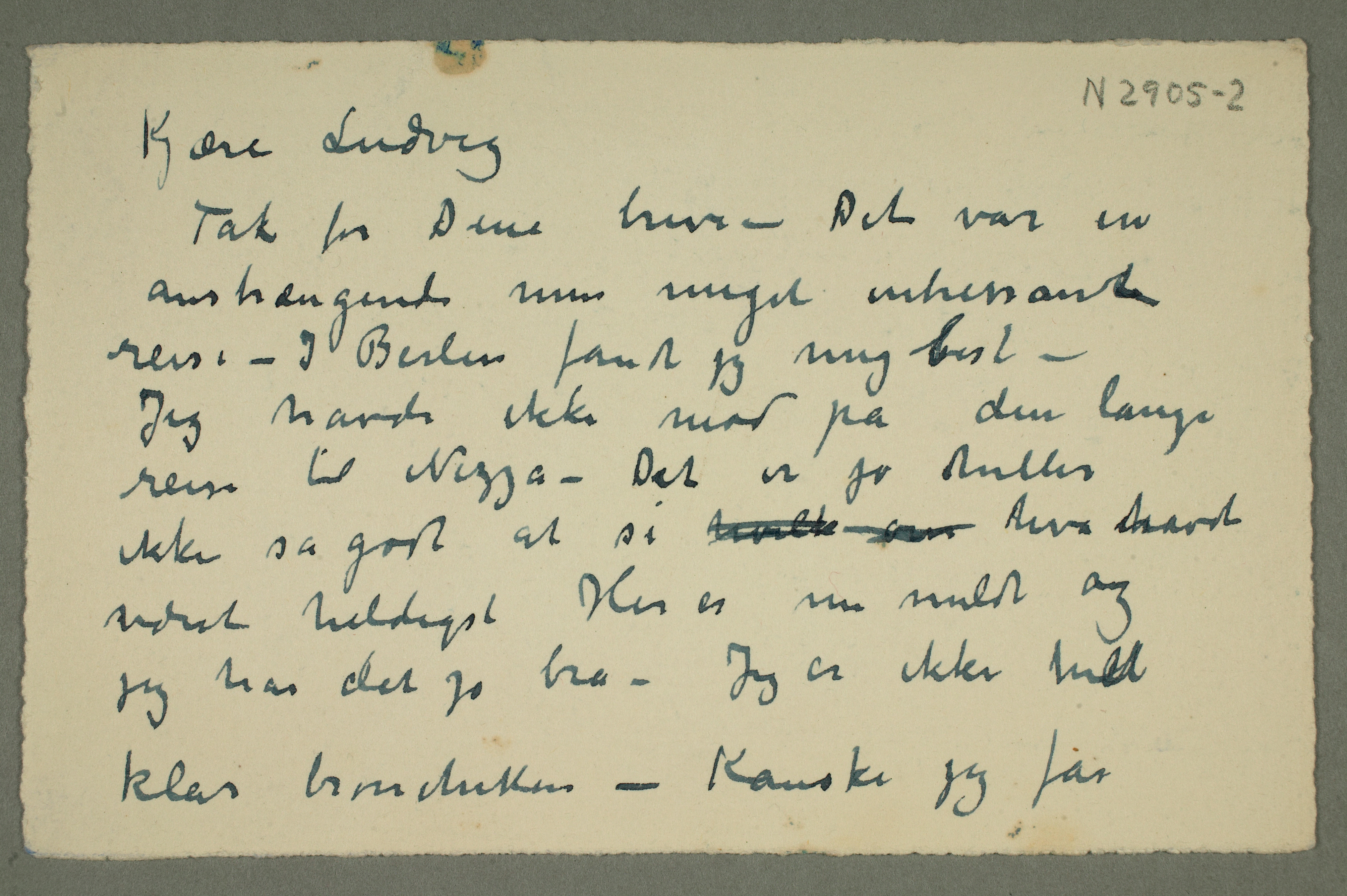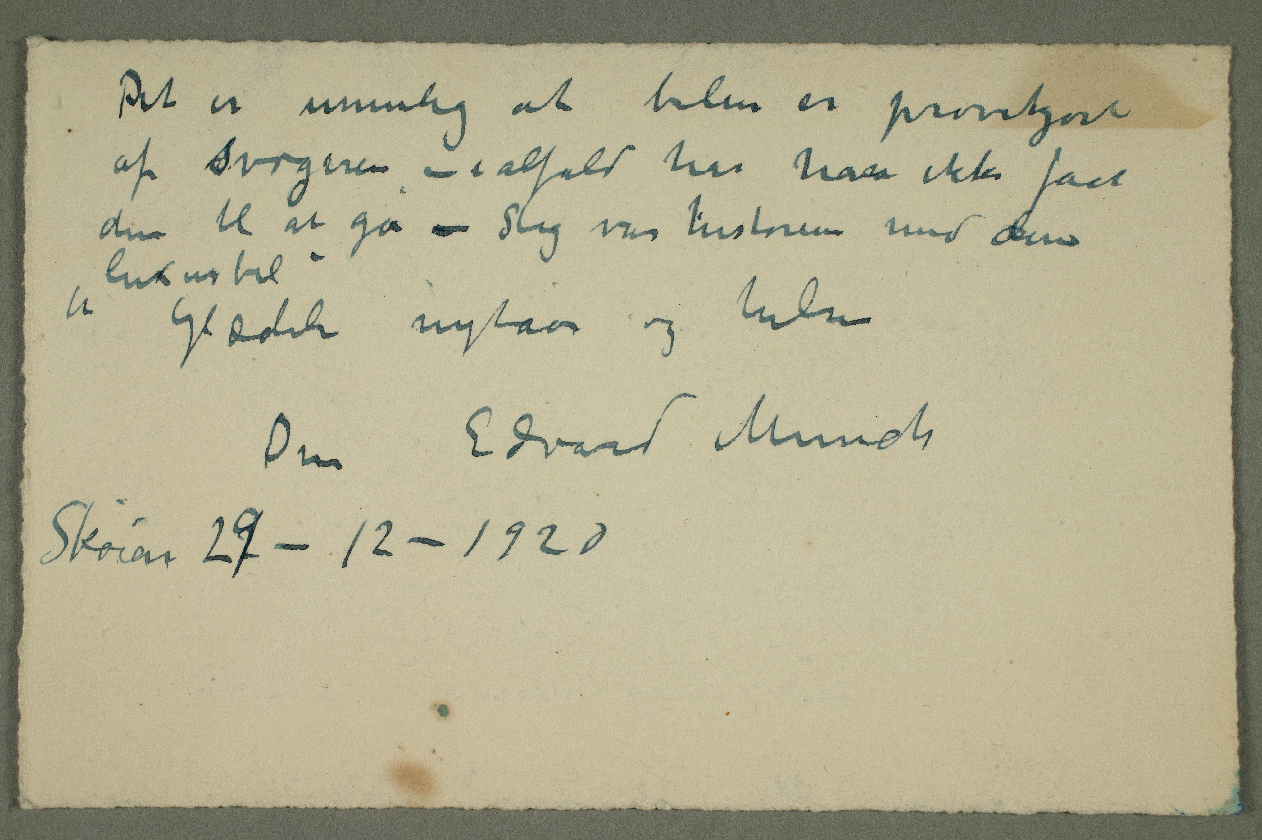 MM N 2905, Munchmuseet. Datert 29.12.1920. Brev til Ludvig Ravensberg