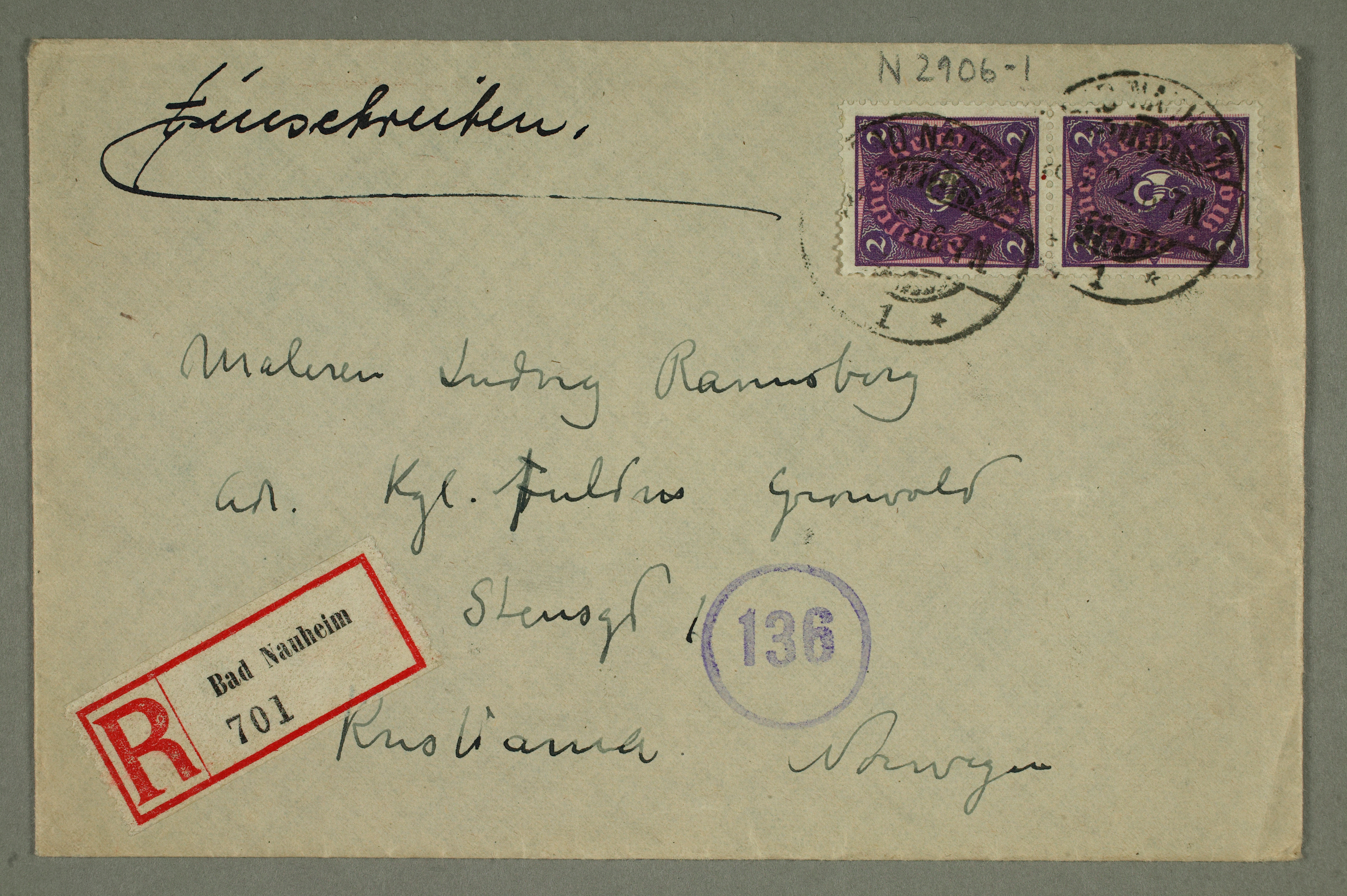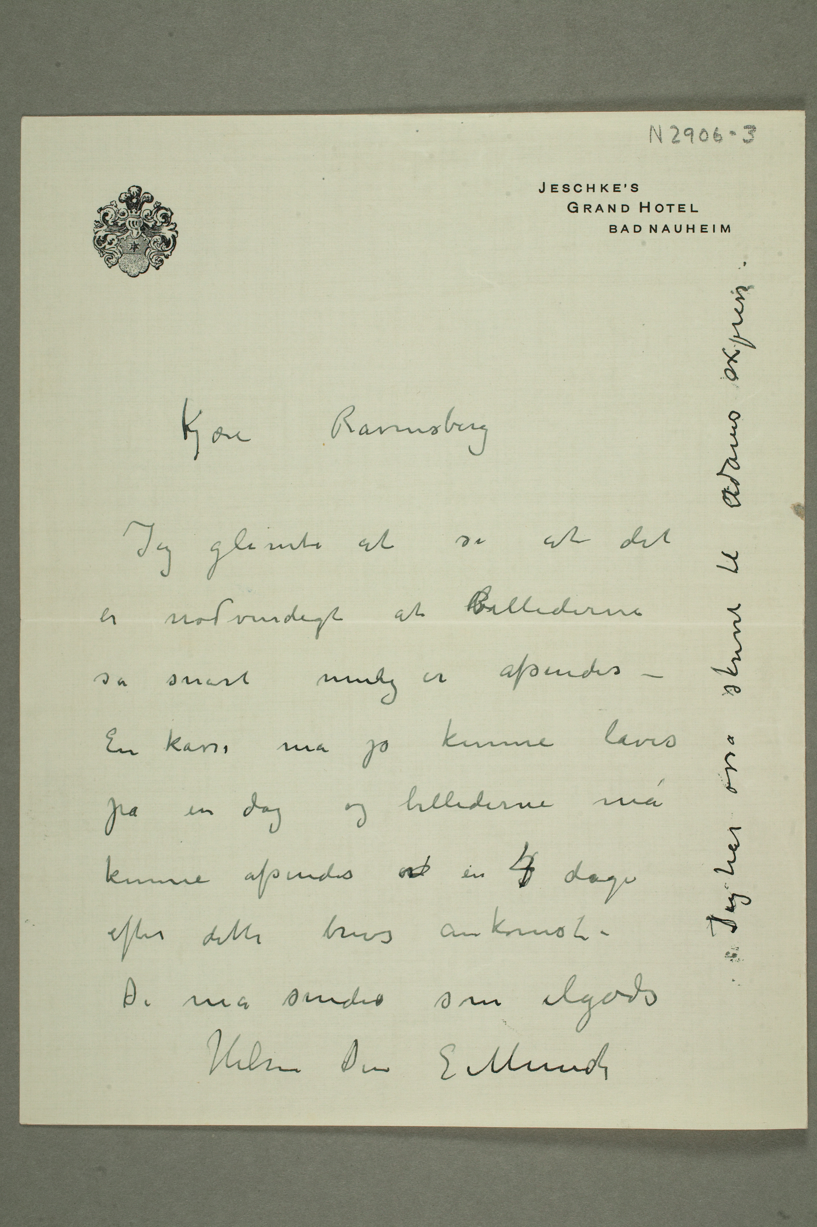 MM N 2906, Munchmuseet. Datert 1.5.1922. Brev til Ludvig Ravensberg