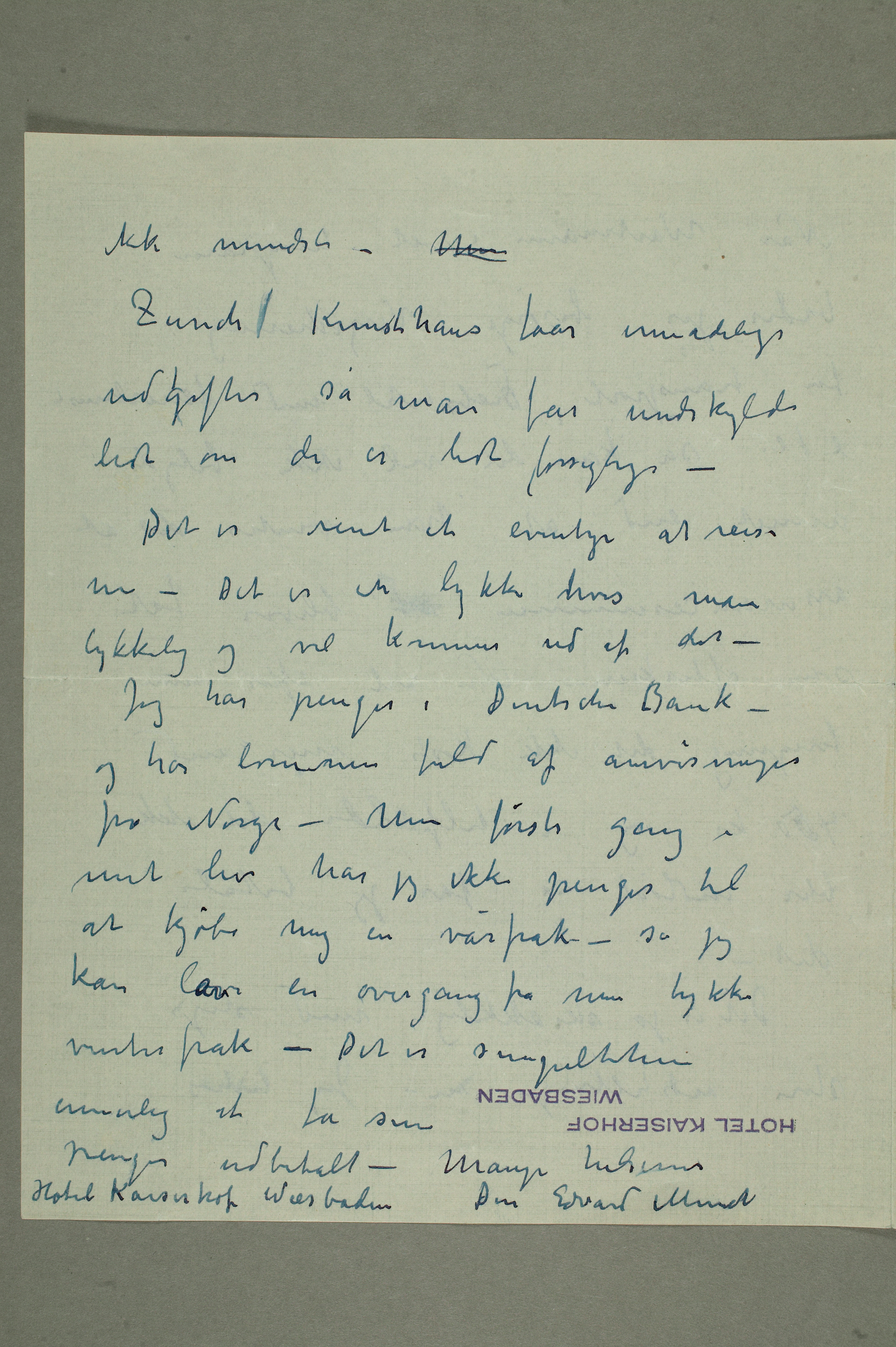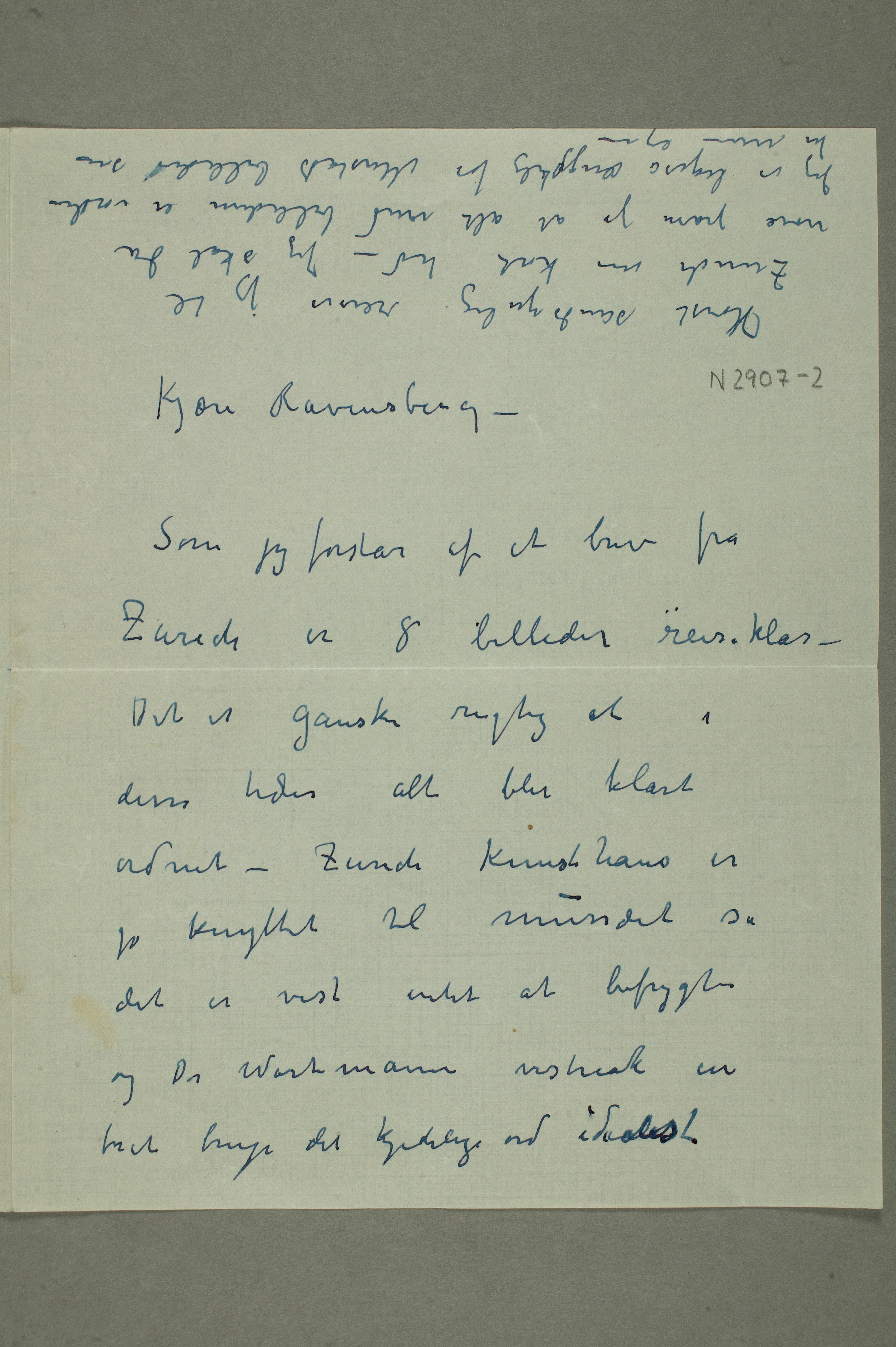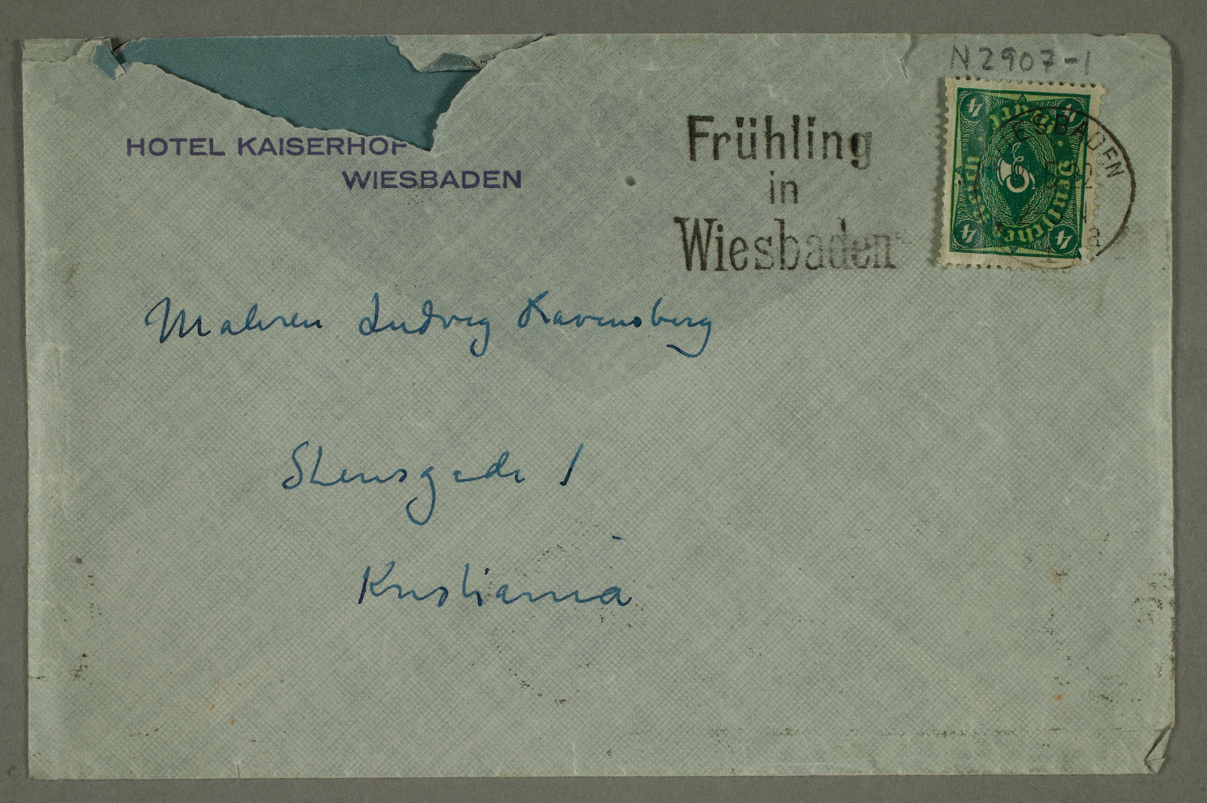 MM N 2907, Munchmuseet. Datert 8.5.1922. Brev til Ludvig Ravensberg
