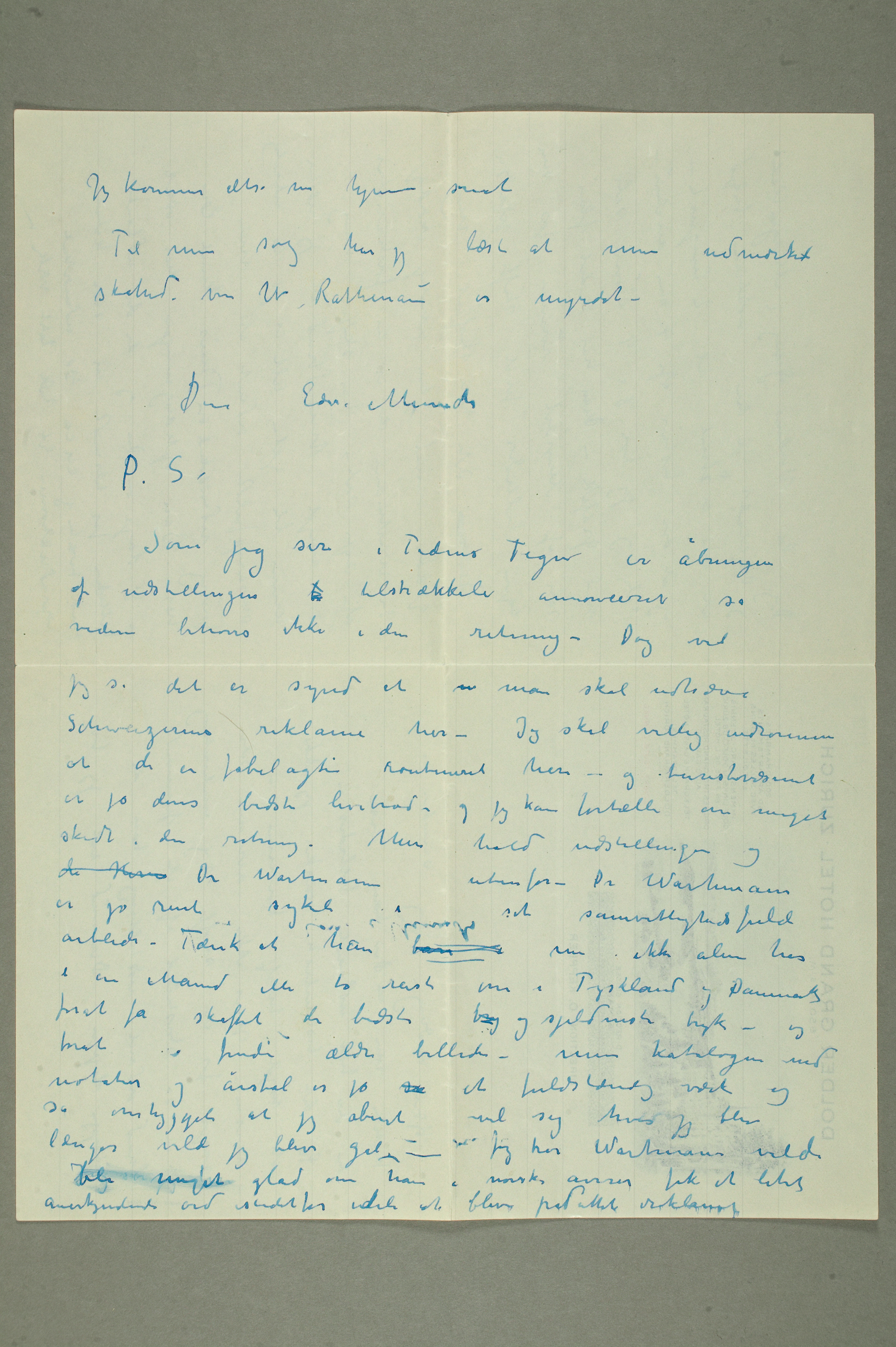 MM N 2913, Munchmuseet. Datert 25.6.1922. Brev til Ludvig Ravensberg