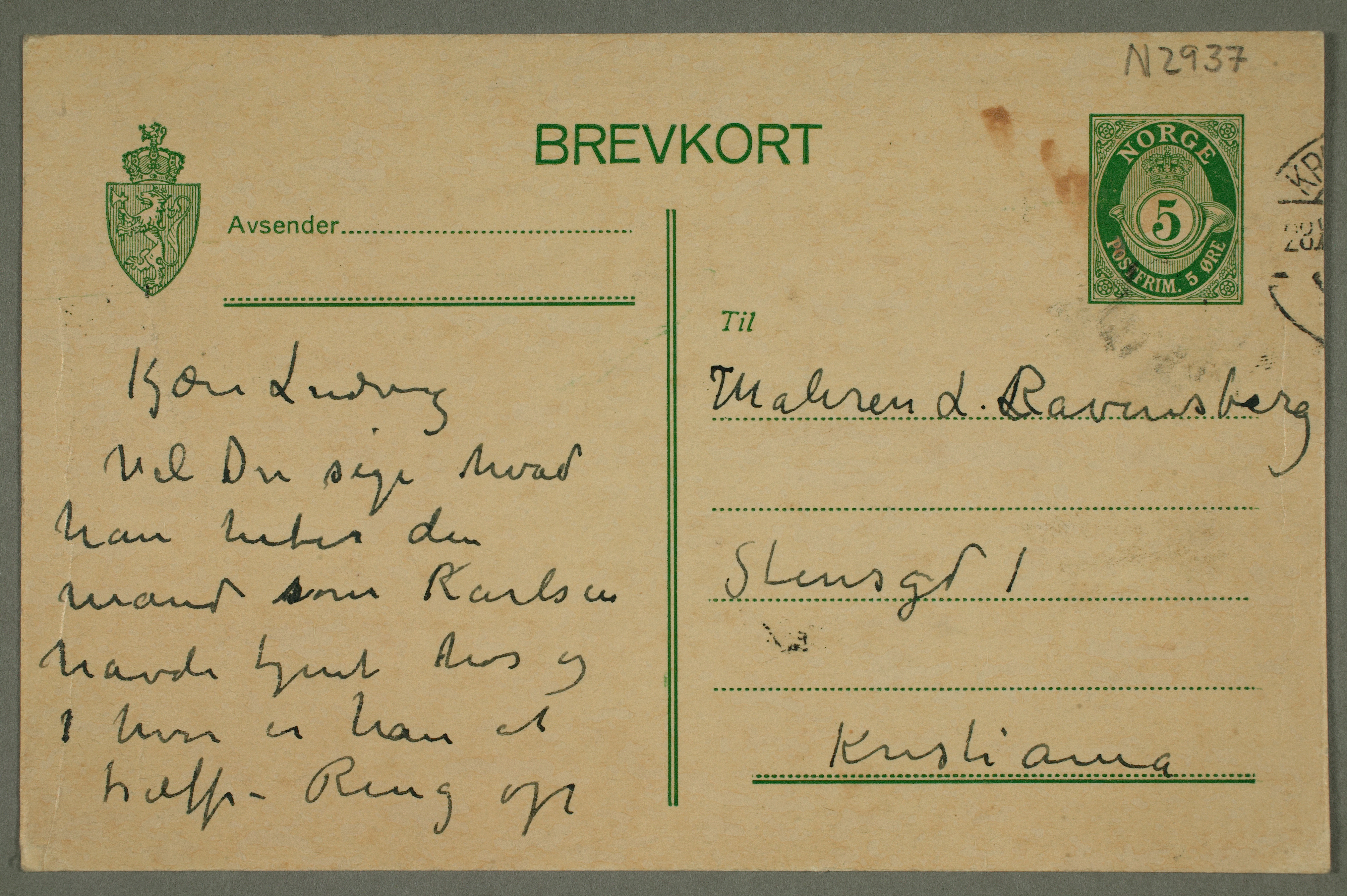 MM N 2937, Munchmuseet. Ikke datert. Brev til Ludvig Ravensberg