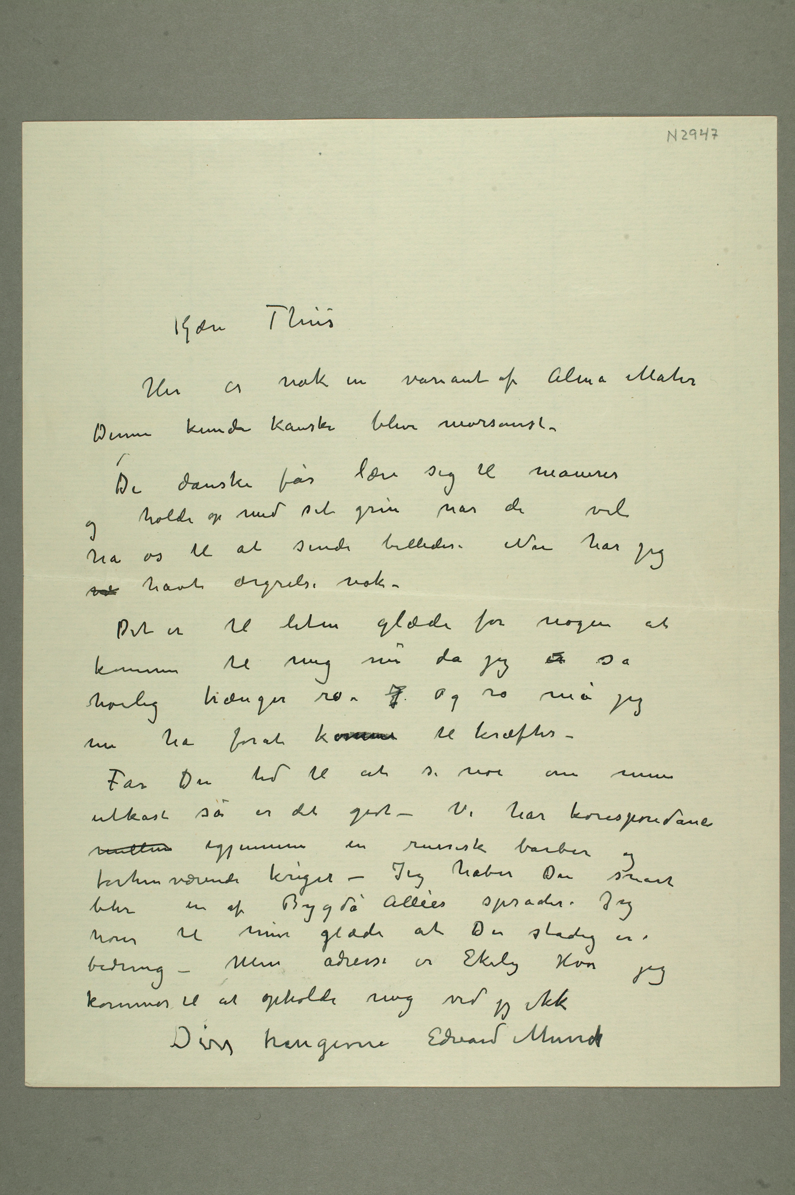 MM N 2947, Munchmuseet. Datert 1936. Brev til Jens Thiis