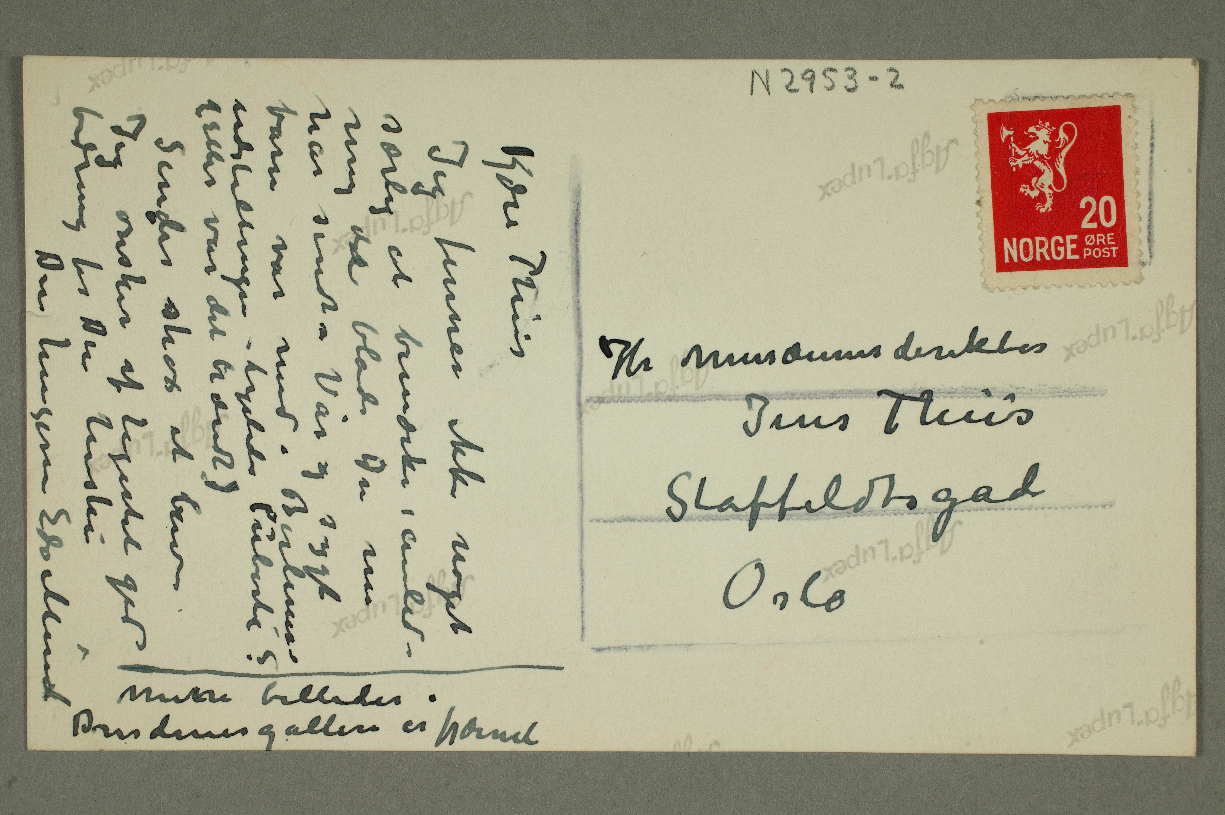 MM N 2953, Munchmuseet. Datert 1937. Brev til Jens Thiis