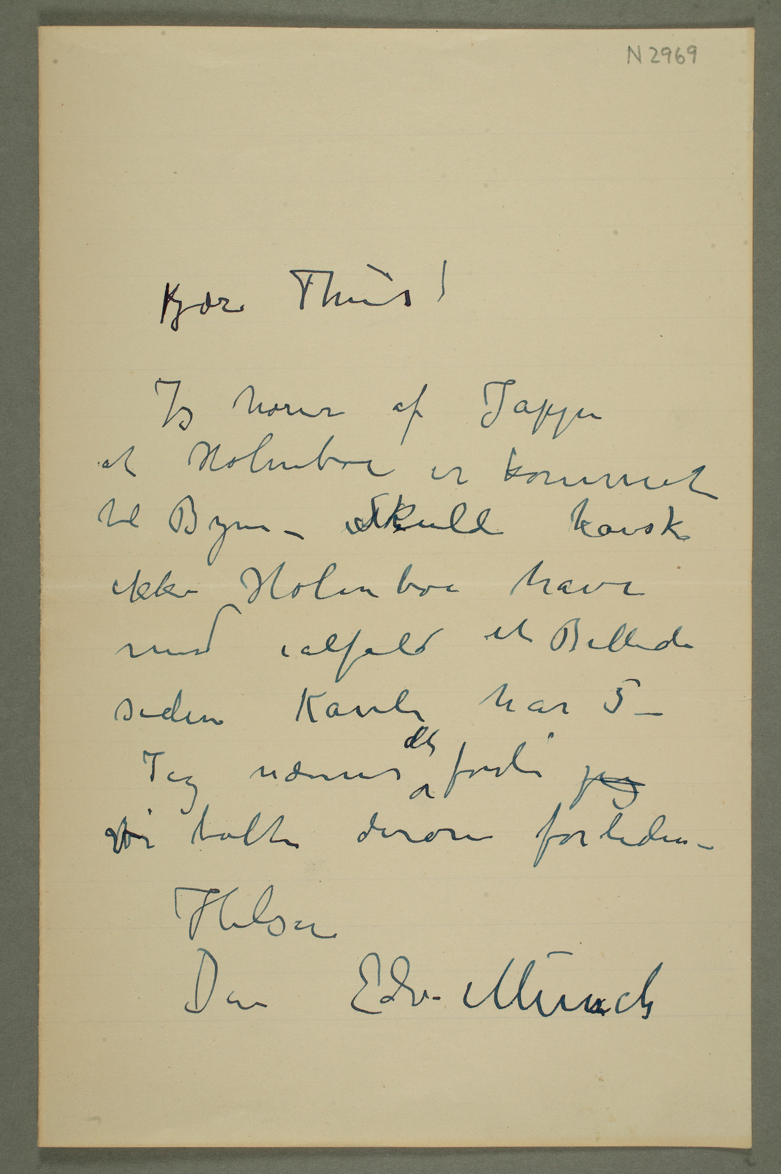 MM N 2969, Munchmuseet. Ikke datert. Brev til Jens Thiis
