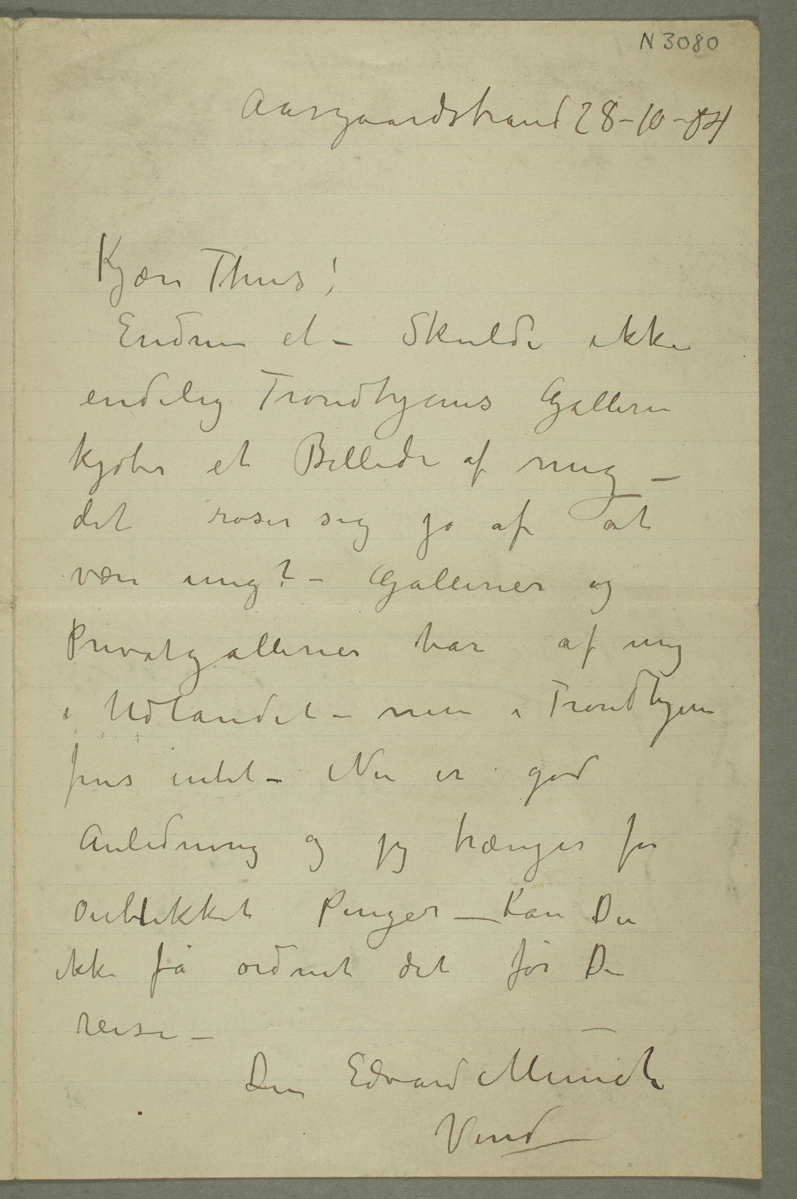 MM N 3080, Munchmuseet. Datert 28.10.1904. Brev til Jens Thiis