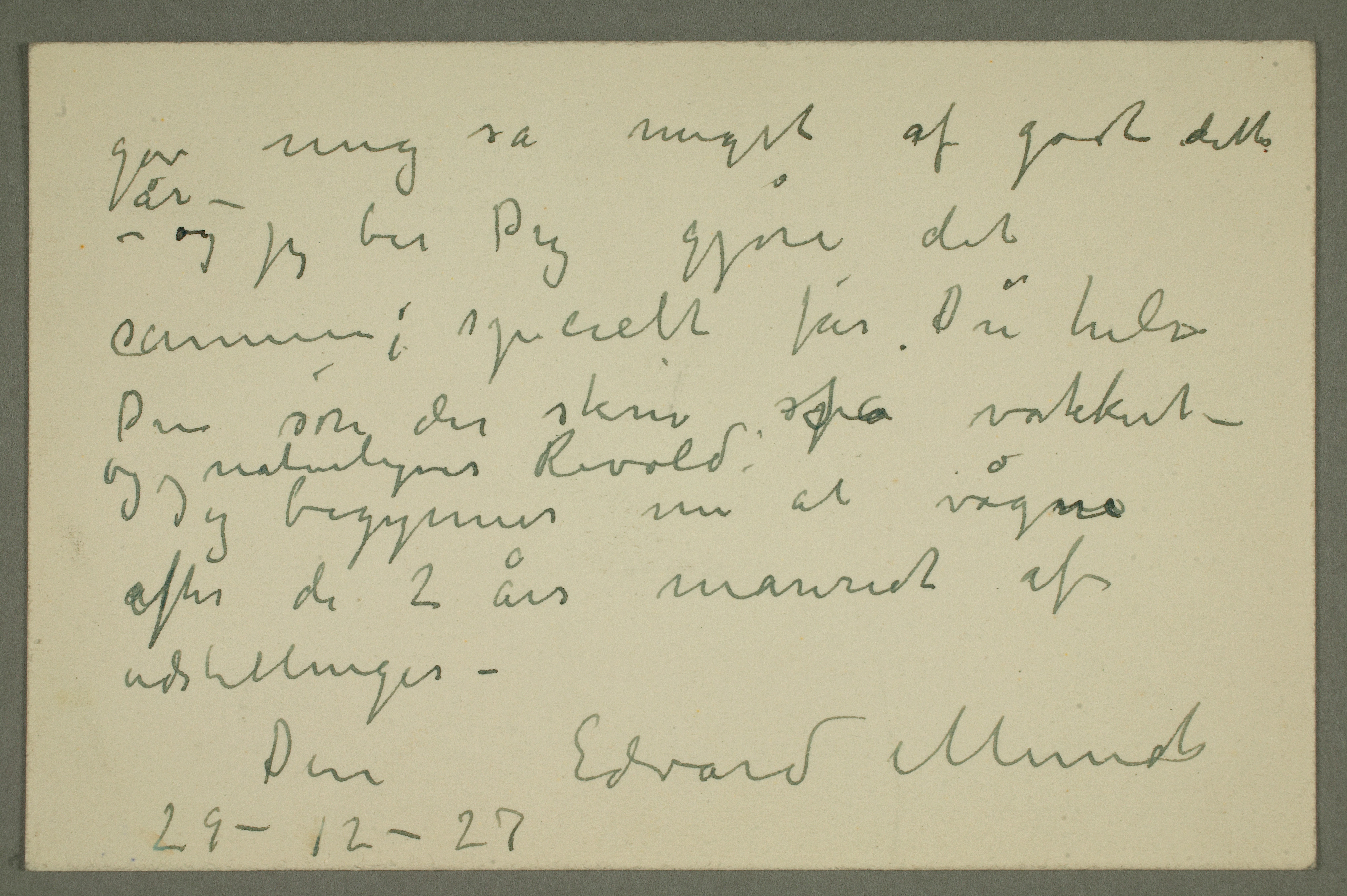 MM N 3098, Munchmuseet. Datert 29.12.1927. Brev til Jens Thiis