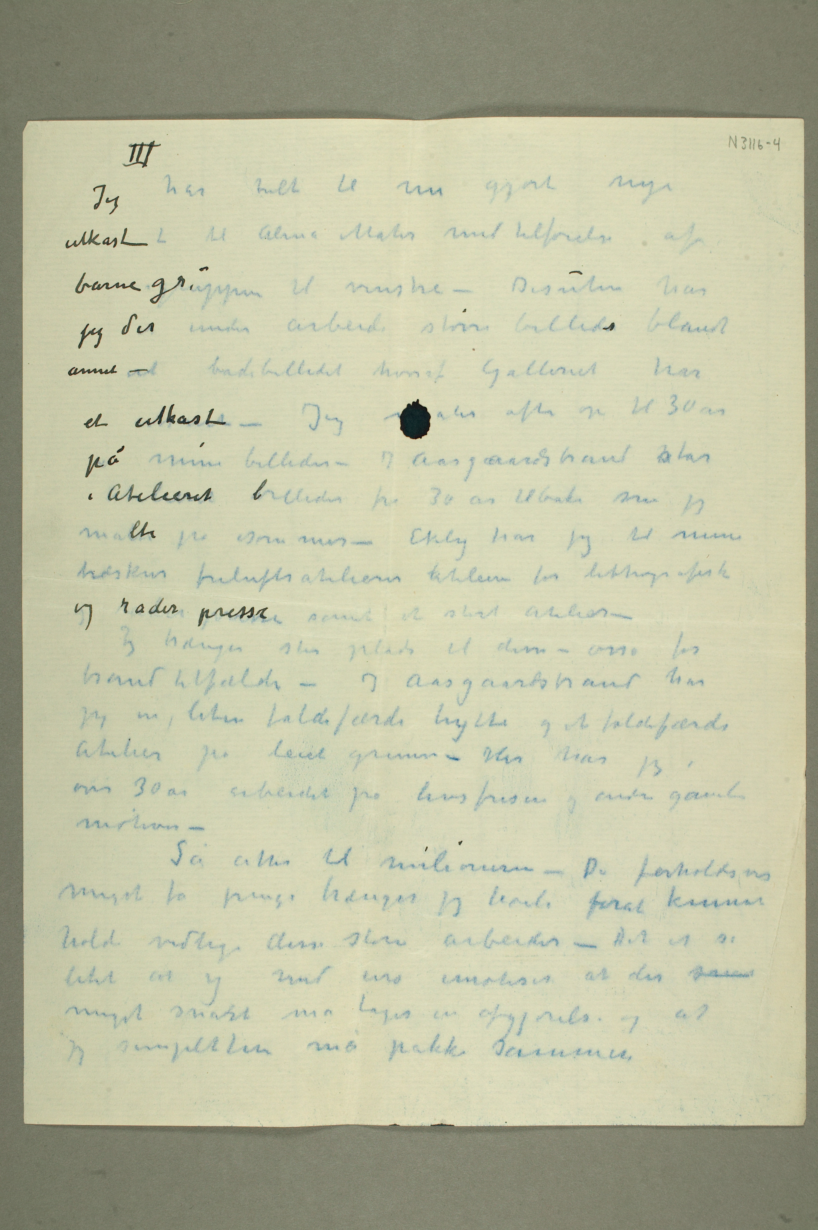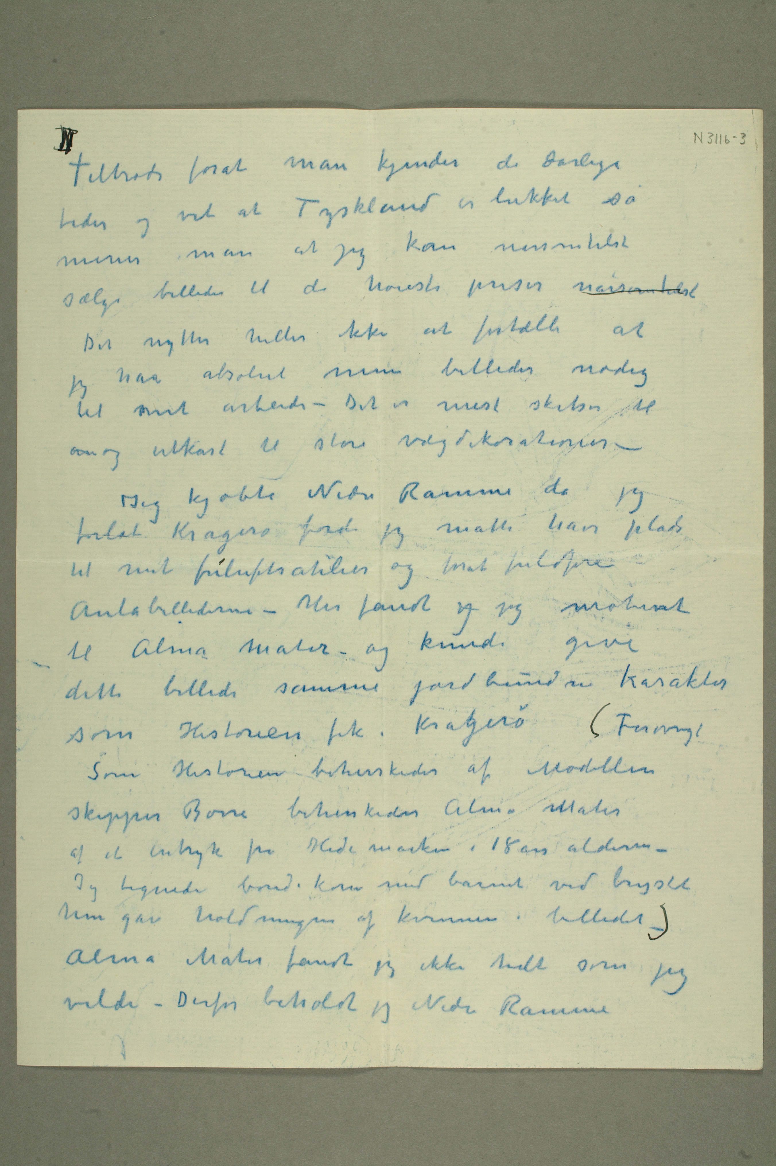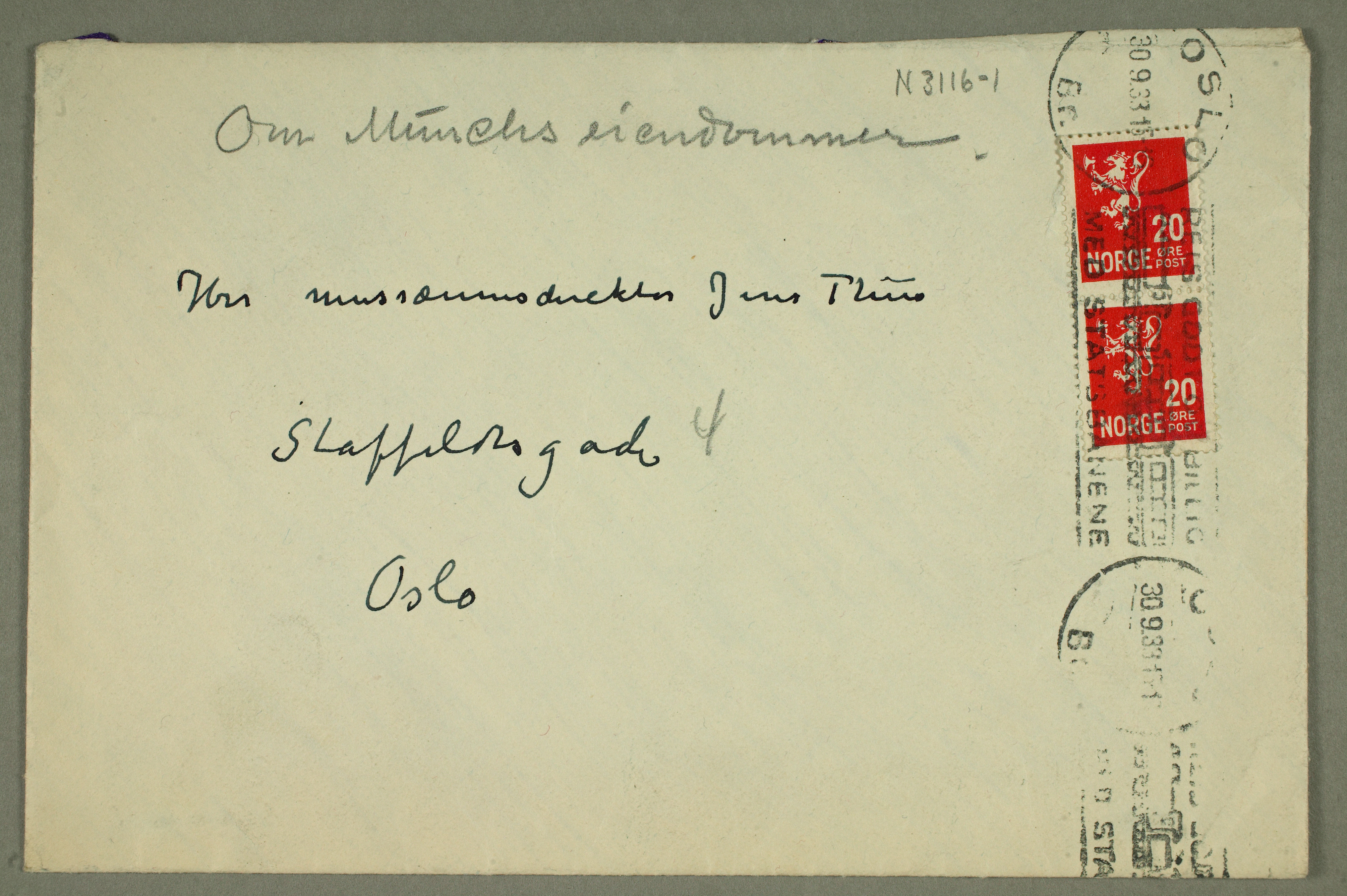 MM N 3116, Munchmuseet. Datert 30.9.1933. Brev til Jens Thiis
