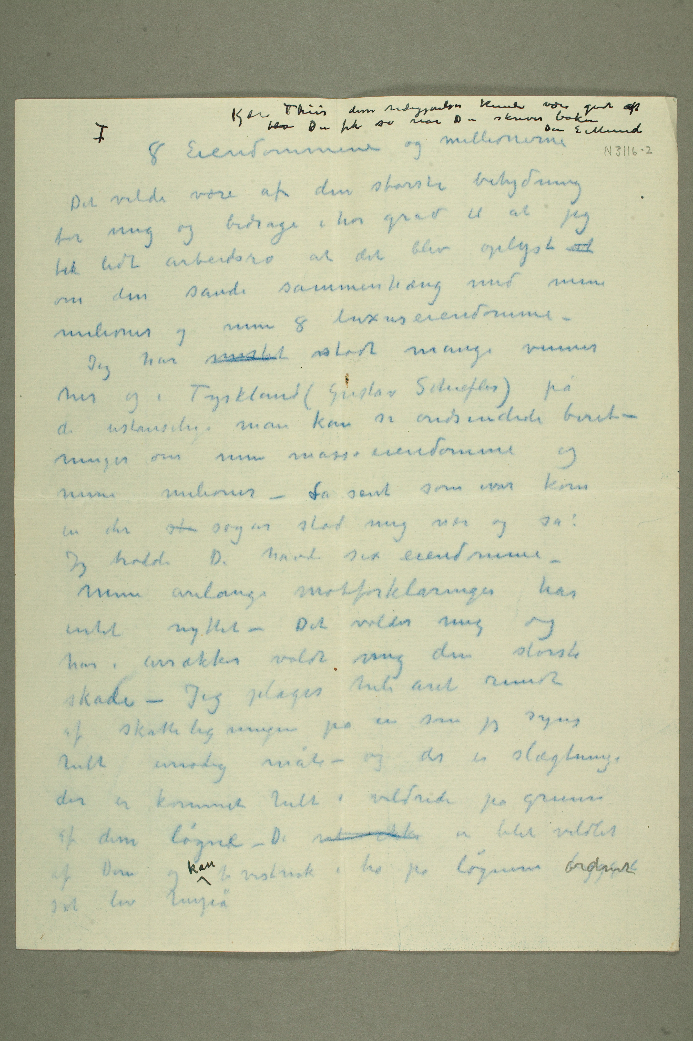 Filologisk kommentar: Blåkopi. Tydeliggjøringer og endringer med svart penn og grå blyant.