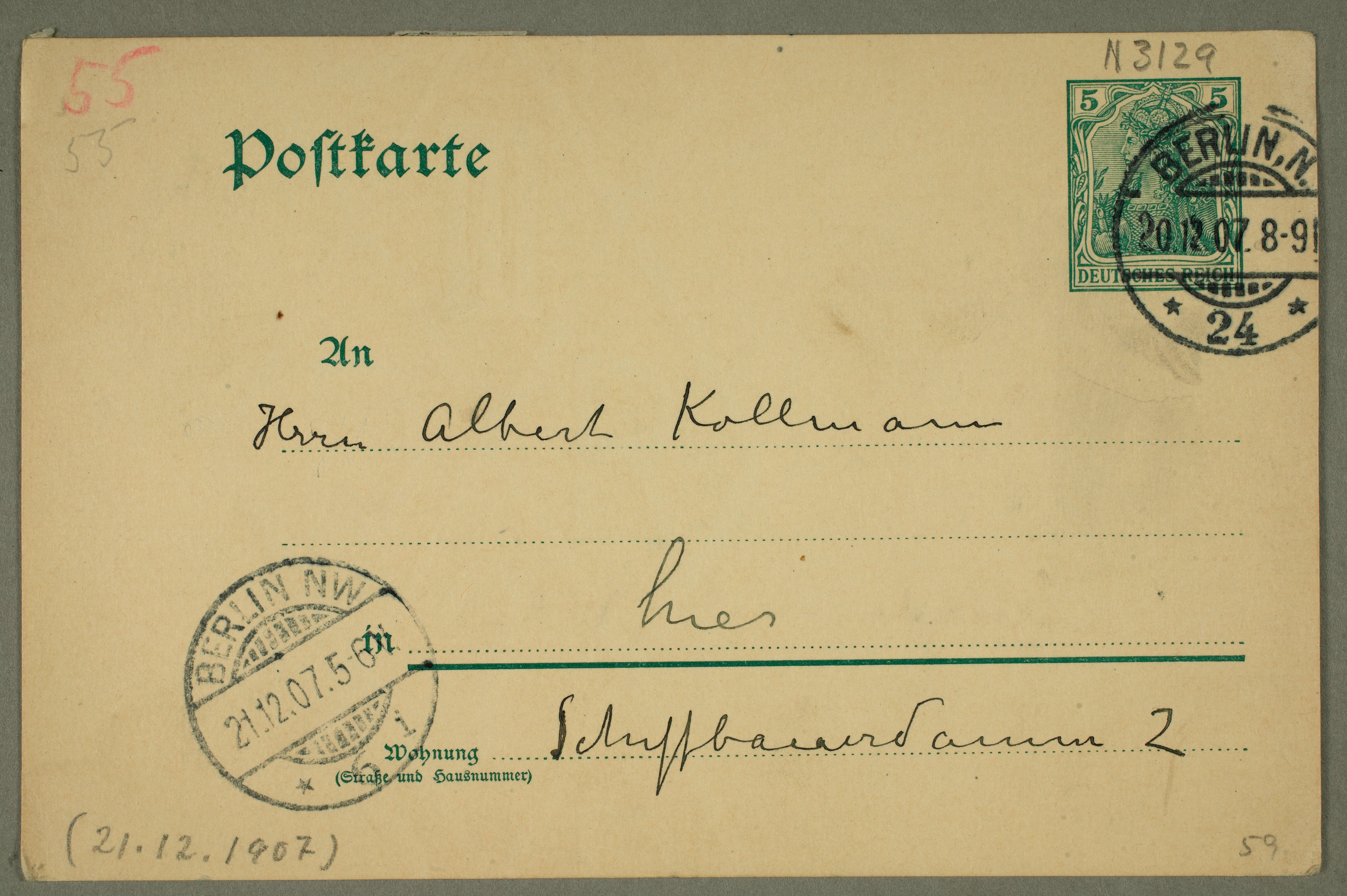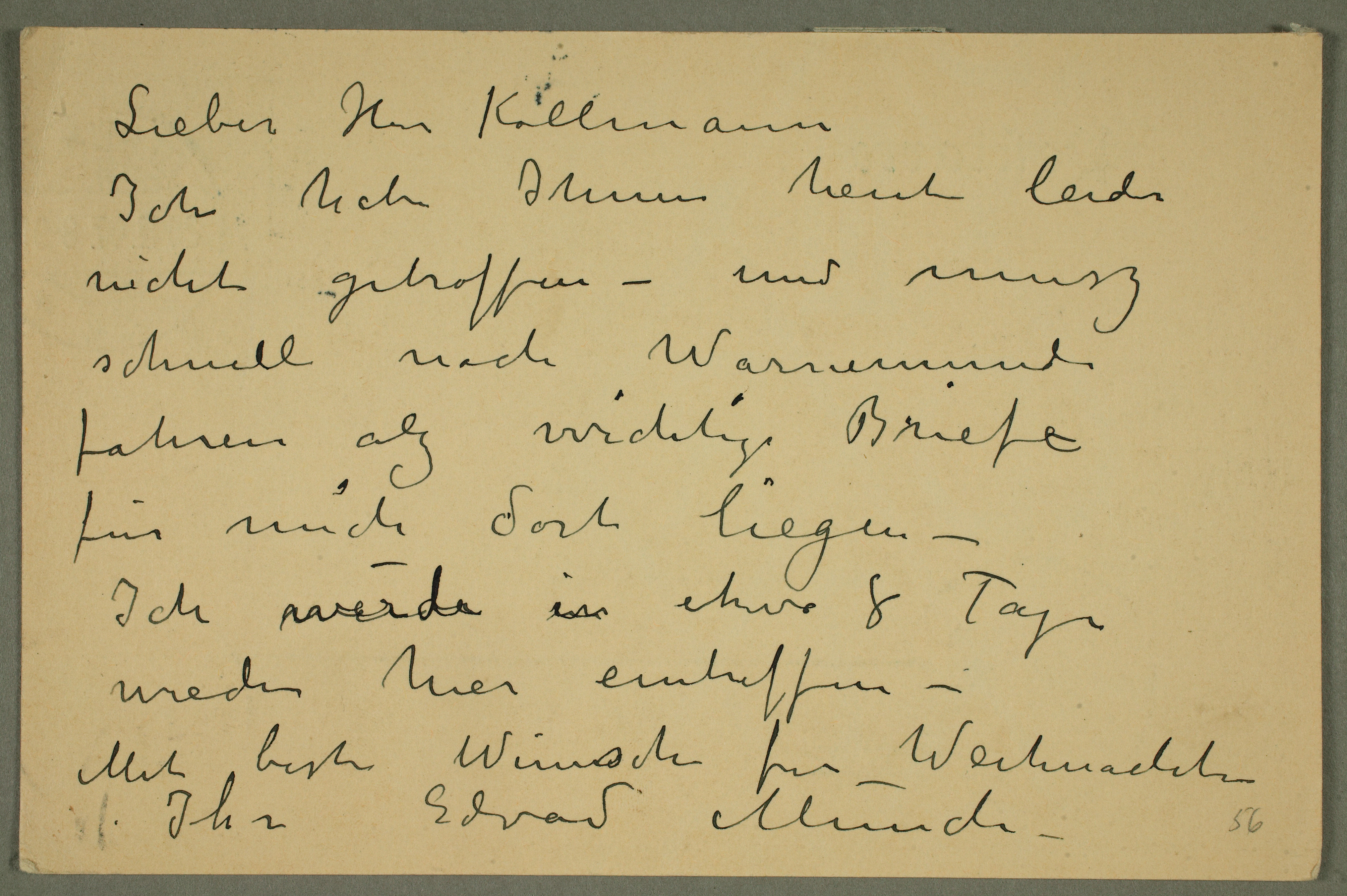 MM N 3129, Munchmuseet. Datert 21.12.1907. Brev til Albert Kollmann