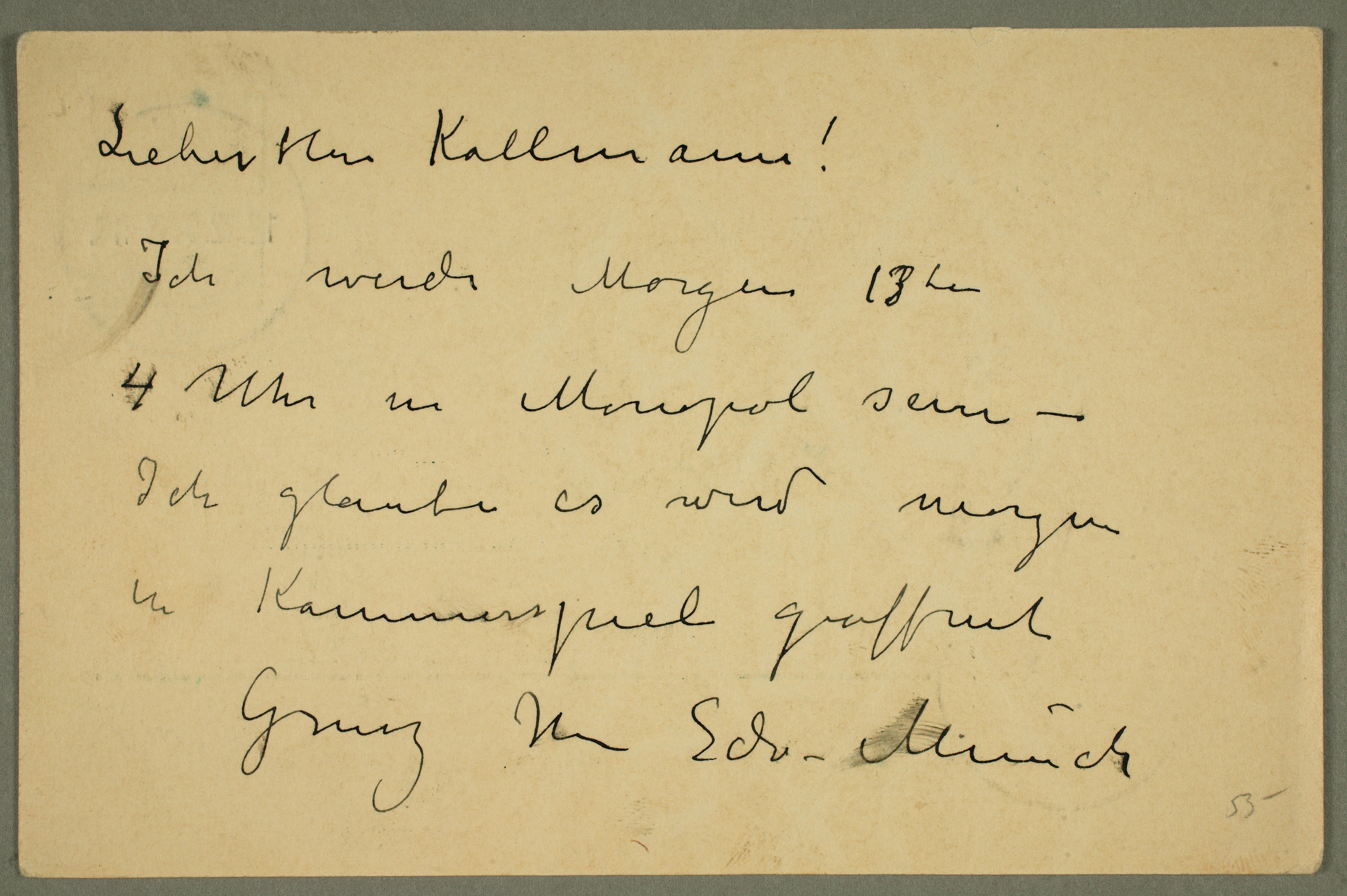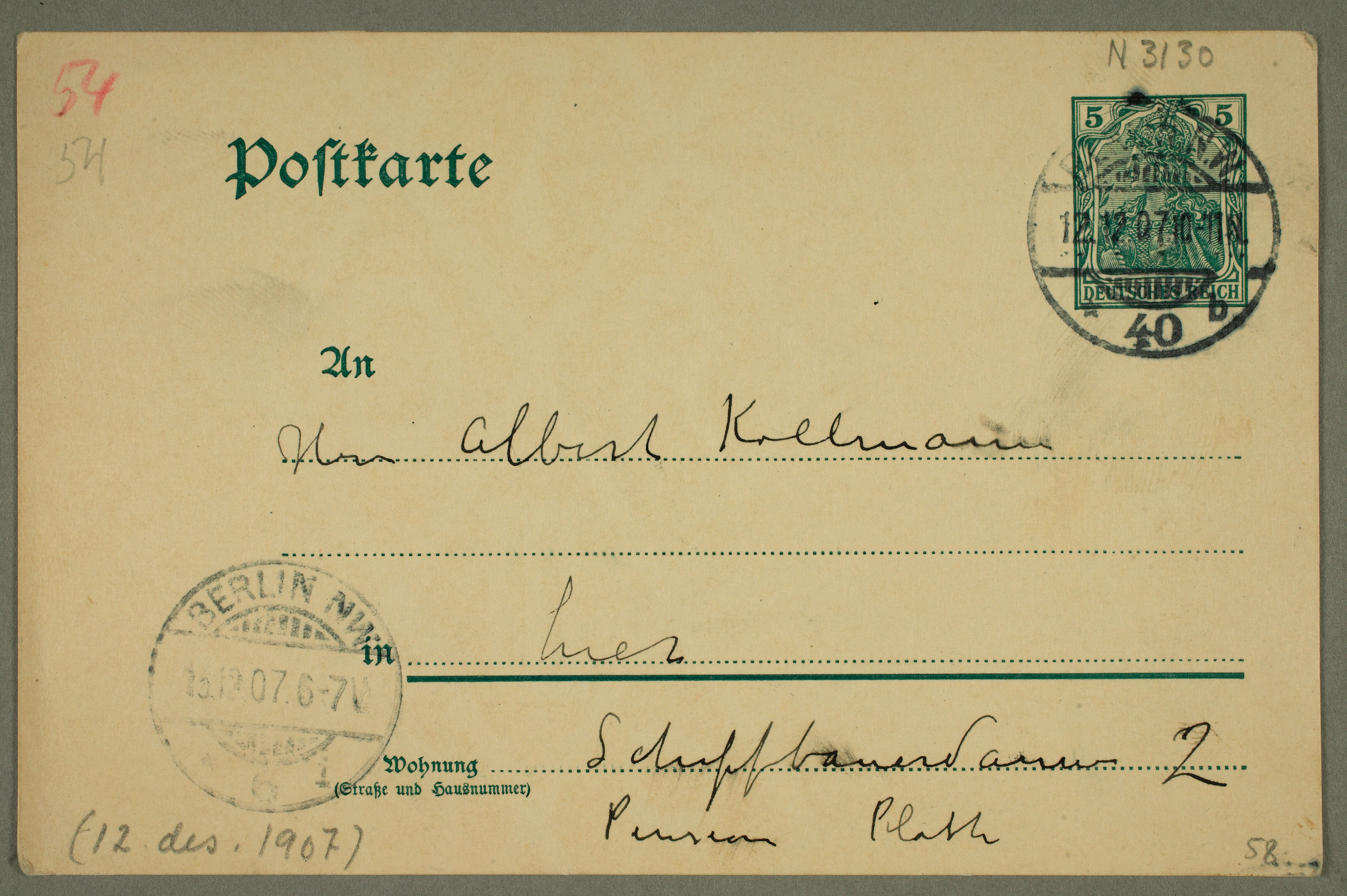 MM N 3130, Munchmuseet. Datert 12.12.1907. Brev til Albert Kollmann