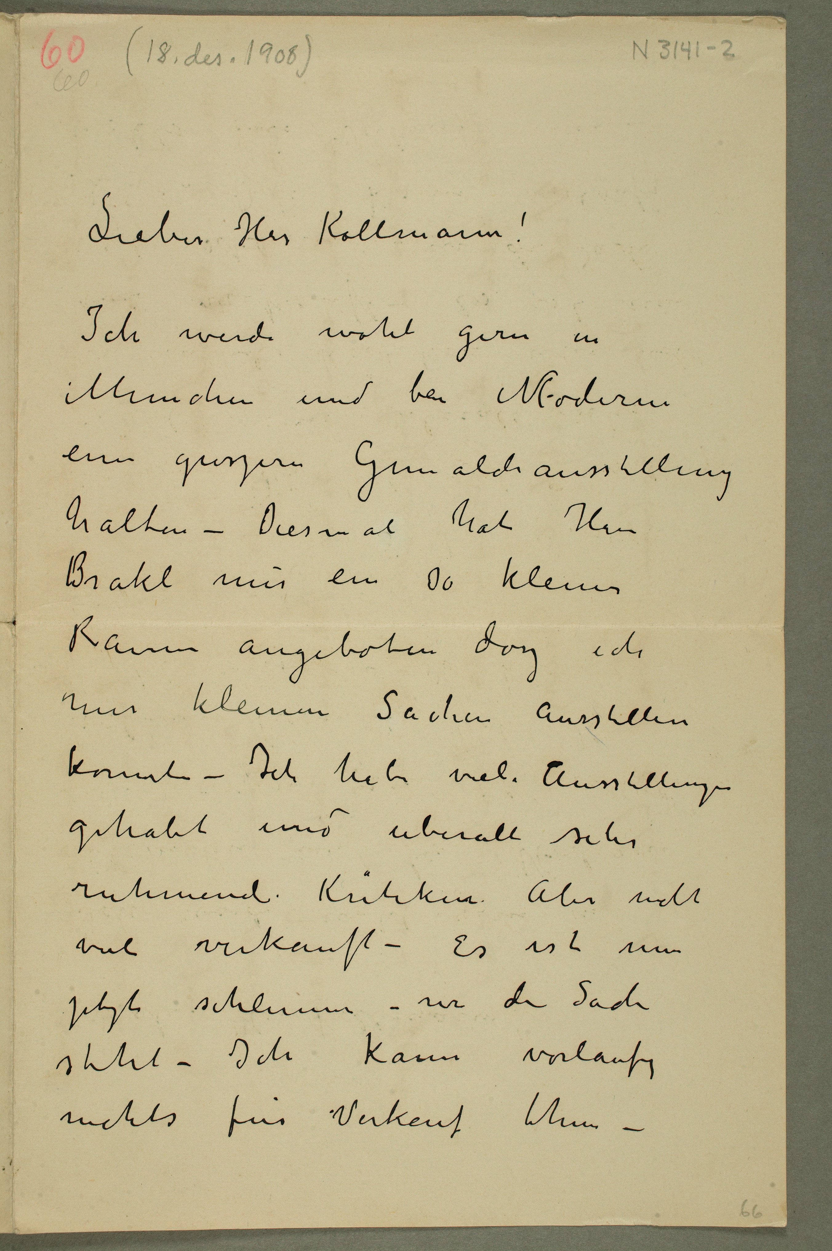 MM N 3141, Munchmuseet. Datert 18.12.1908. Brev til Albert Kollmann