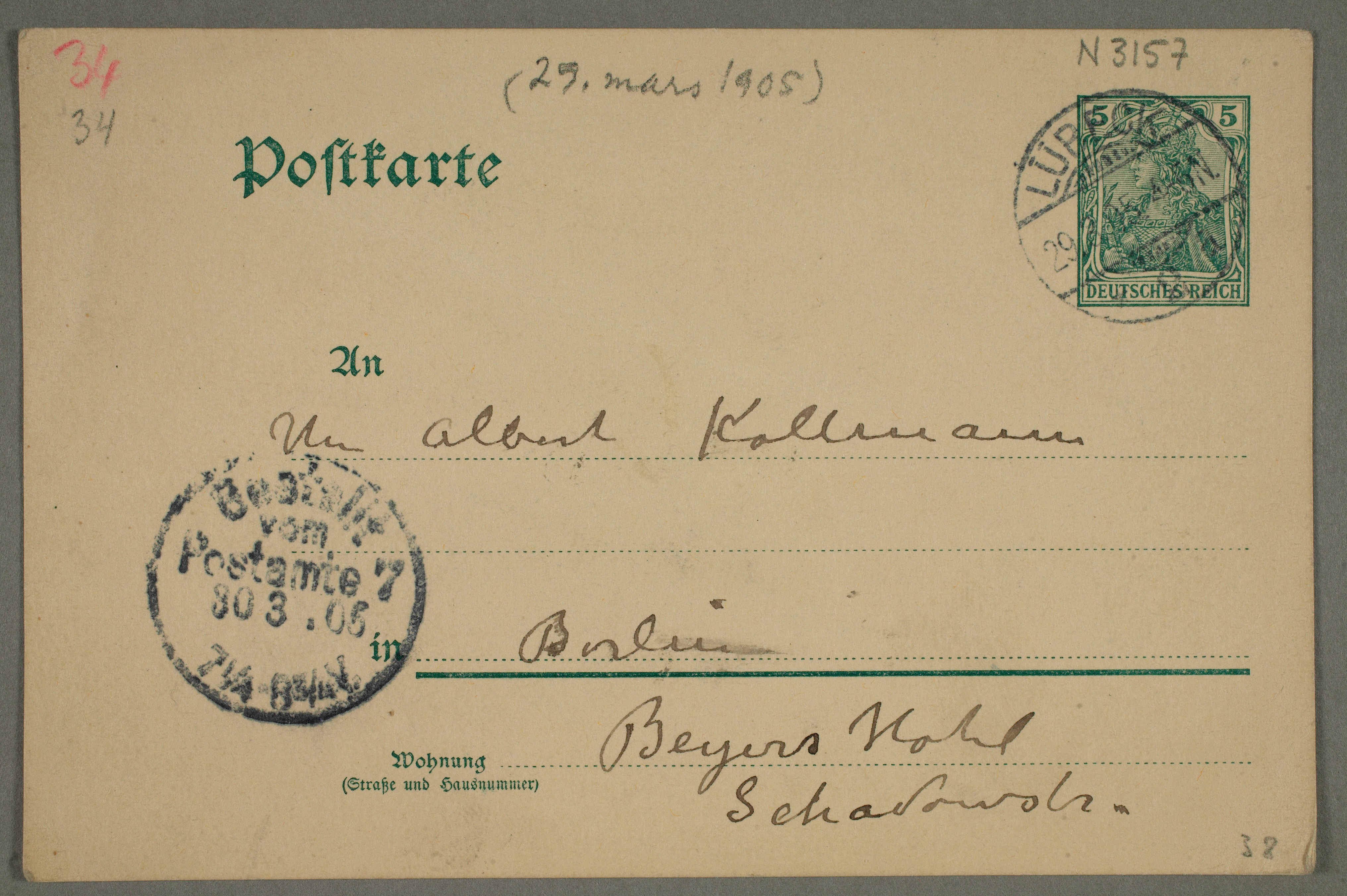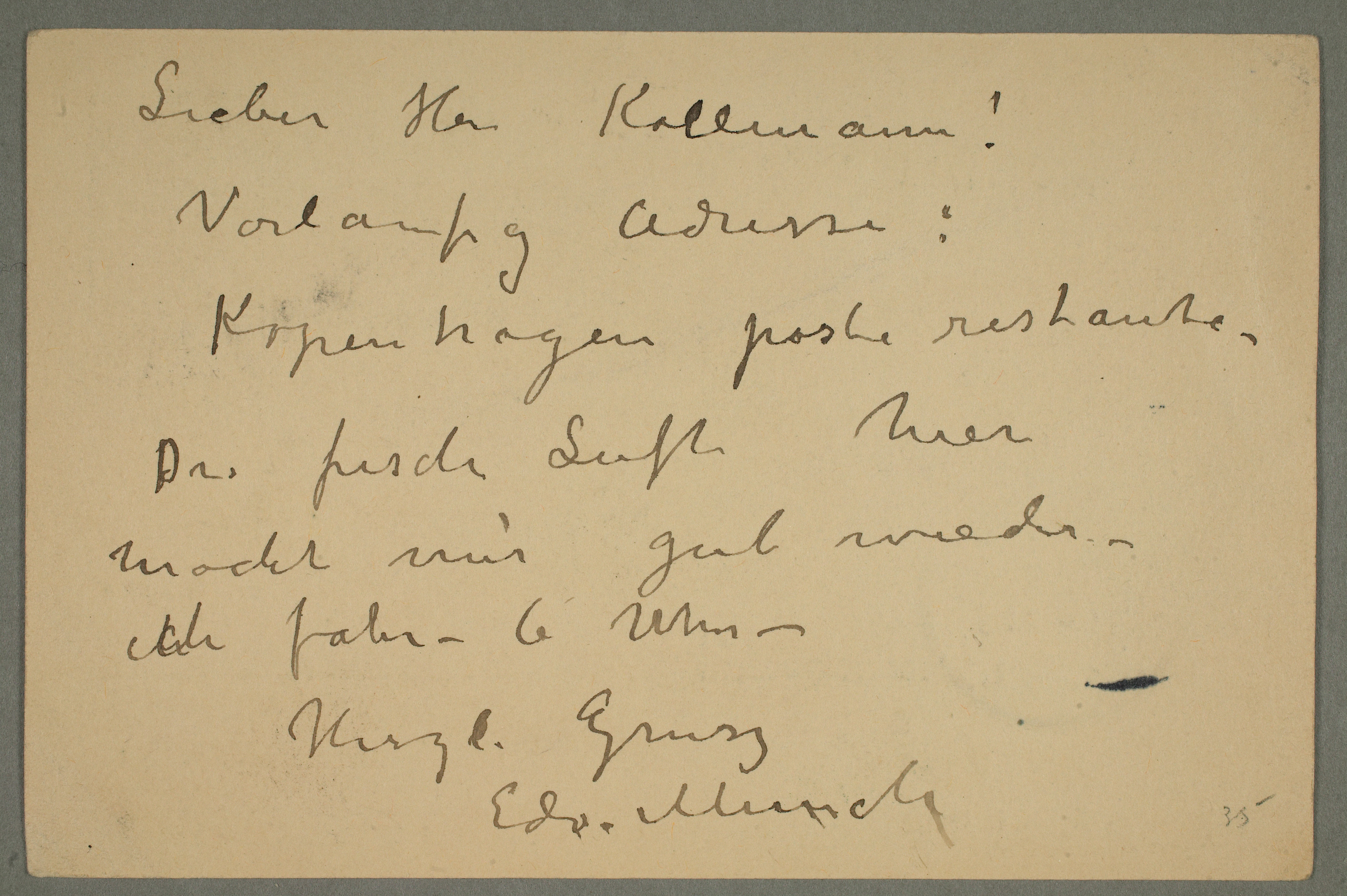 MM N 3157, Munchmuseet. Datert 29.3.1905. Brev til Albert Kollmann