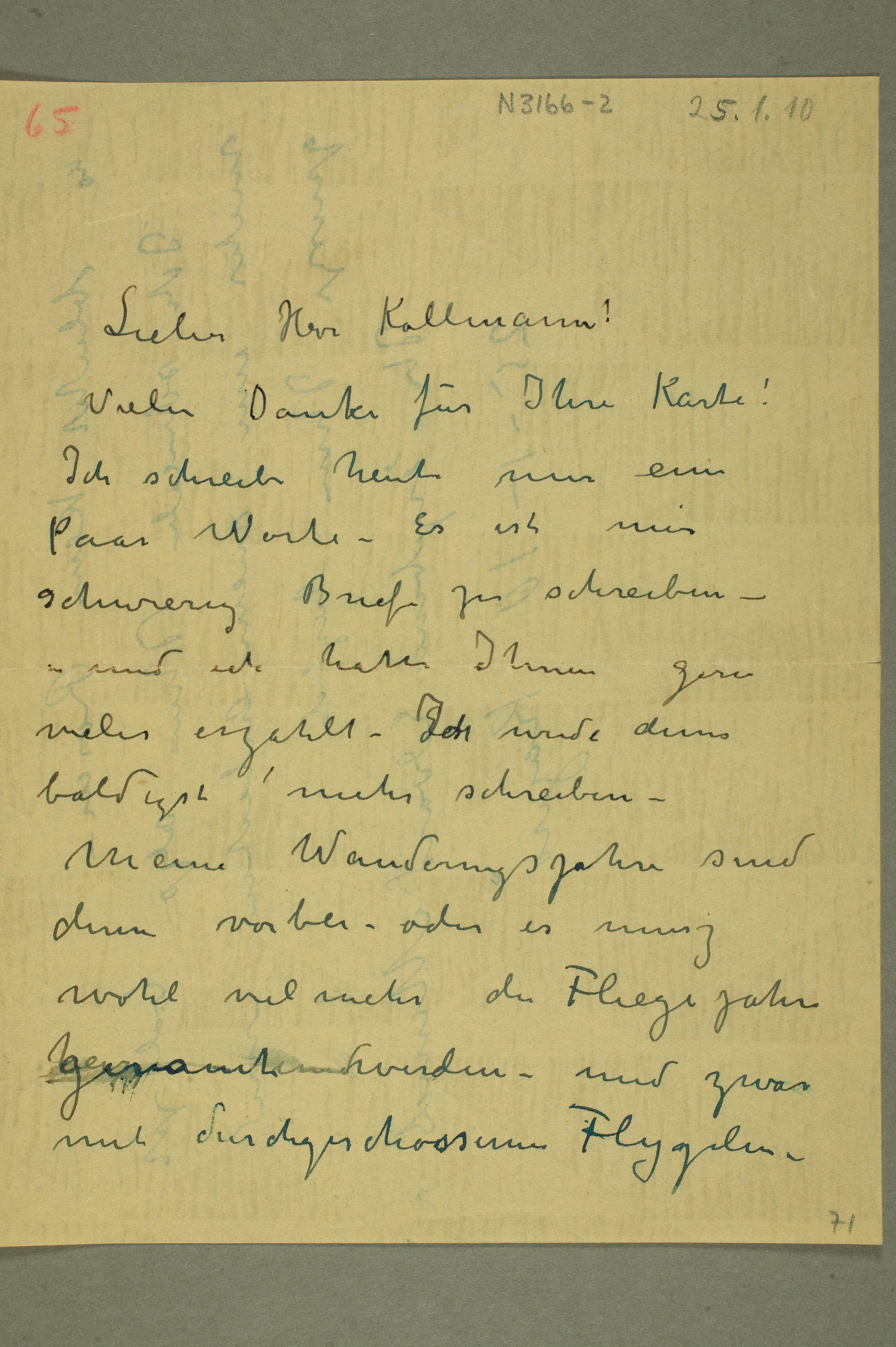 MM N 3166, Munchmuseet. Datert 25.1.1910. Brev til Albert Kollmann