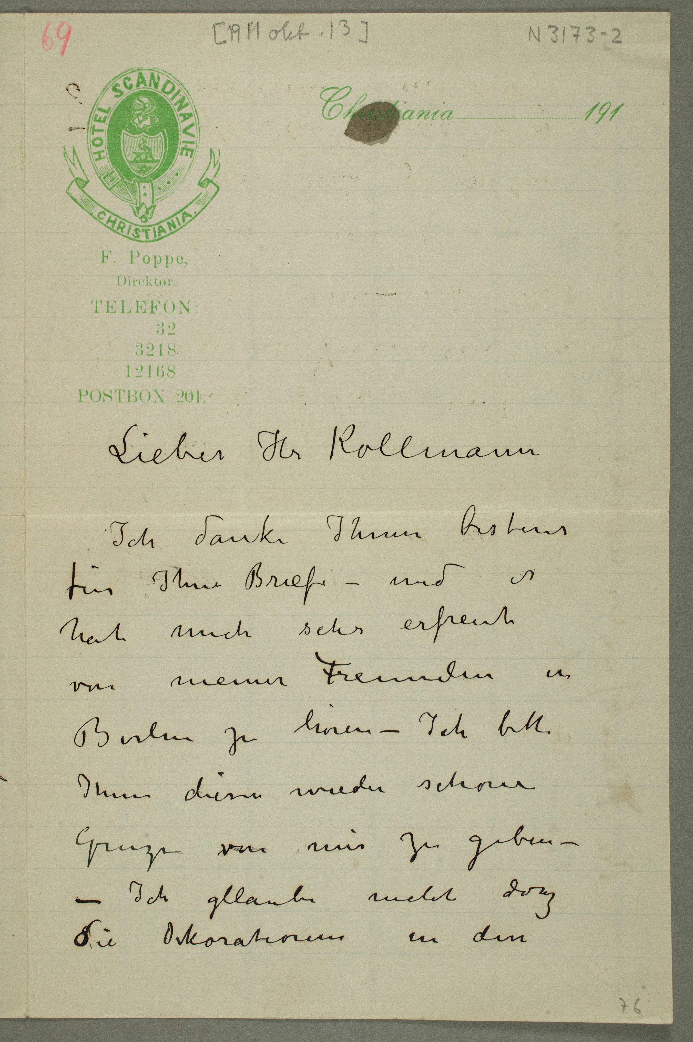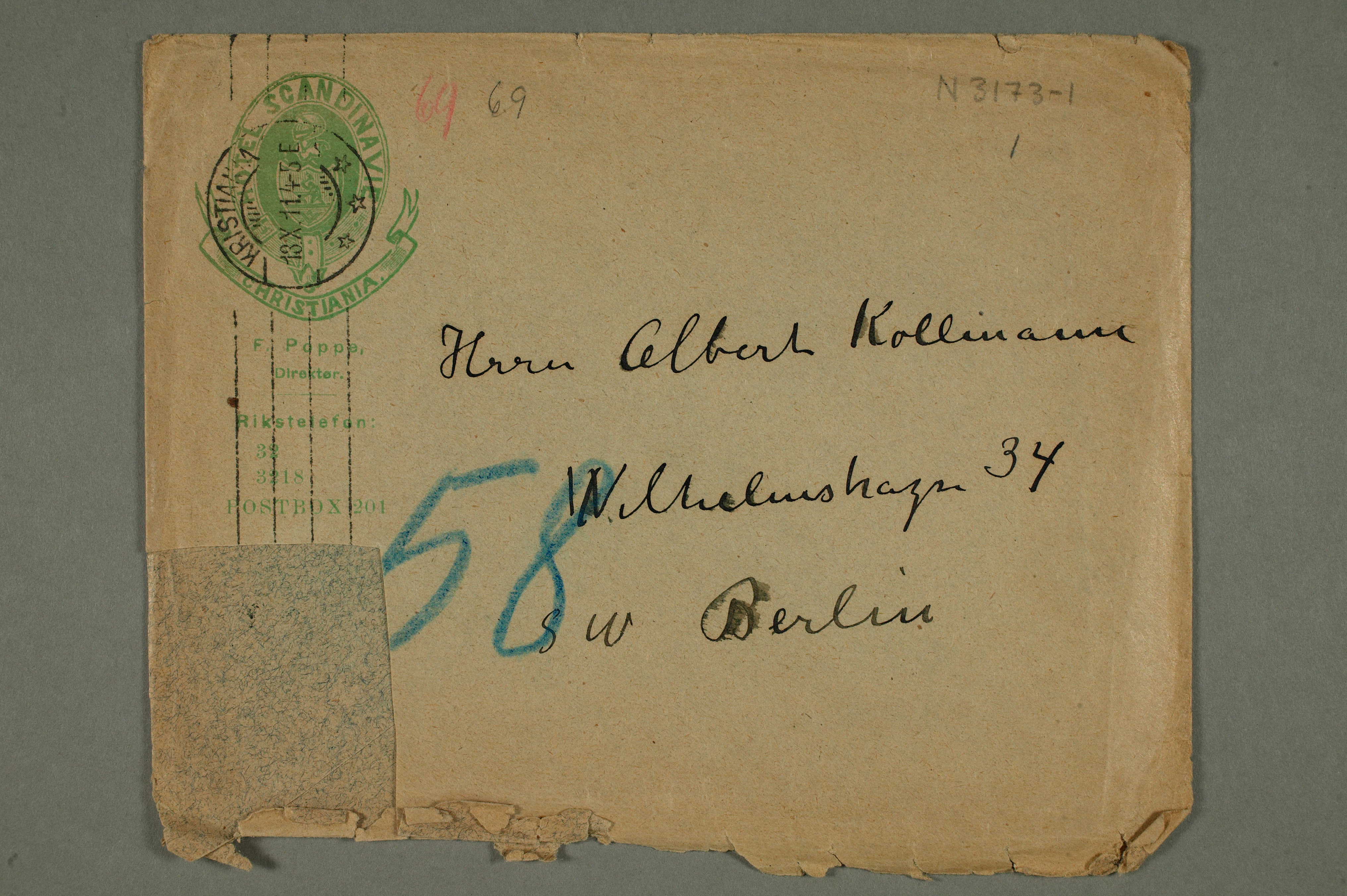 MM N 3173, Munchmuseet. Datert 13.10.1911. Brev til Albert Kollmann