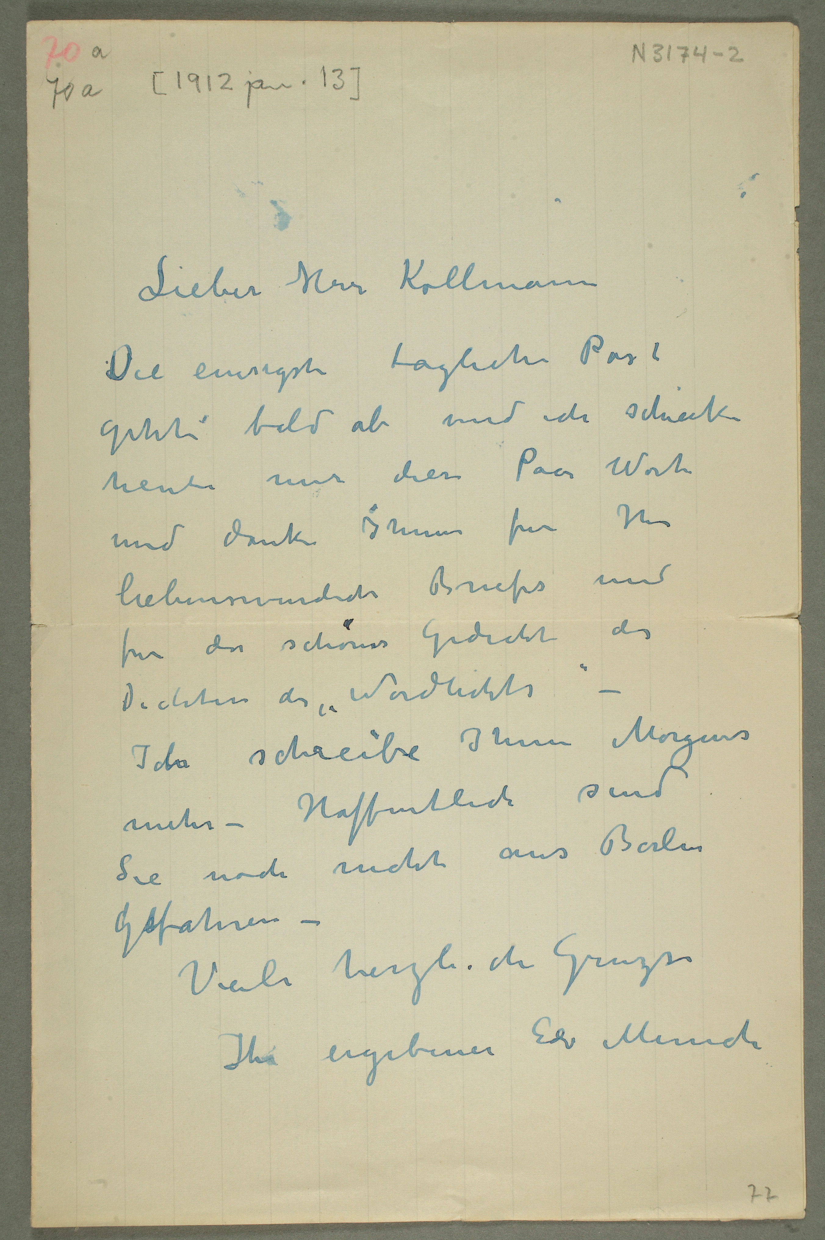 MM N 3174, Munchmuseet. Datert 13.1.1912. Brev til Albert Kollmann