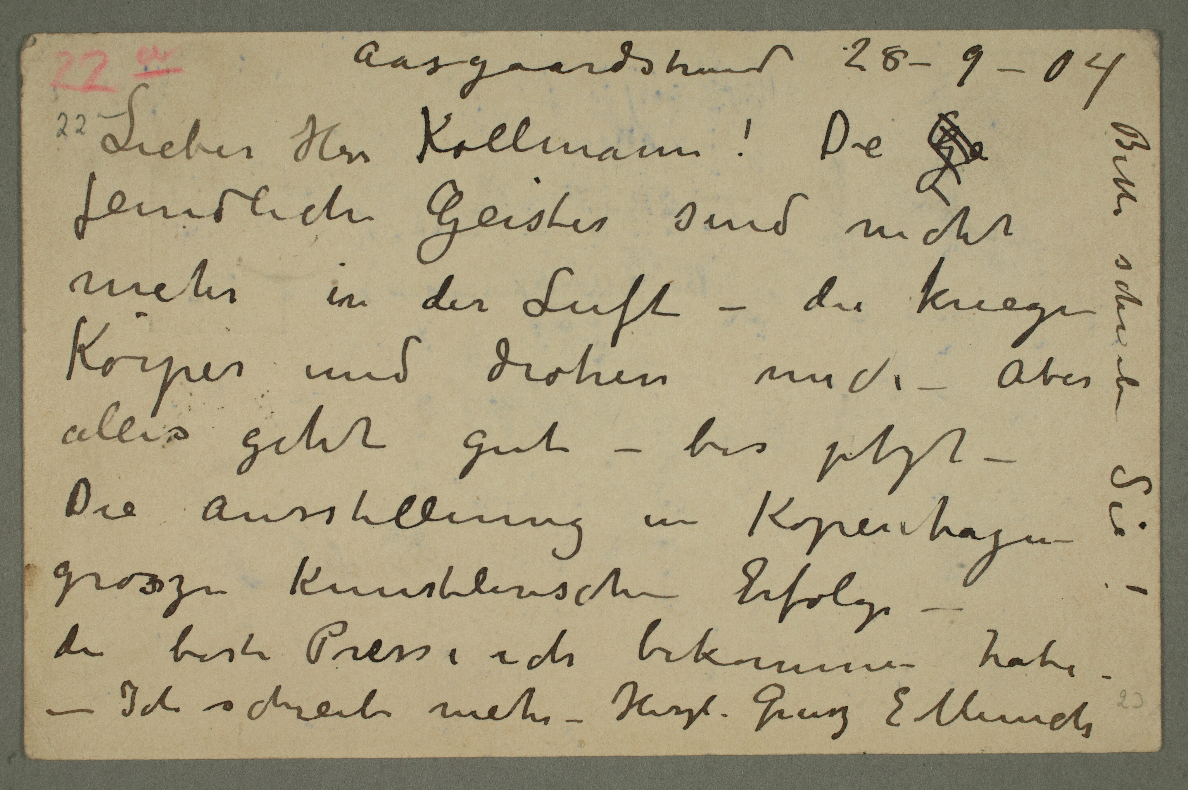 MM N 3176, Munchmuseet. Datert 28.9.1904. Brev til Albert Kollmann