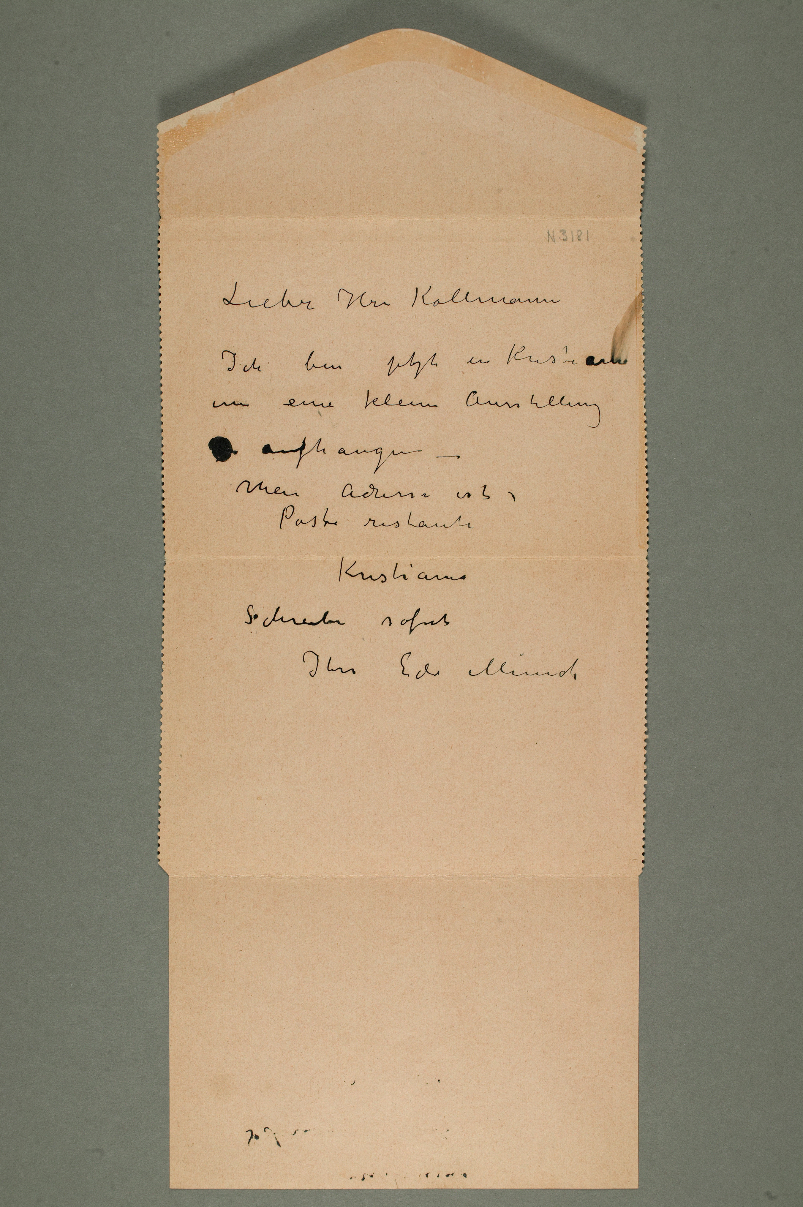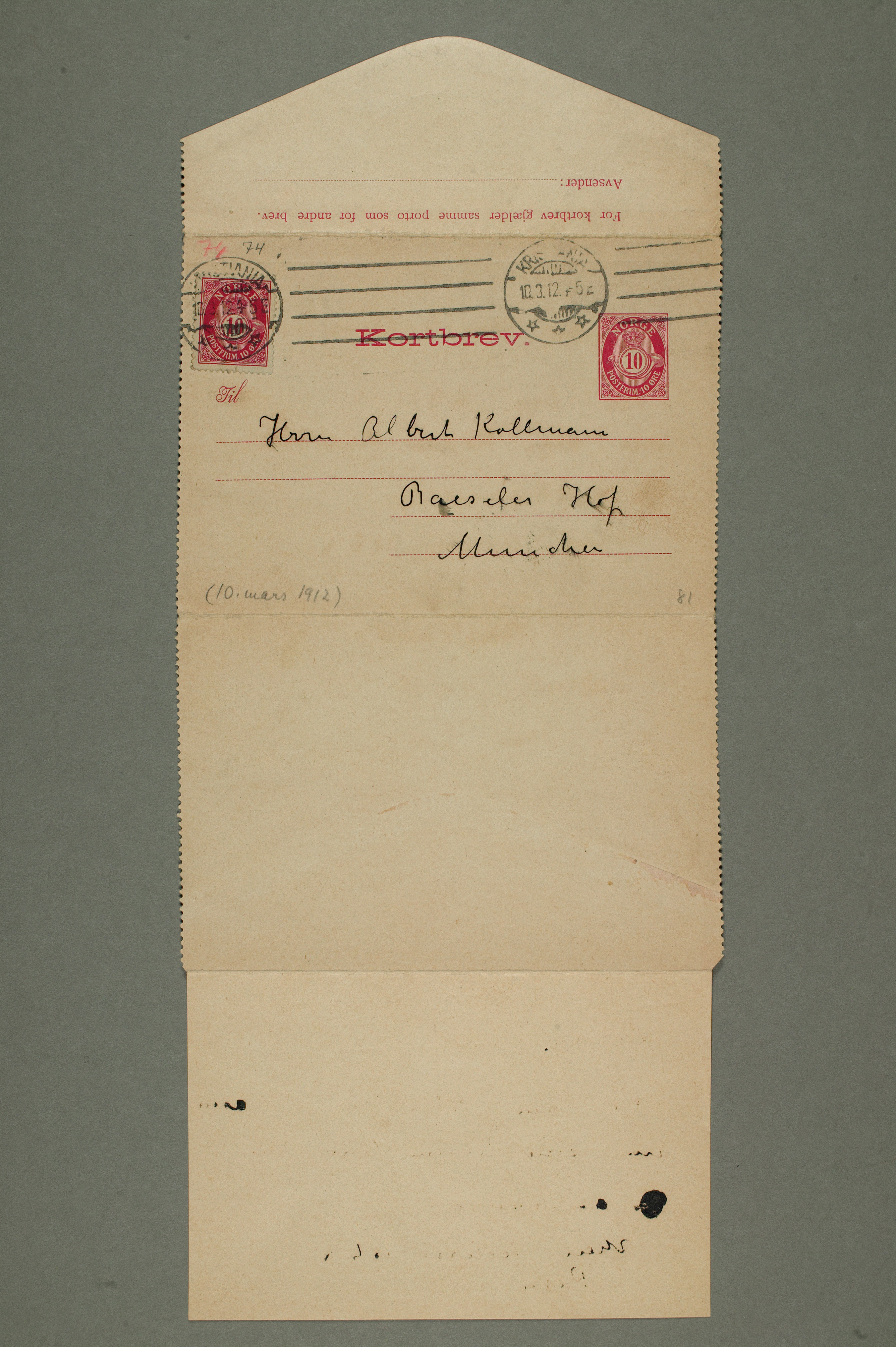 MM N 3181, Munchmuseet. Datert 18.3.1912. Brev til Albert Kollmann