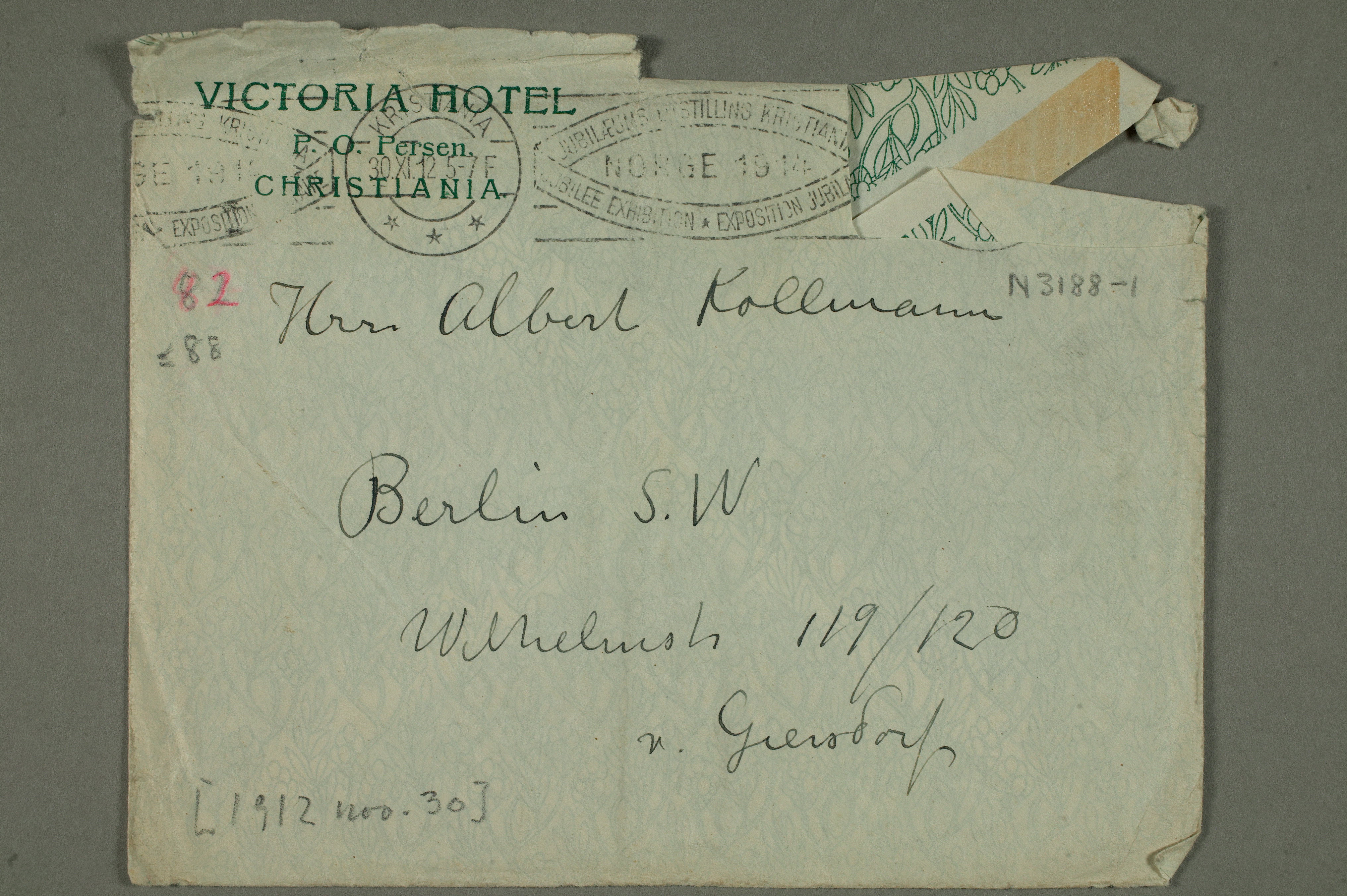 MM N 3188, Munchmuseet. Datert 30.11.1912. Brev til Albert Kollmann