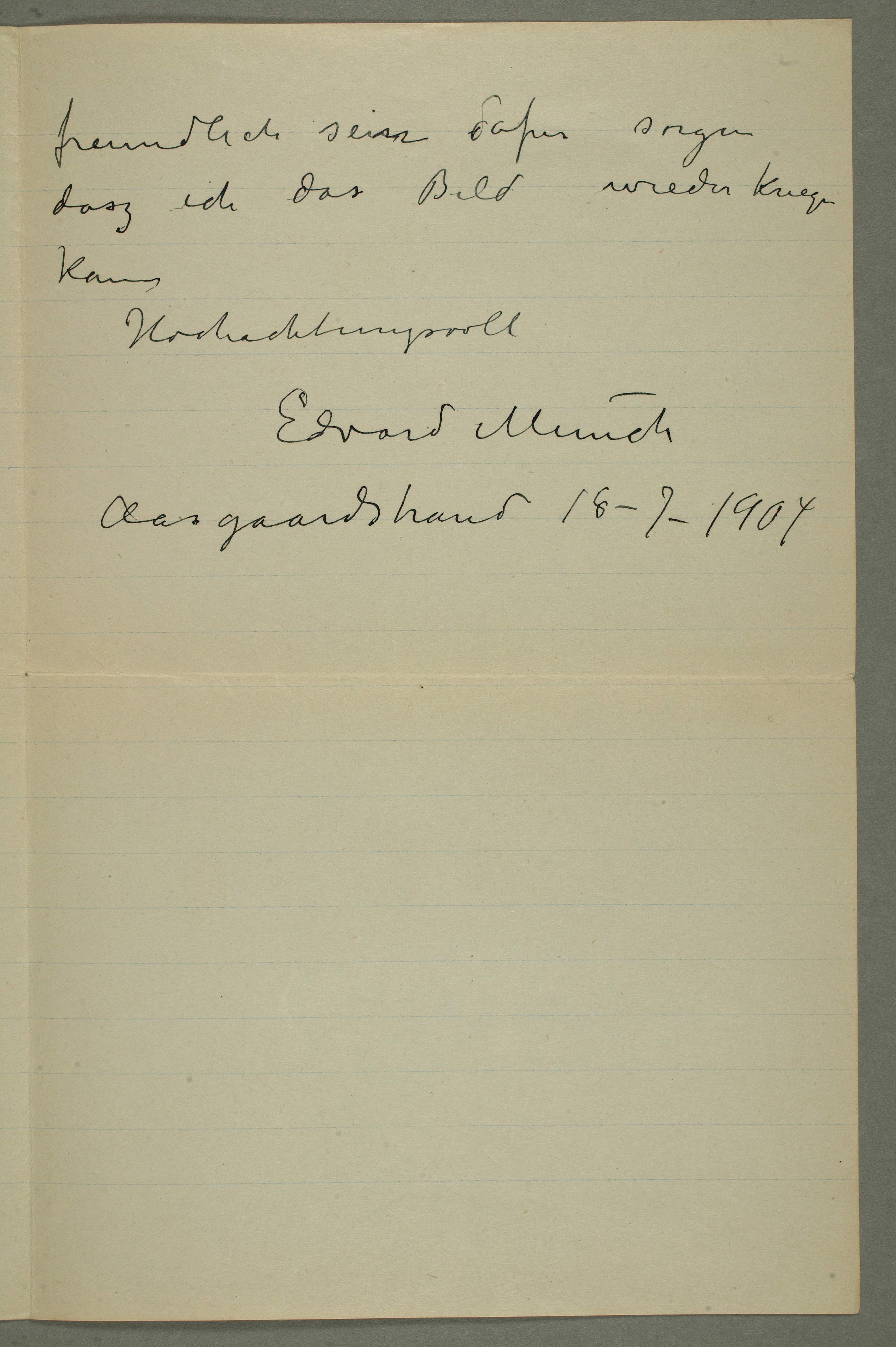MM N 3192, Munchmuseet. Datert 21.7.1904. Brev til Albert Kollmann