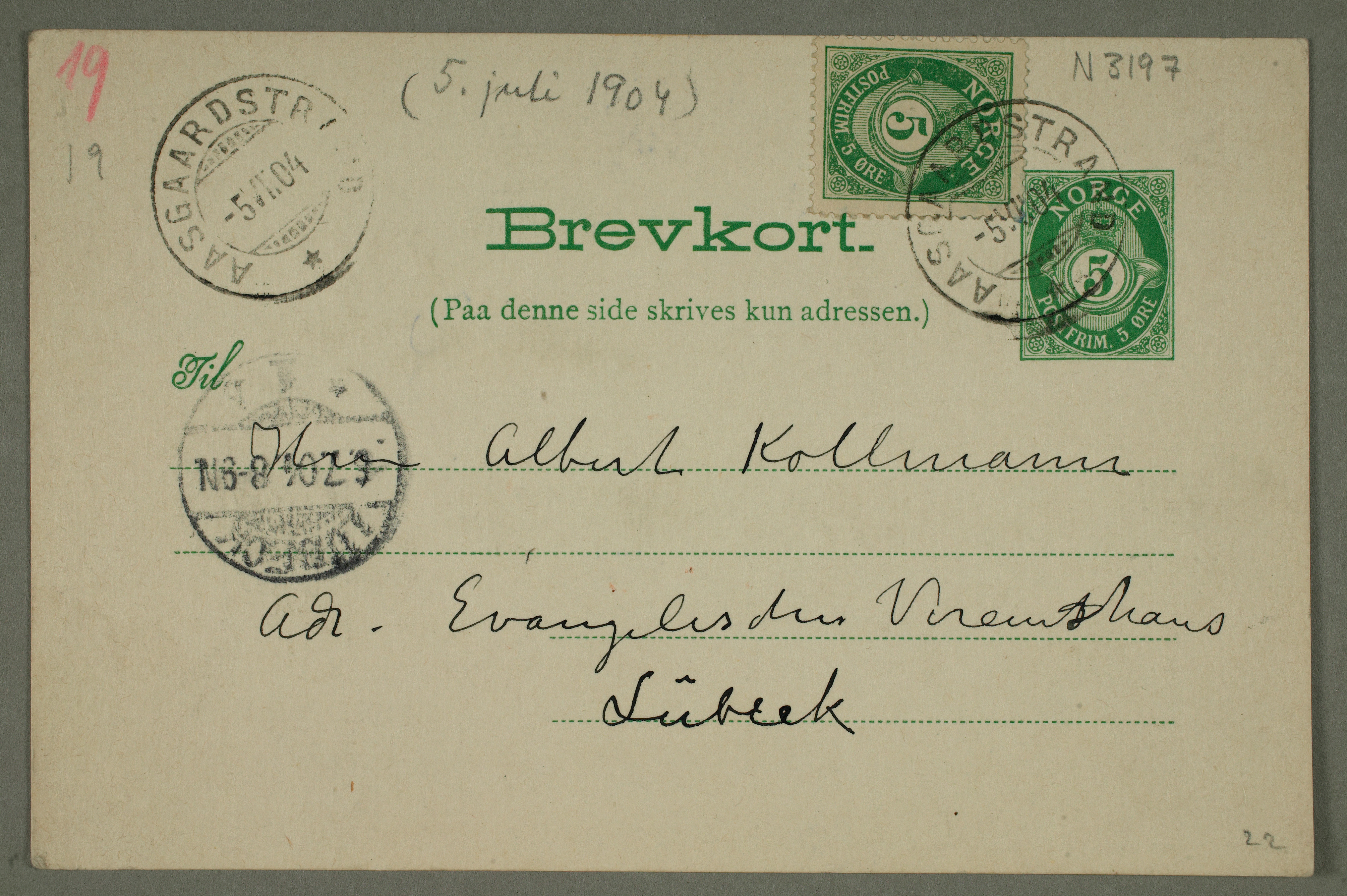 MM N 3197, Munchmuseet. Datert 5.7.1904. Brev til Albert Kollmann