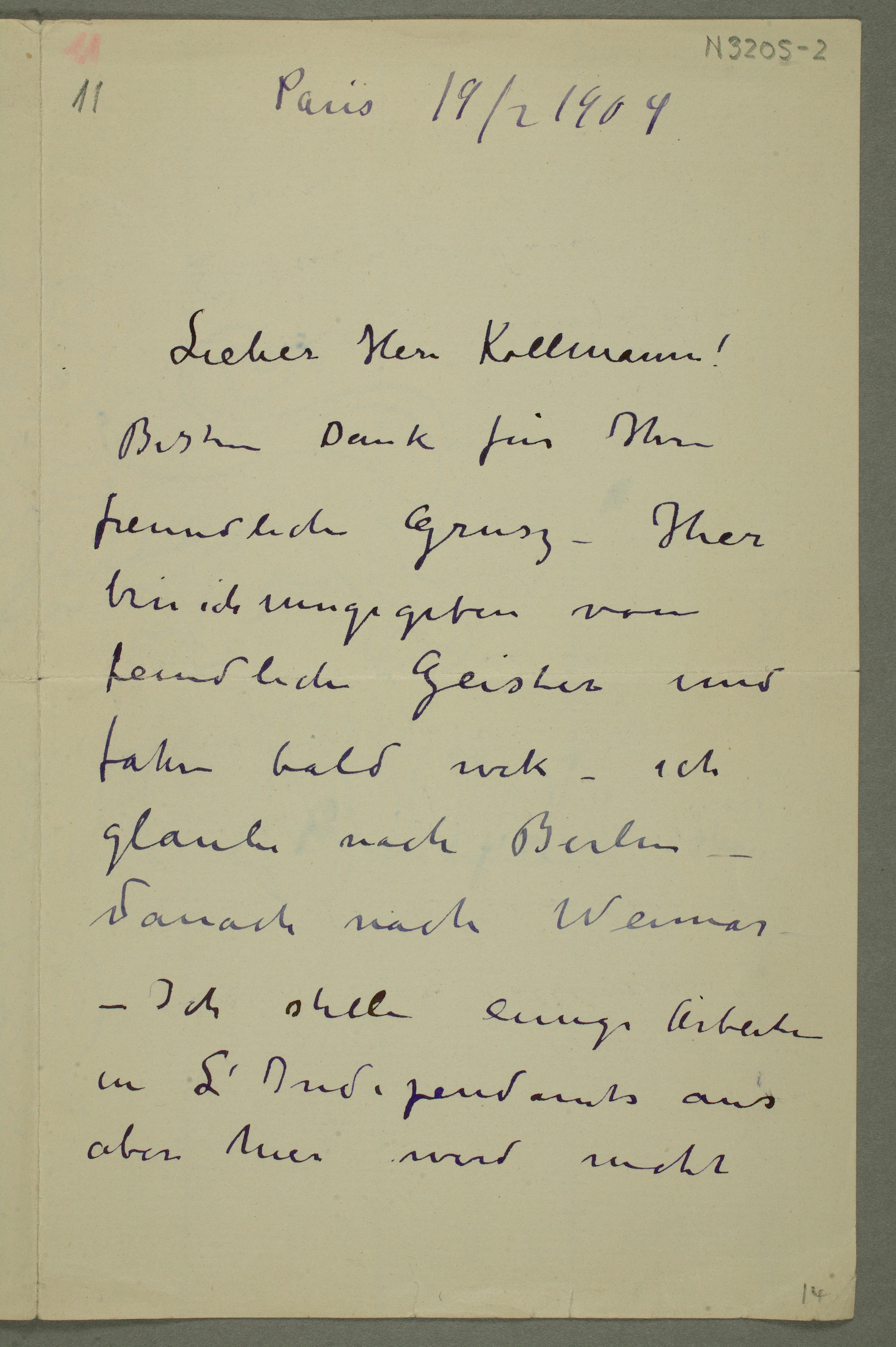 MM N 3205, Munchmuseet. Datert 19.2.1904. Brev til Albert Kollmann