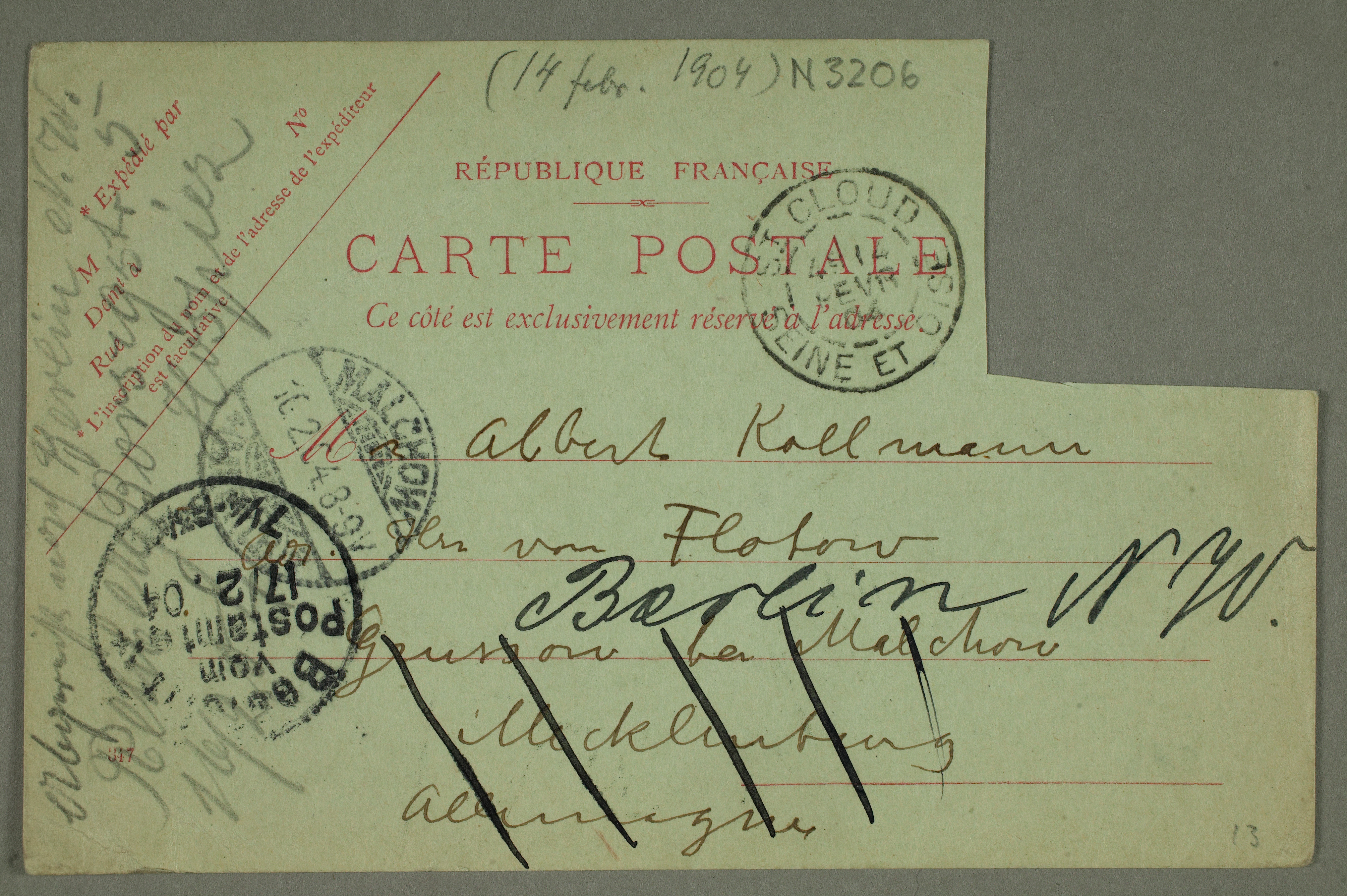MM N 3206, Munchmuseet. Datert 14.2.1904. Brev til Albert Kollmann