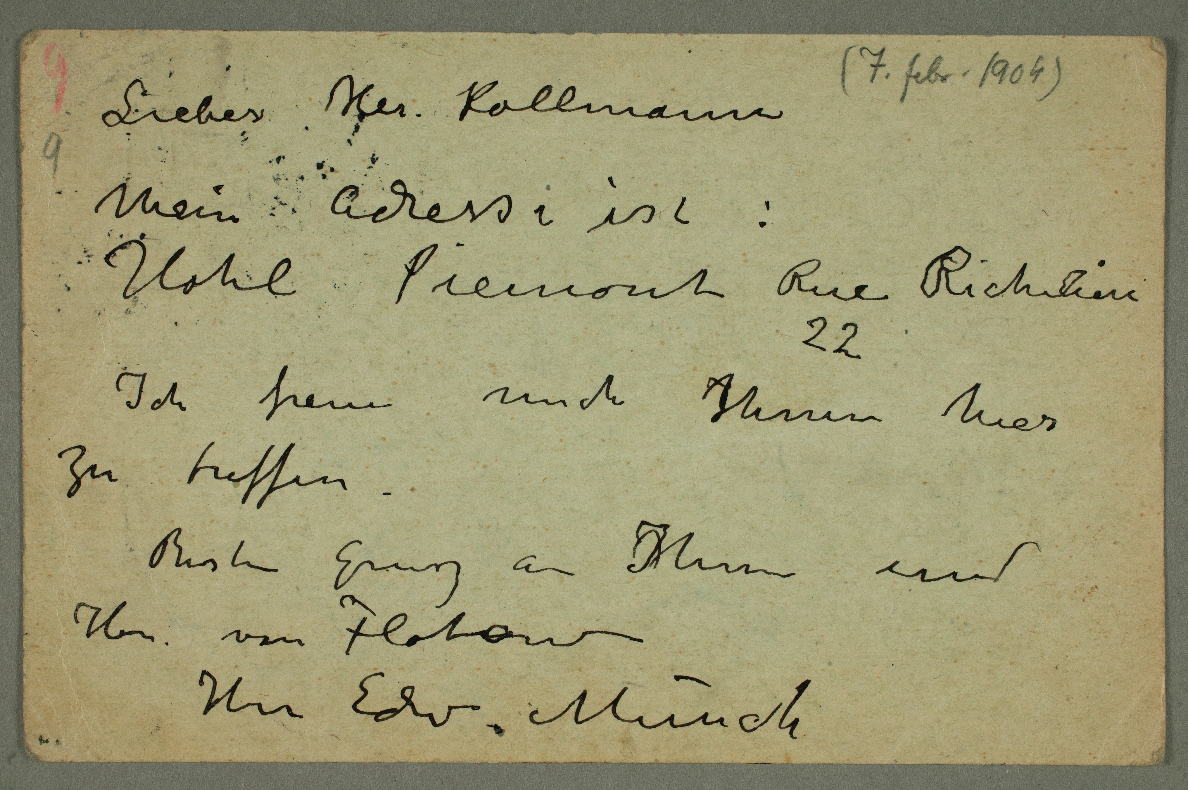 MM N 3207, Munchmuseet. Datert 7.2.1904. Brev til Albert Kollmann