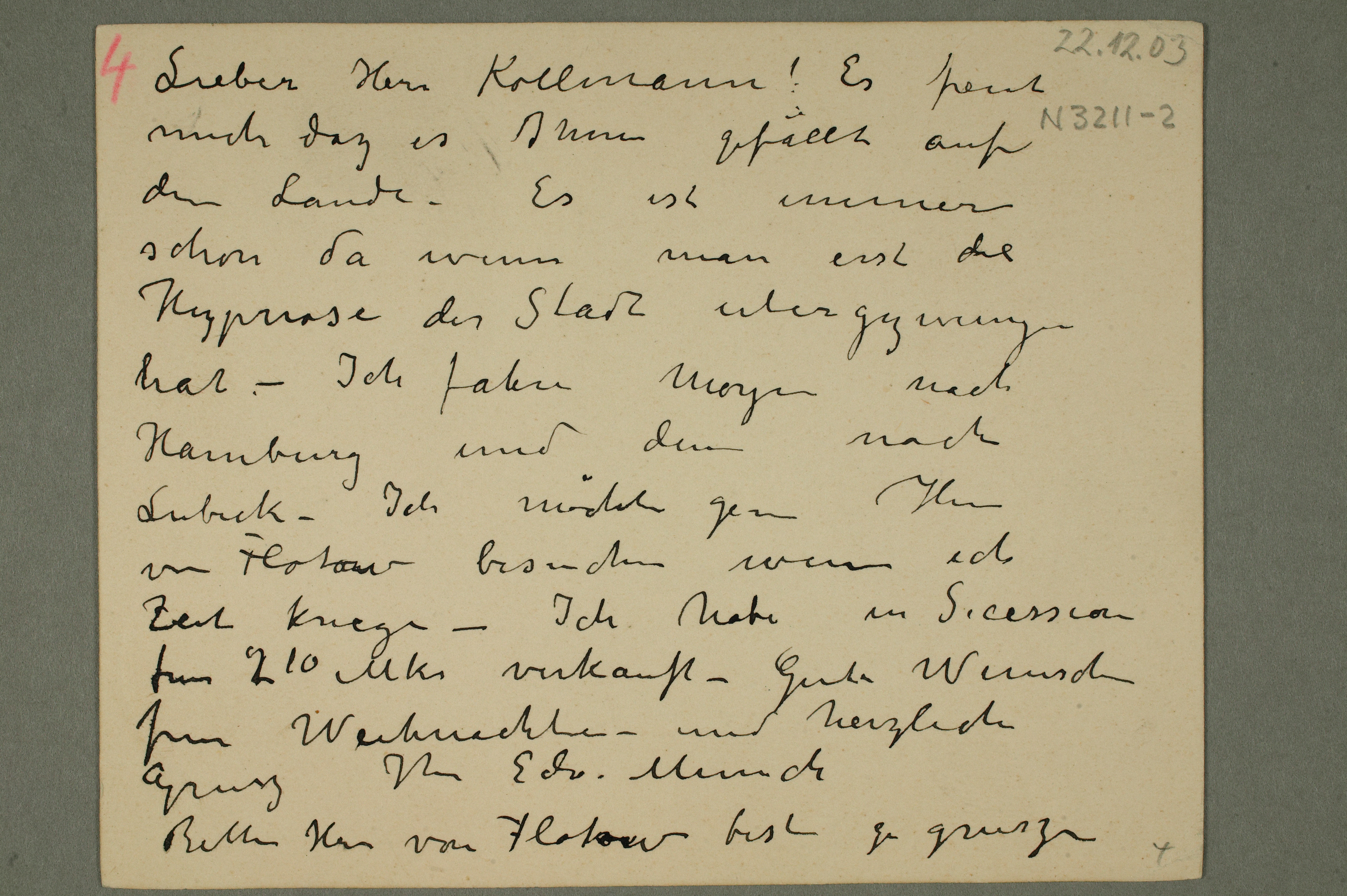 MM N 3211, Munchmuseet. Datert 22.12.1903. Brev til Albert Kollmann