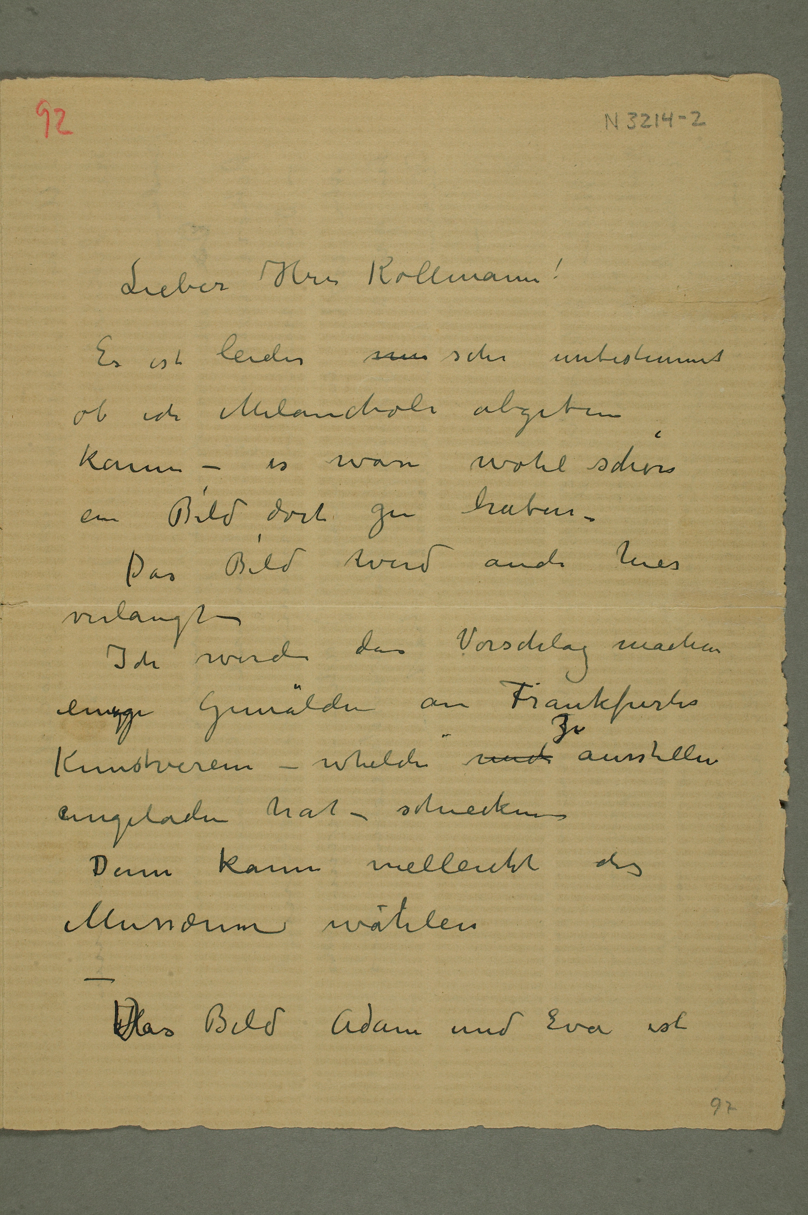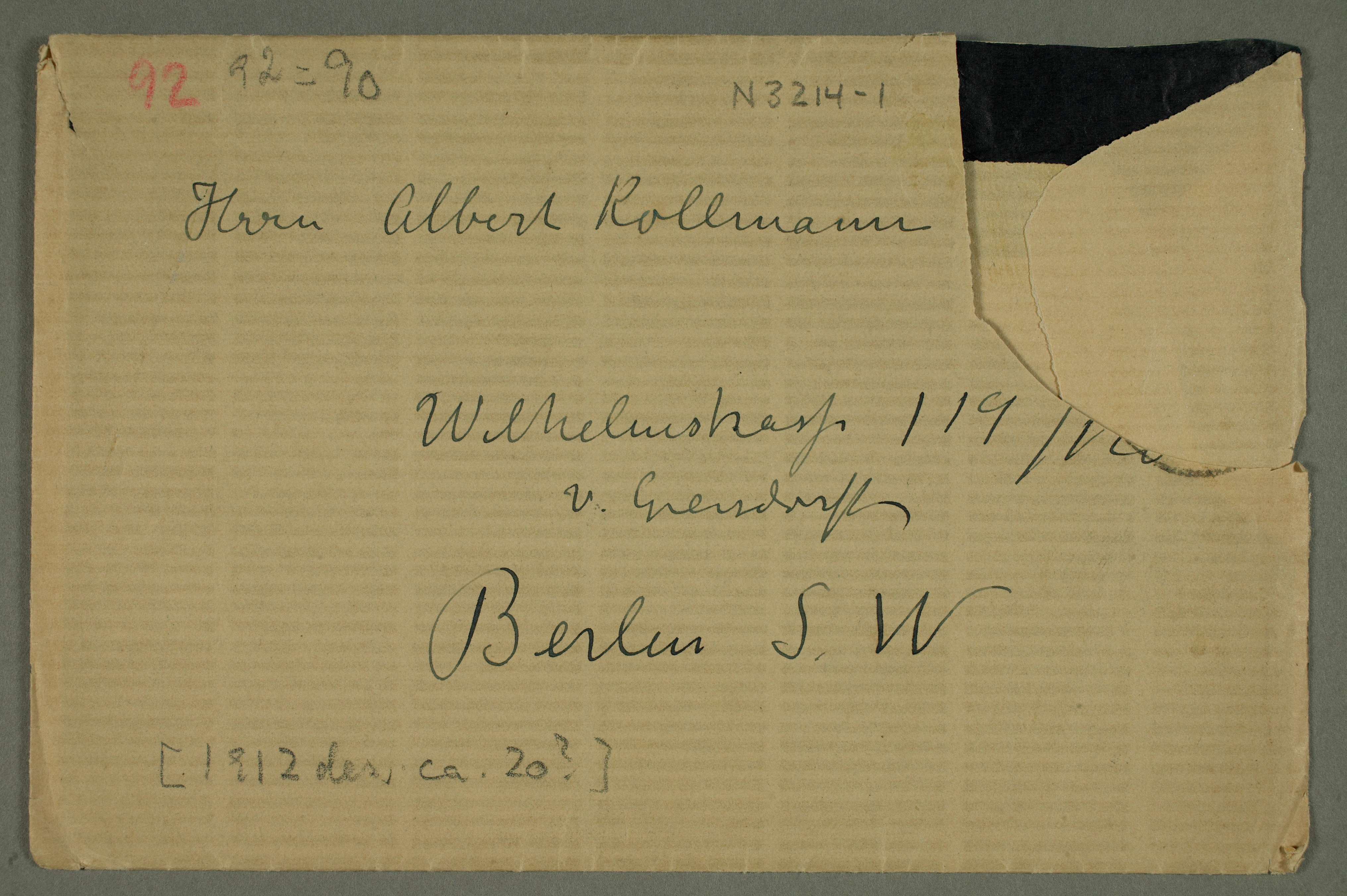 MM N 3214, Munchmuseet. Datert 1912. Brev til Albert Kollmann