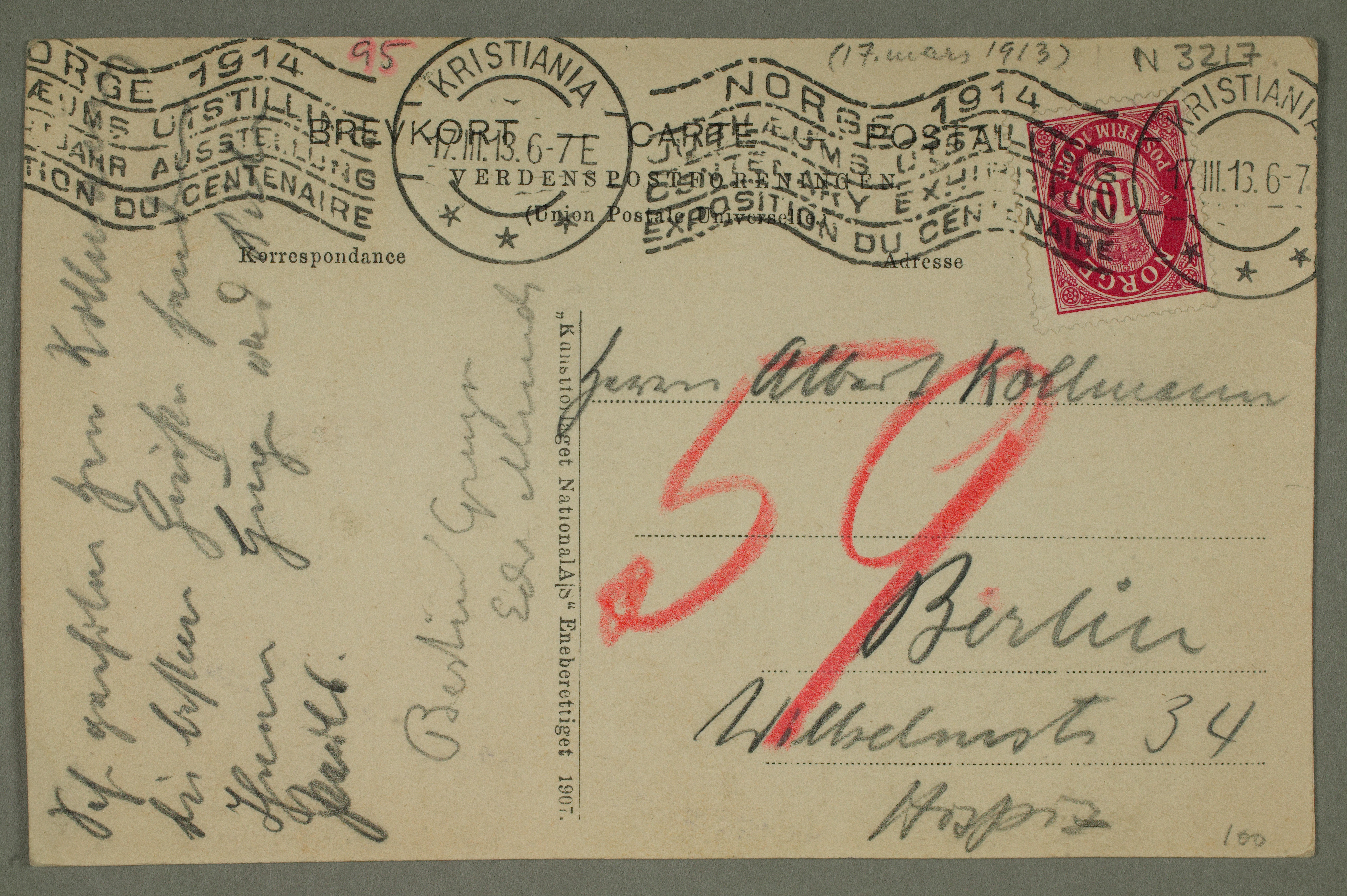MM N 3217, Munchmuseet. Datert 17.3.1913. Brev til Albert Kollmann