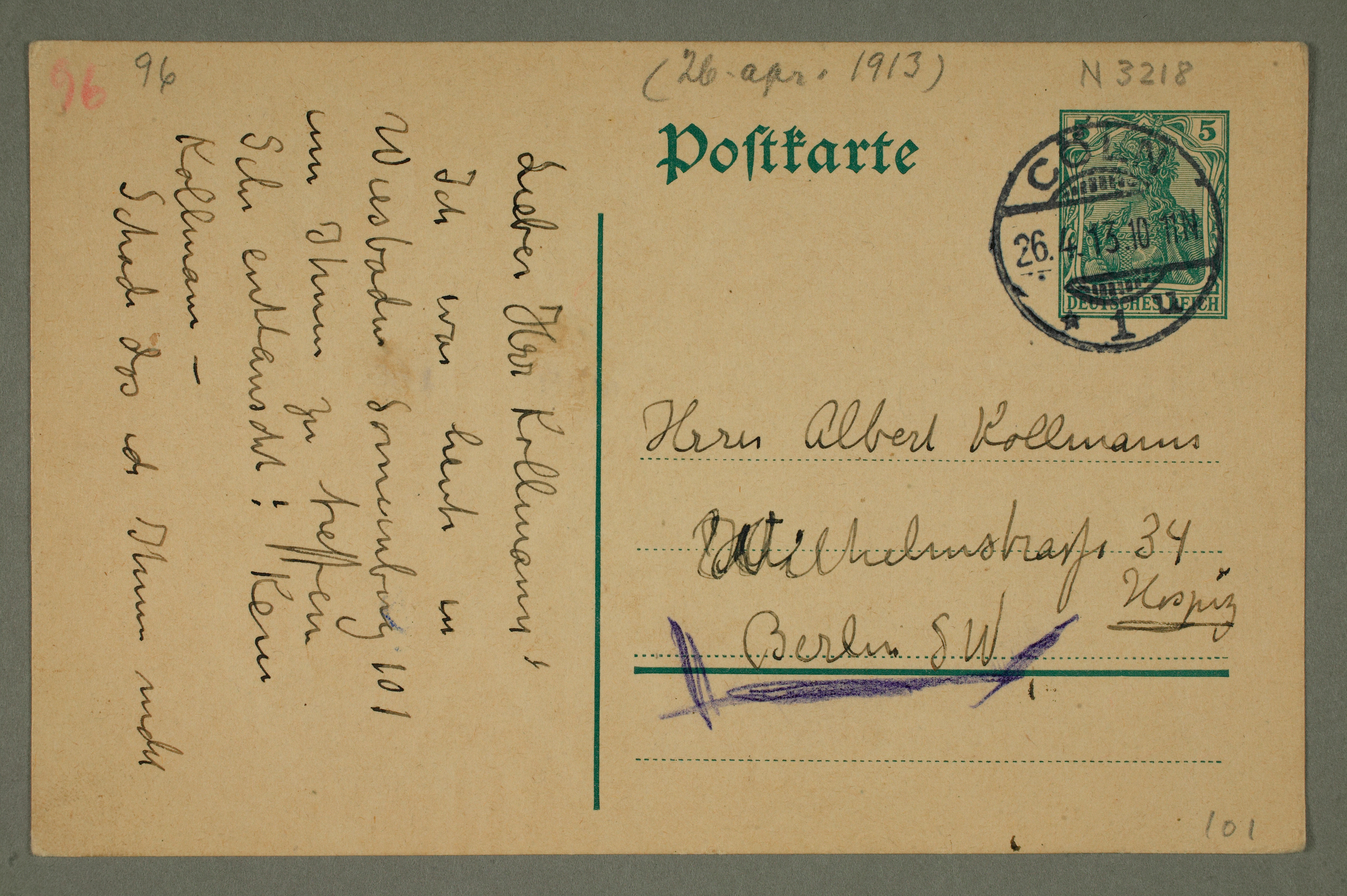 MM N 3218, Munchmuseet. Datert 26.4.1913. Brev til Albert Kollmann