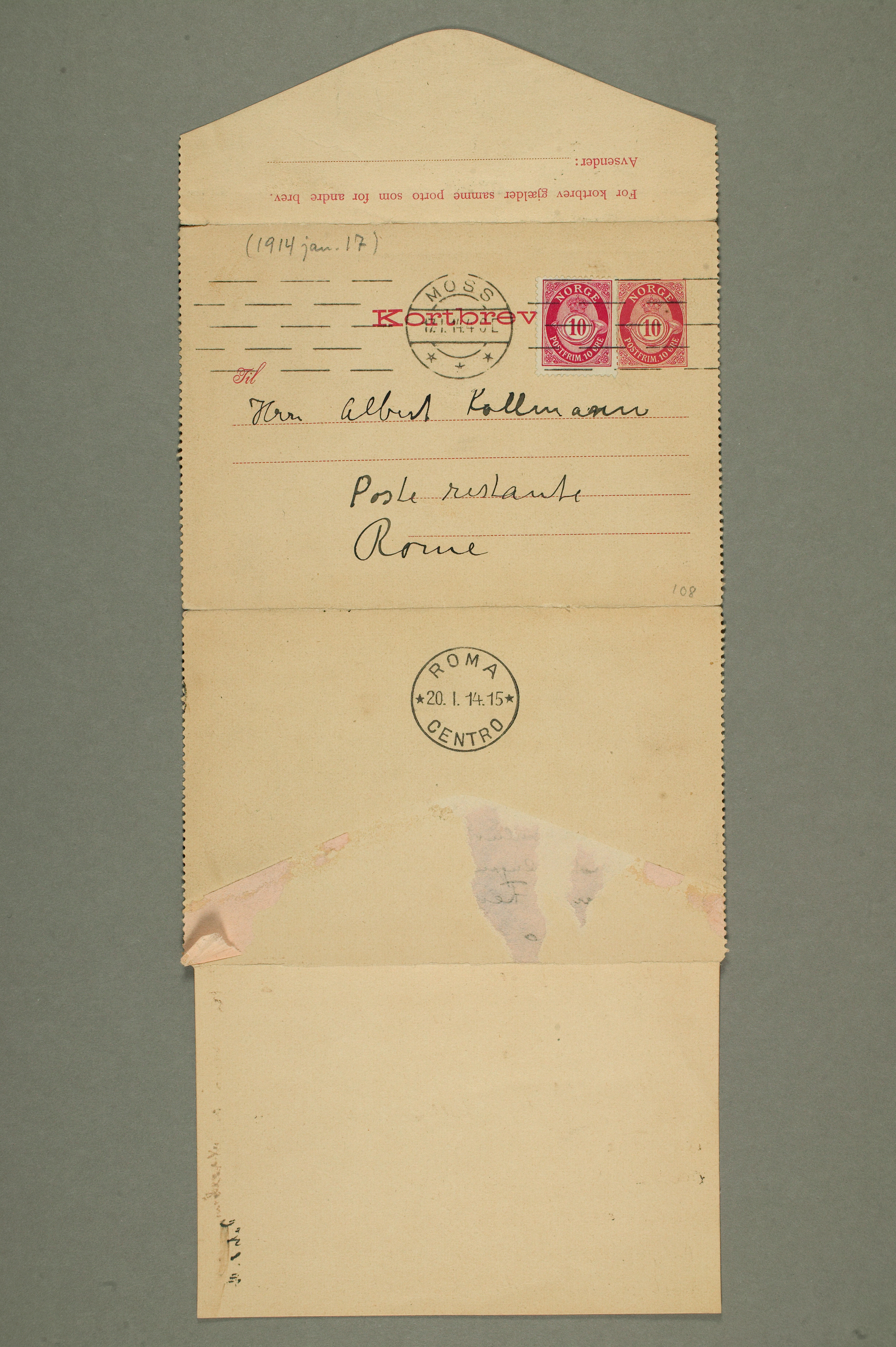 MM N 3225, Munchmuseet. Datert 17.1.1914. Brev til Albert Kollmann