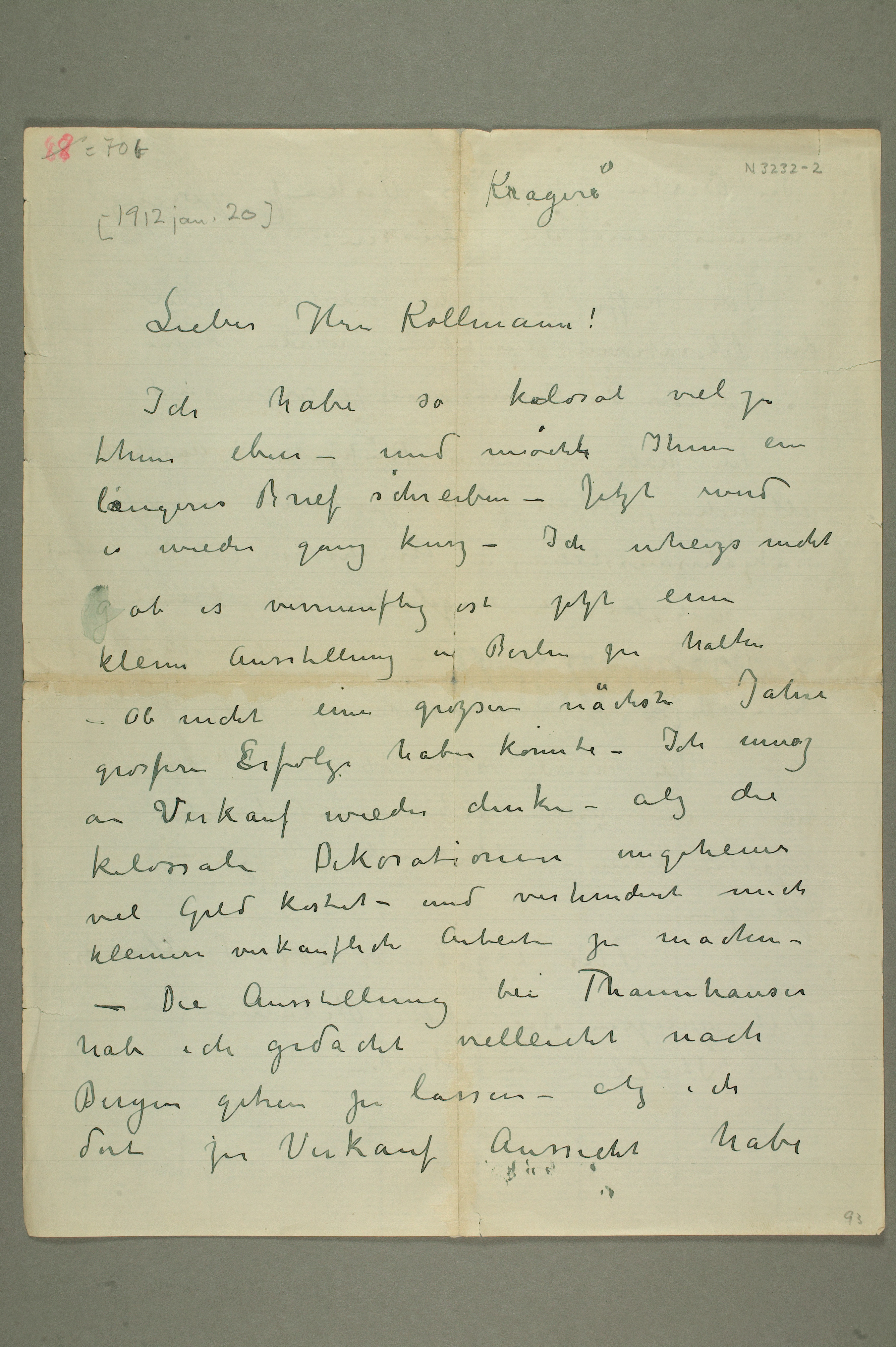 MM N 3232, Munchmuseet. Datert 20.1.1912. Brev til Albert Kollmann