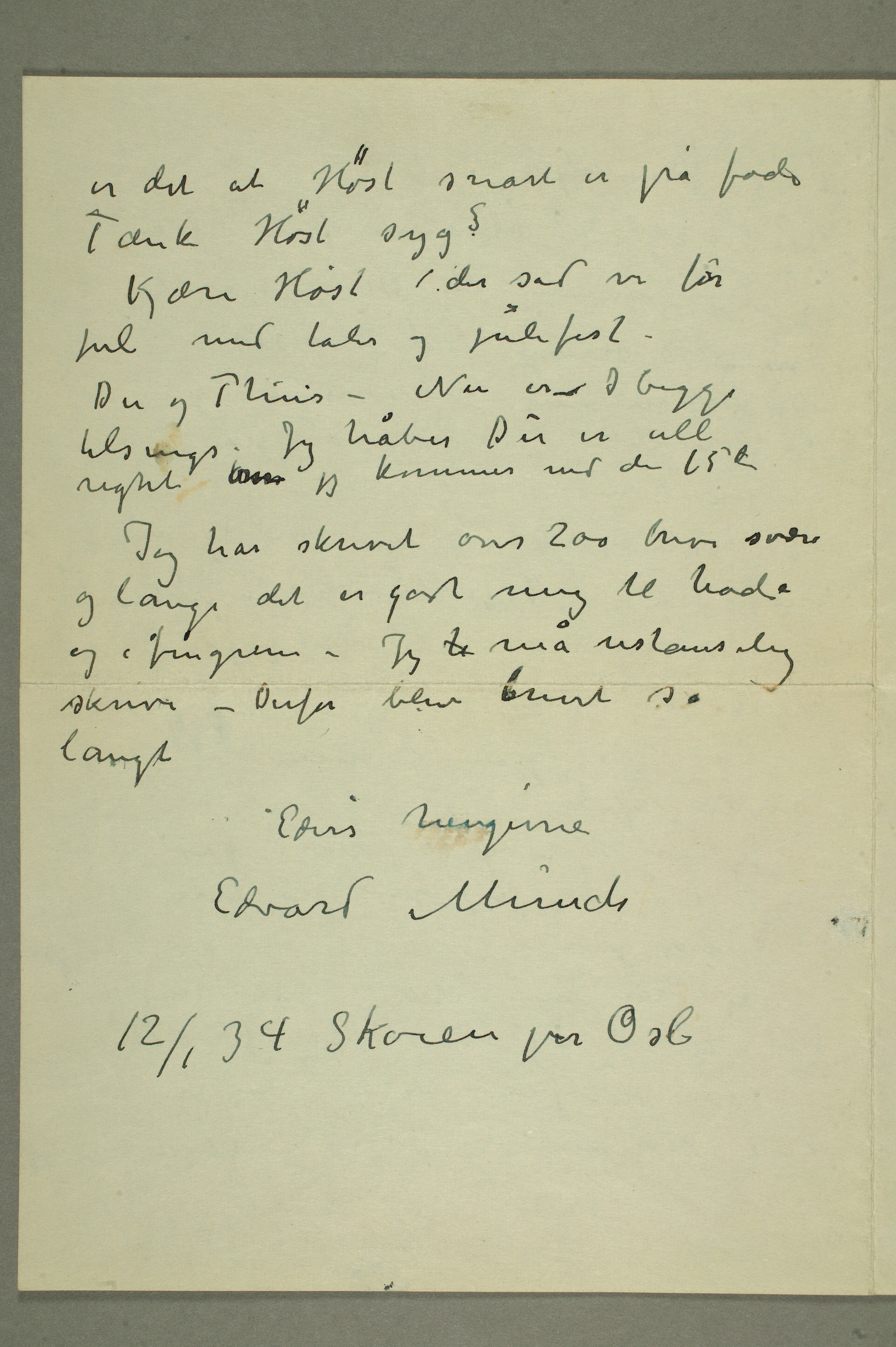 MM N 3251, Munchmuseet. Datert 12.1.1934. Brev til Sigurd Høst