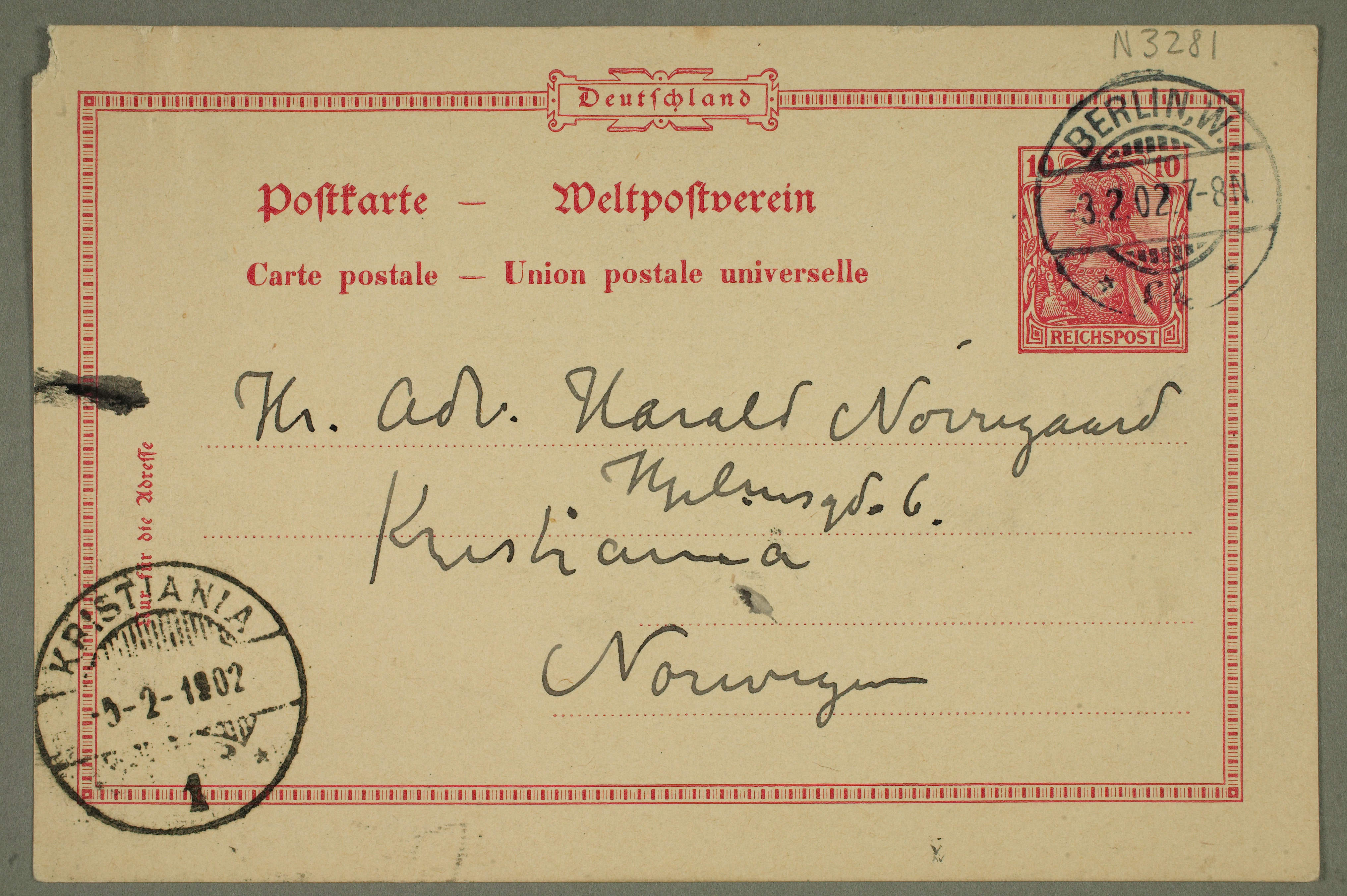 MM N 3281, Munchmuseet. Datert 3.2.1902. Brev til Harald Nørregaard