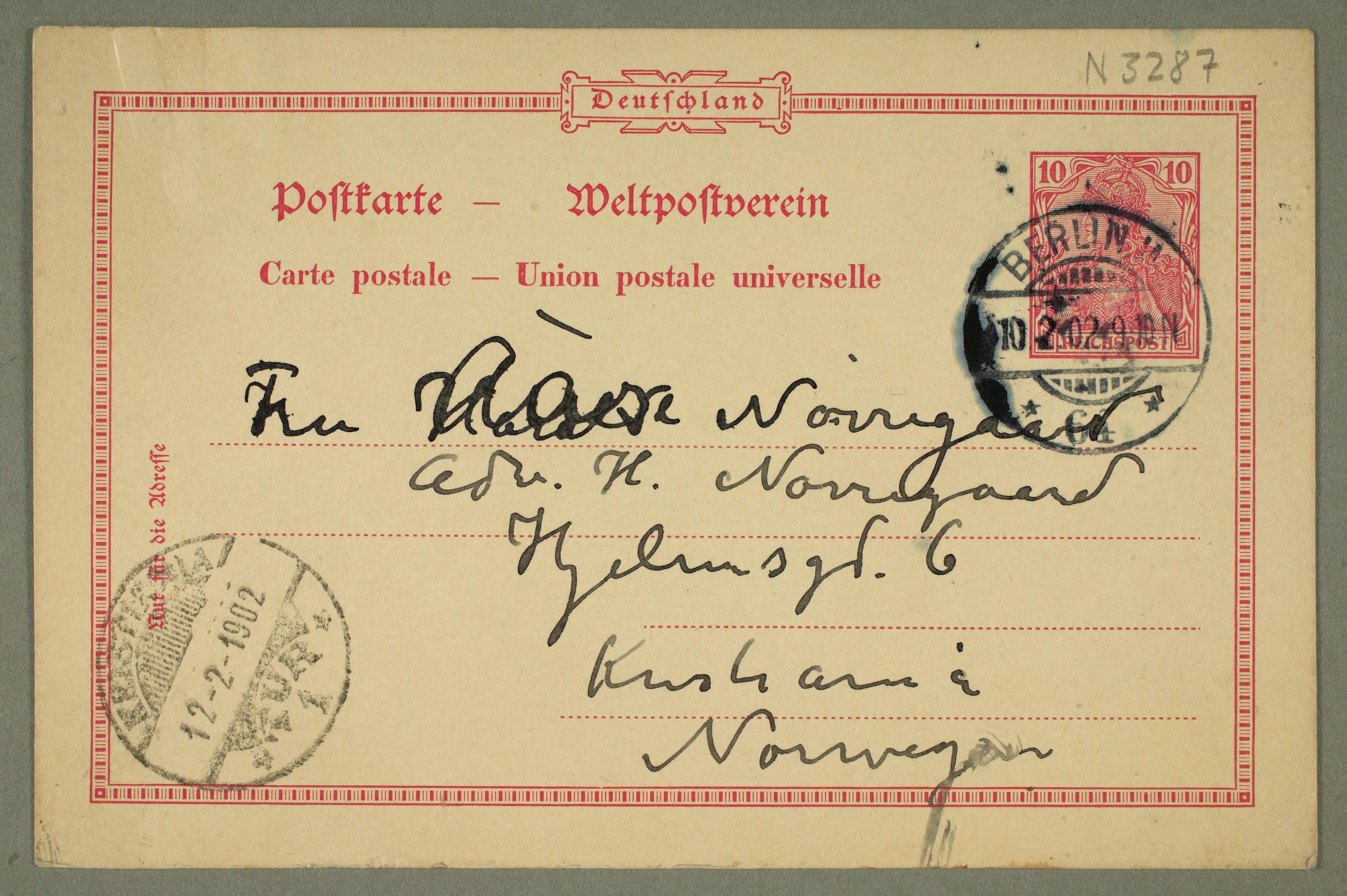 MM N 3287, Munchmuseet. Datert 10.2.1902. Brev til Aase Nørregaard