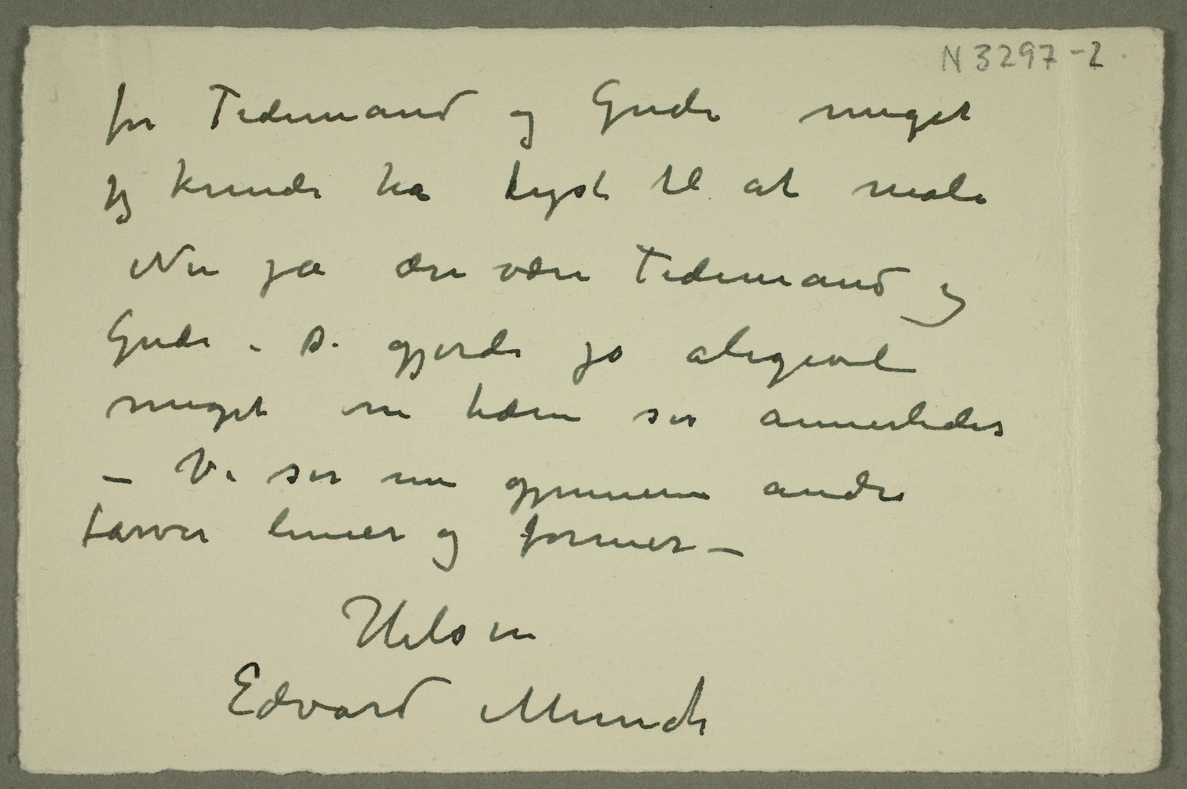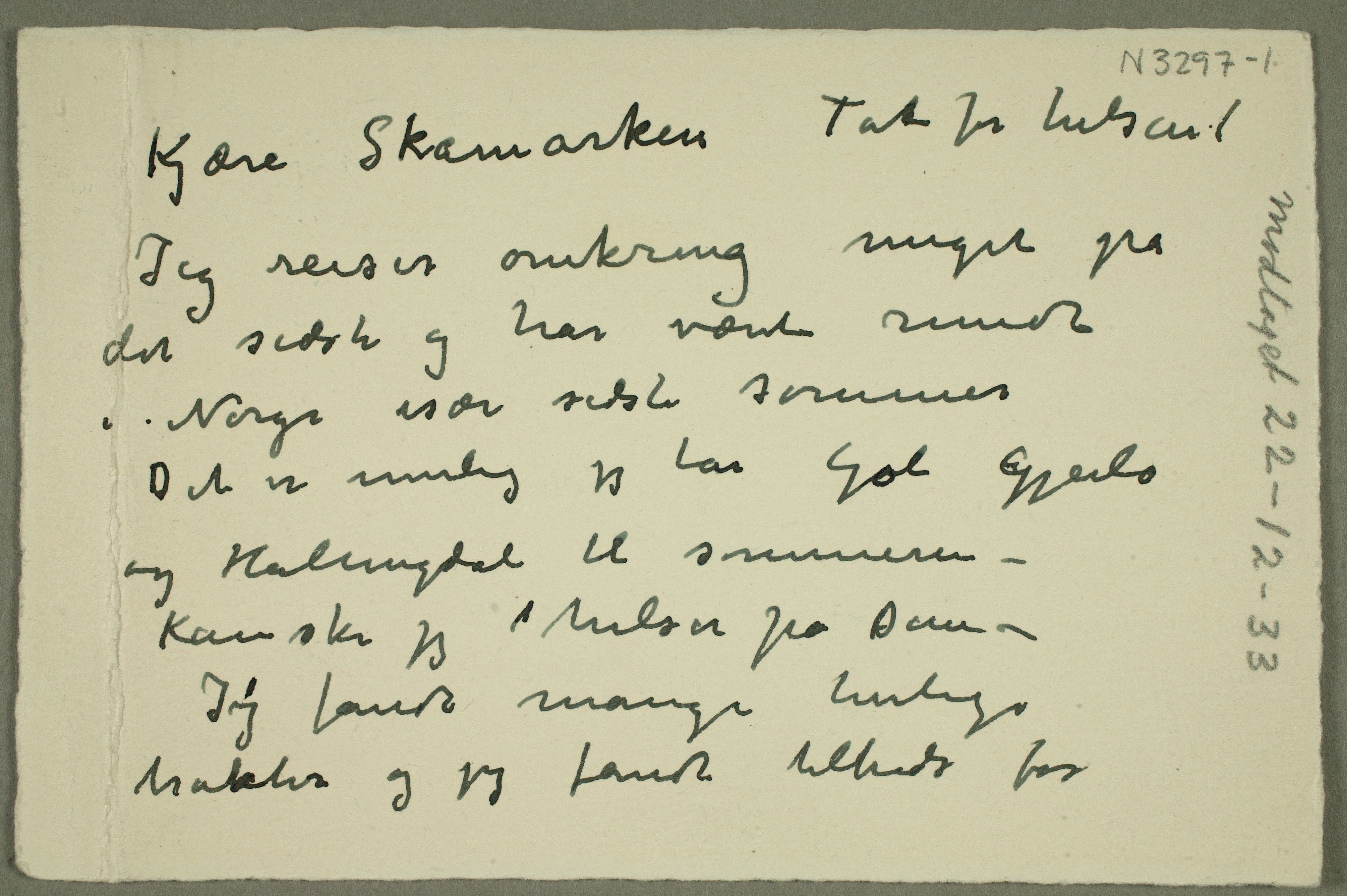 MM N 3297, Munchmuseet. Datert 22.12.1933. Brev til Søren Gustav Skamarken
