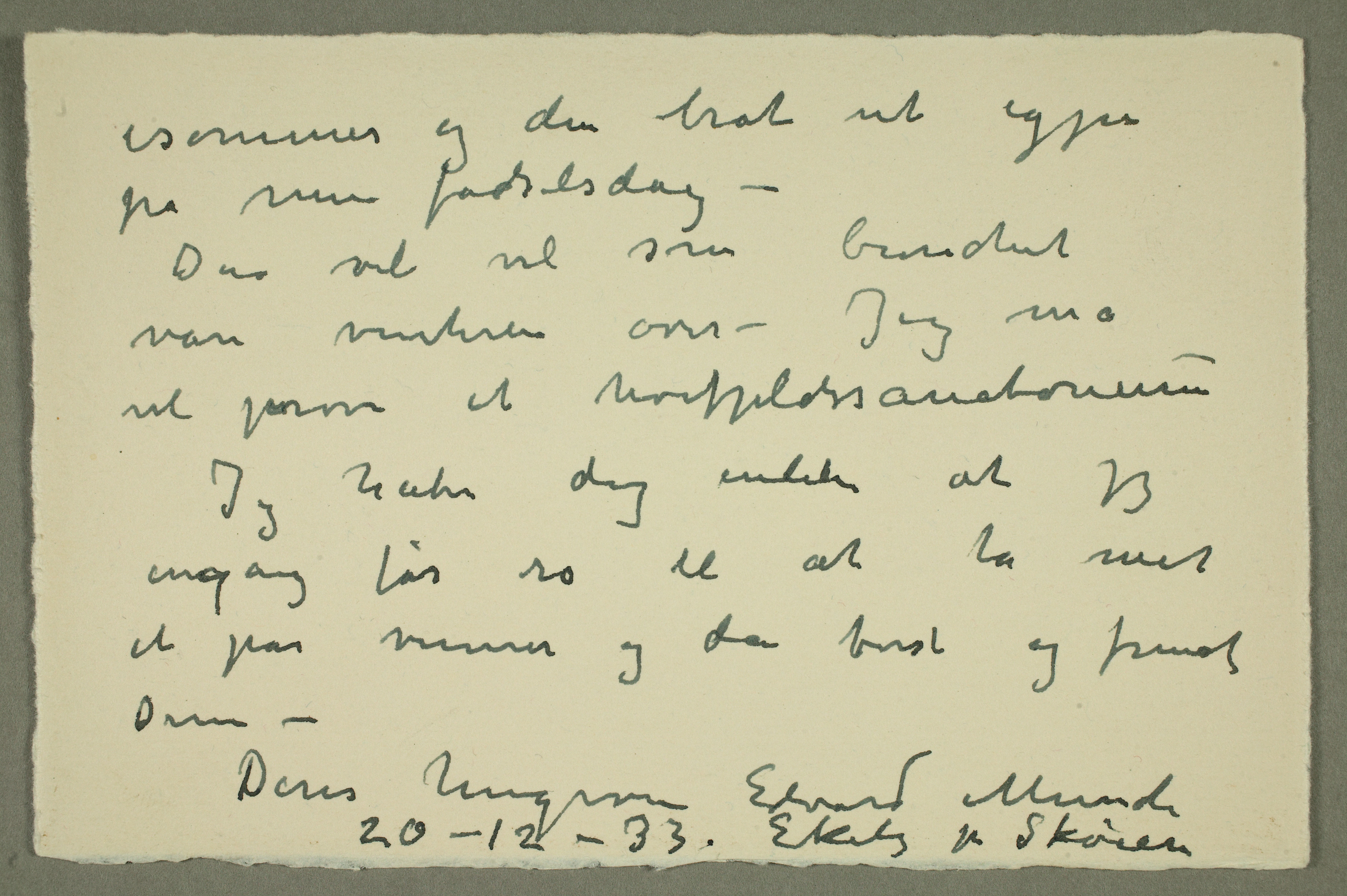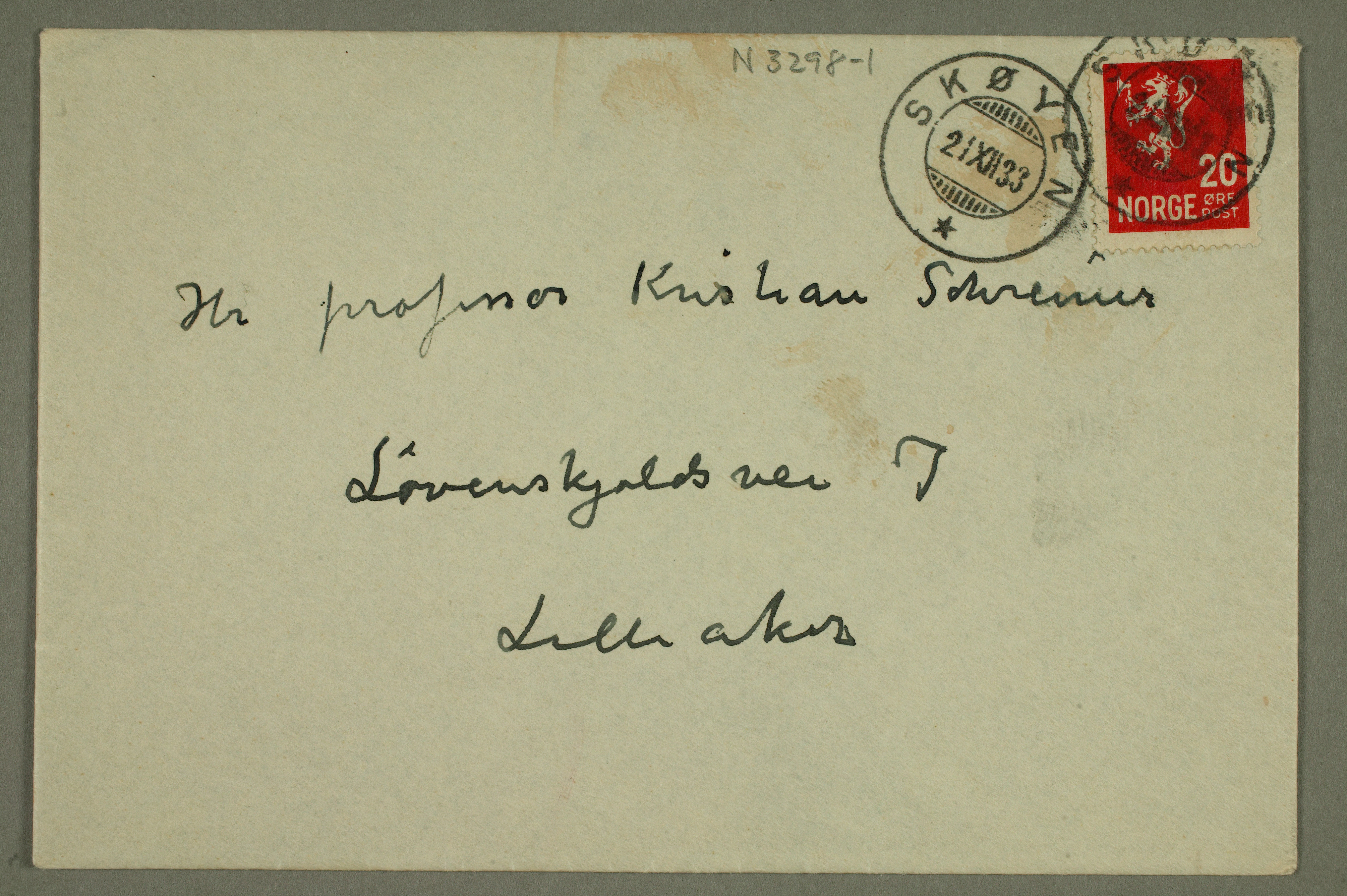 MM N 3298, Munchmuseet. Datert 20.12.1933. Brev til Kristian Schreiner