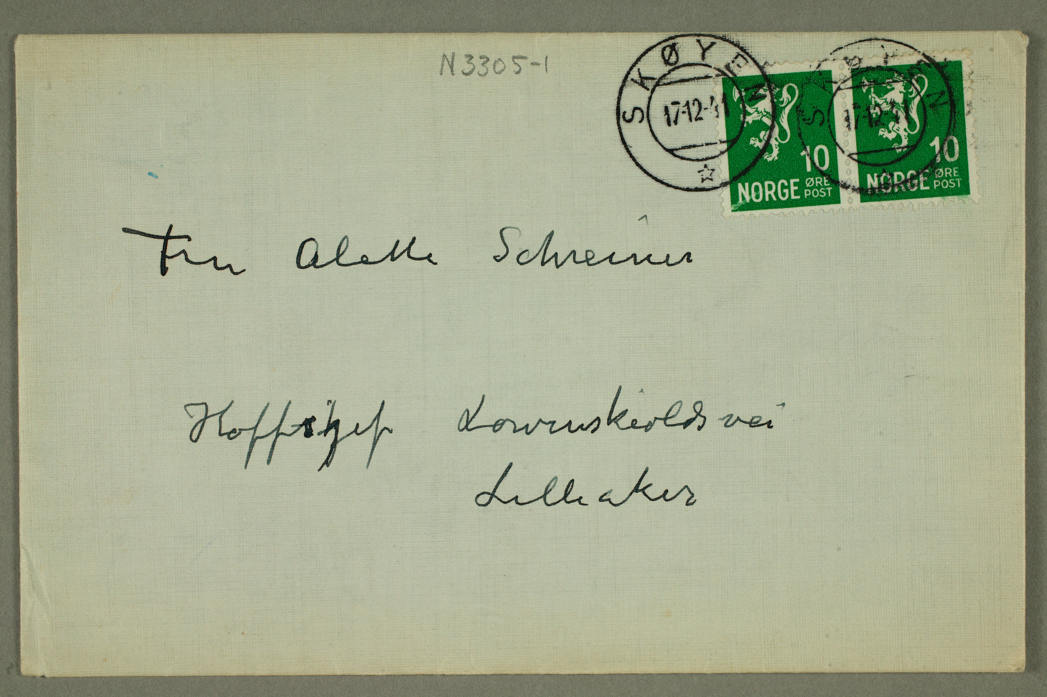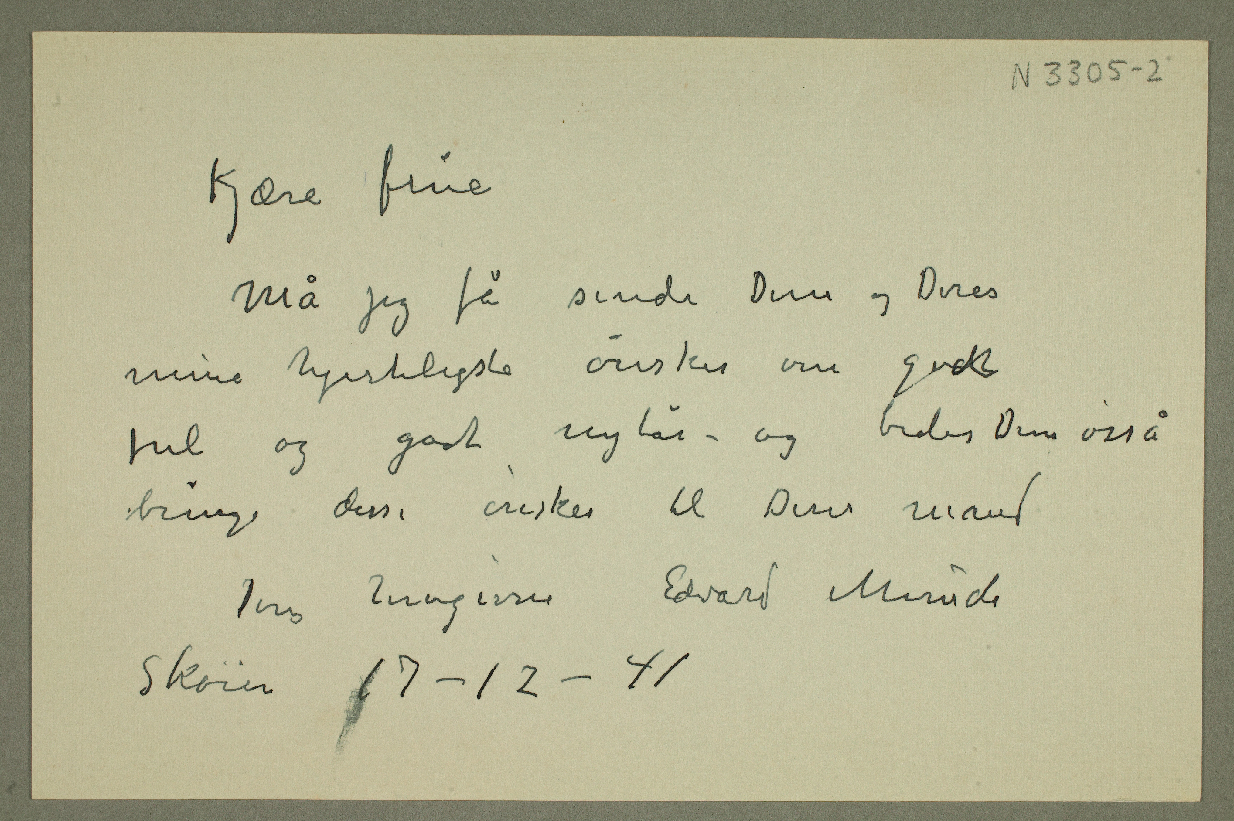 MM N 3305, Munchmuseet. Datert 17.12.1941. Brev til Alette Schreiner