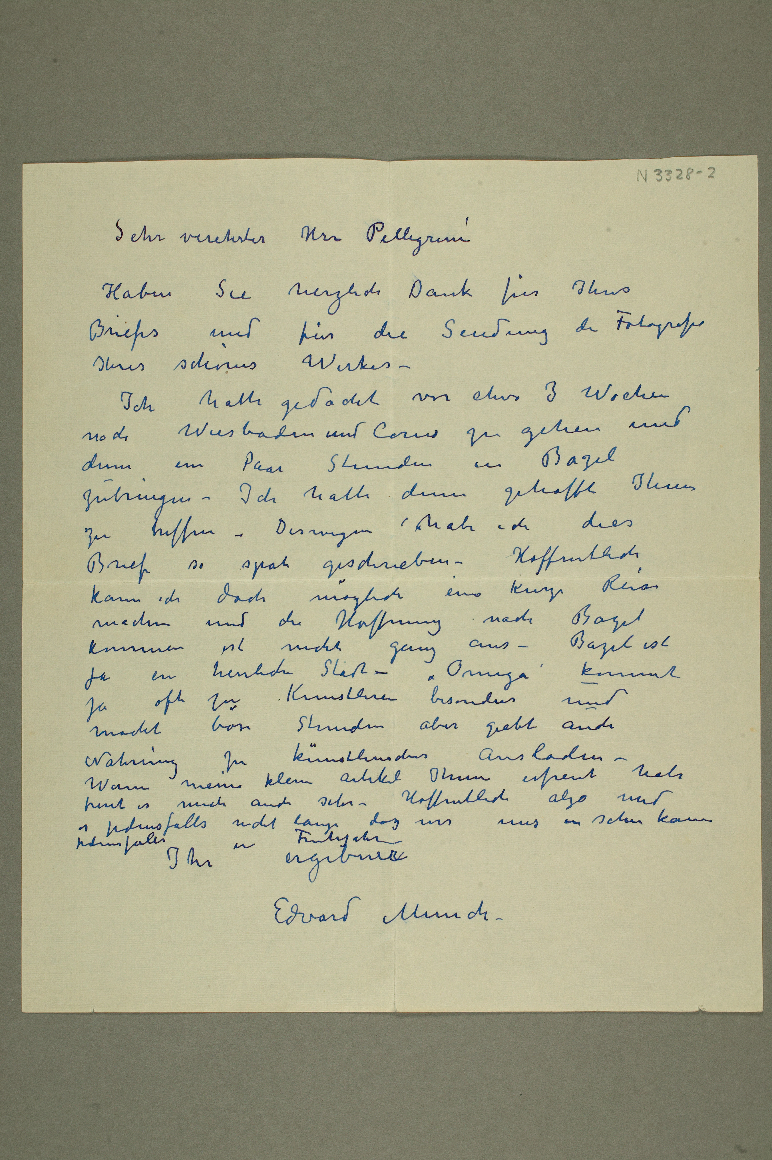 MM N 3328, Munchmuseet. Datert 1929. Brev til Alfred Pellegrini