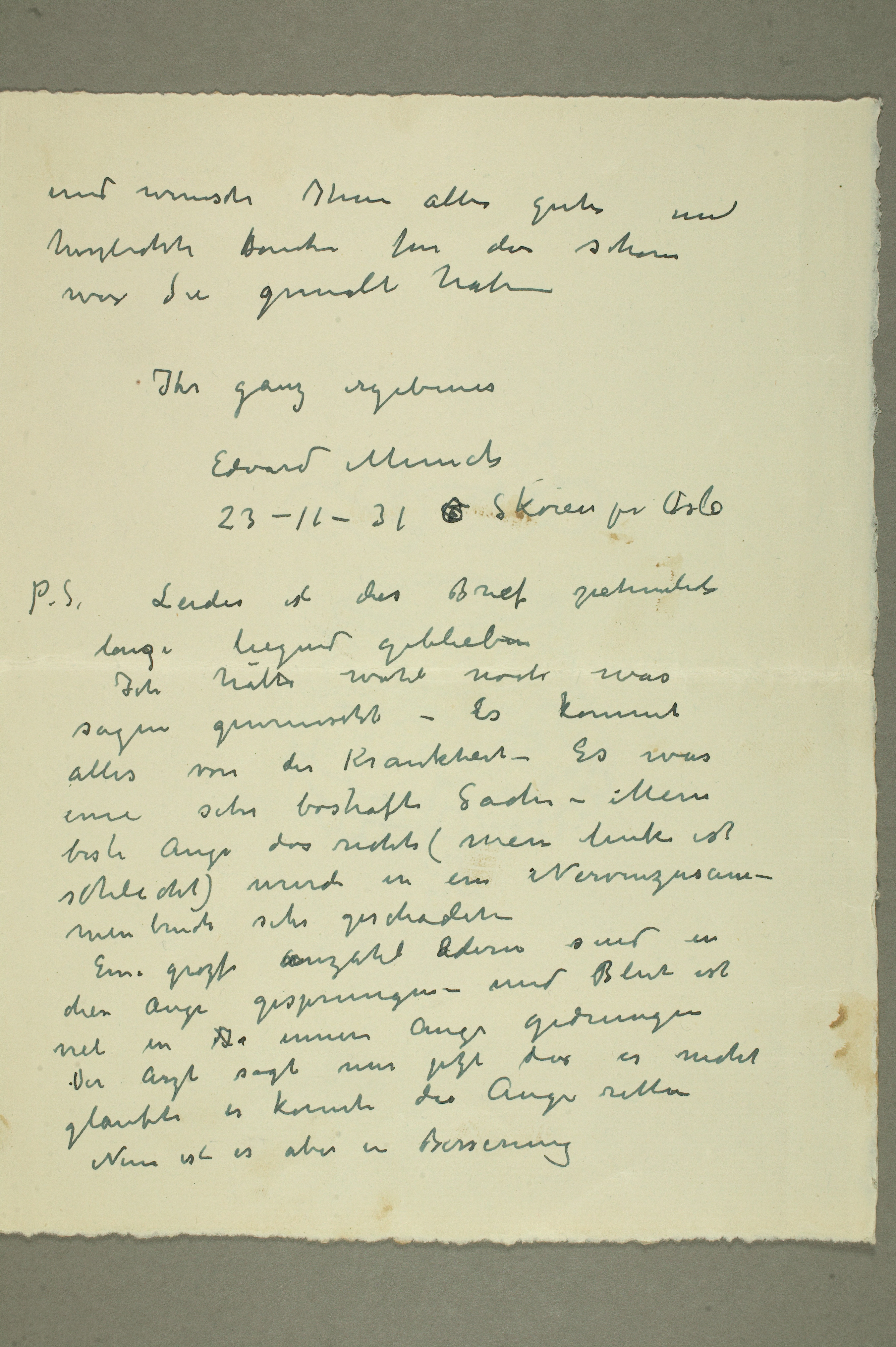 MM N 3329, Munchmuseet. Datert 23.11.1931. Brev til Alfred Pellegrini