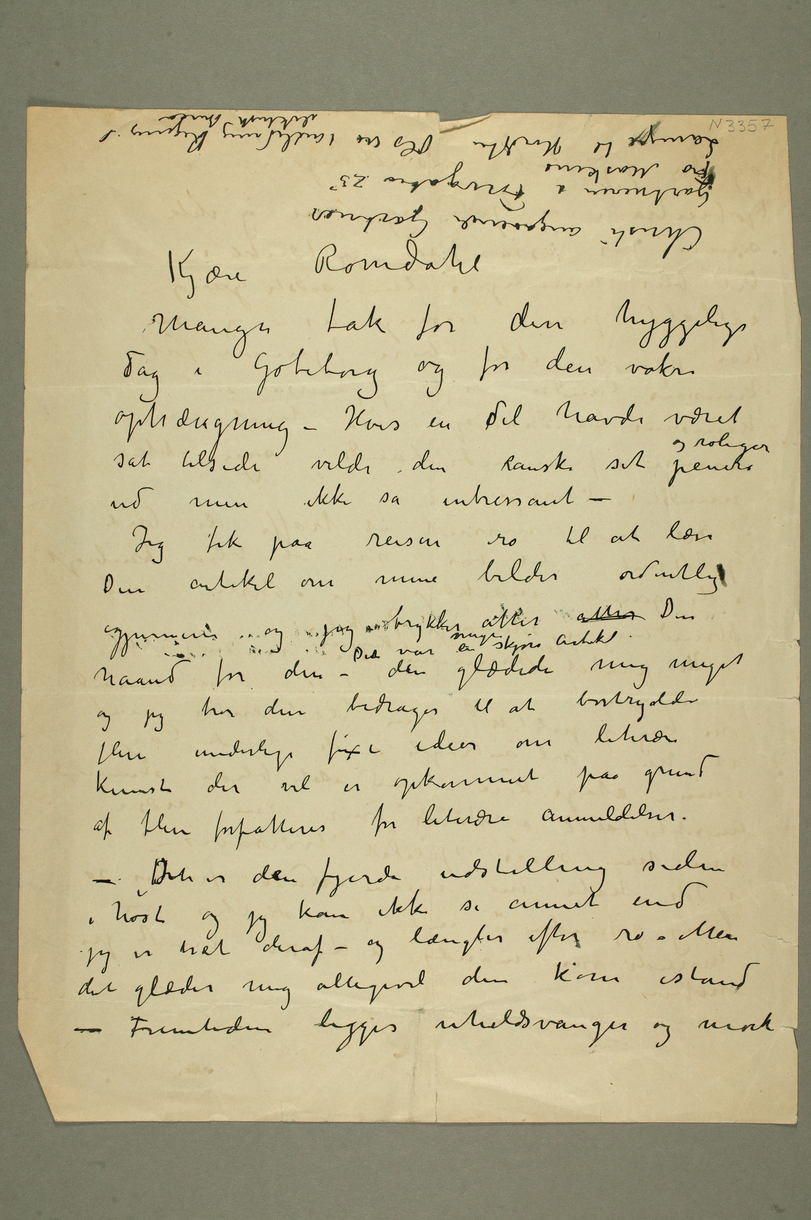 MM N 3357, Munchmuseet. Ikke datert. Brevutkast til Axel Romdahl, Göteborgs Konstmuseum.