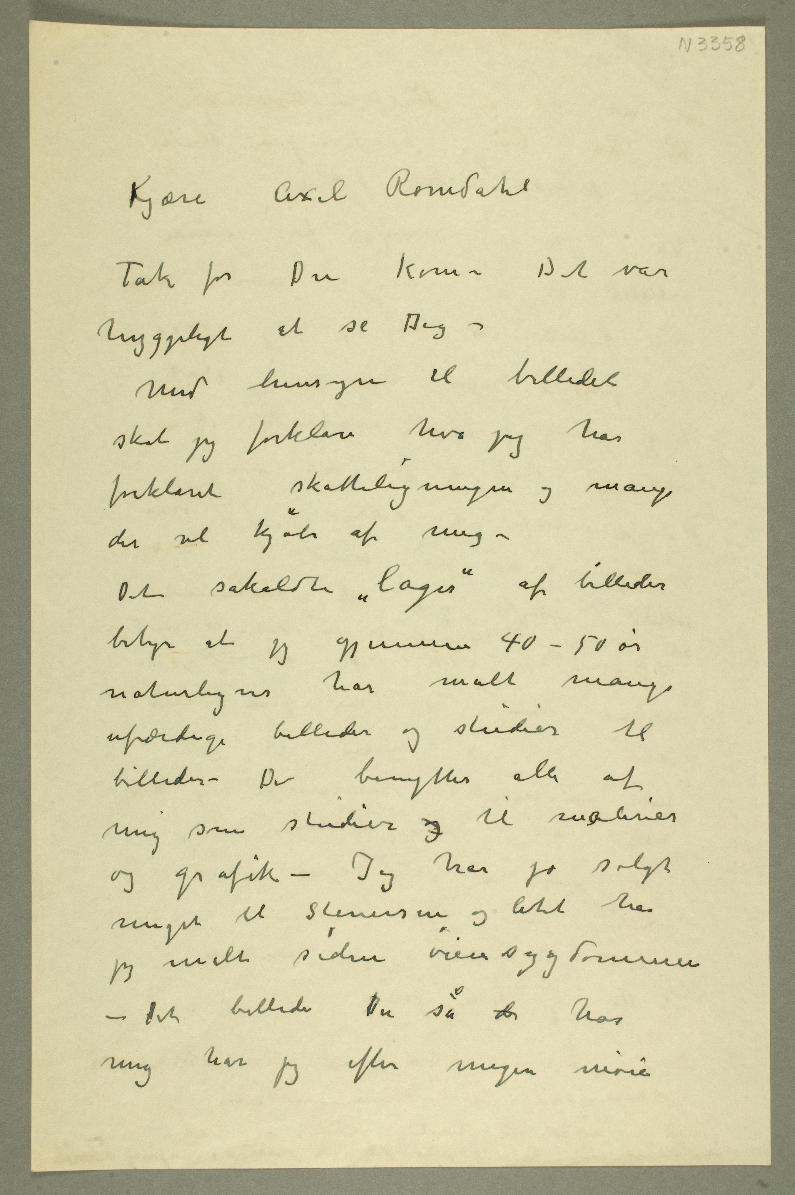 MM N 3358, Munchmuseet. Ikke datert. Brevutkast til Axel Romdahl, Göteborgs Konstmuseum.
