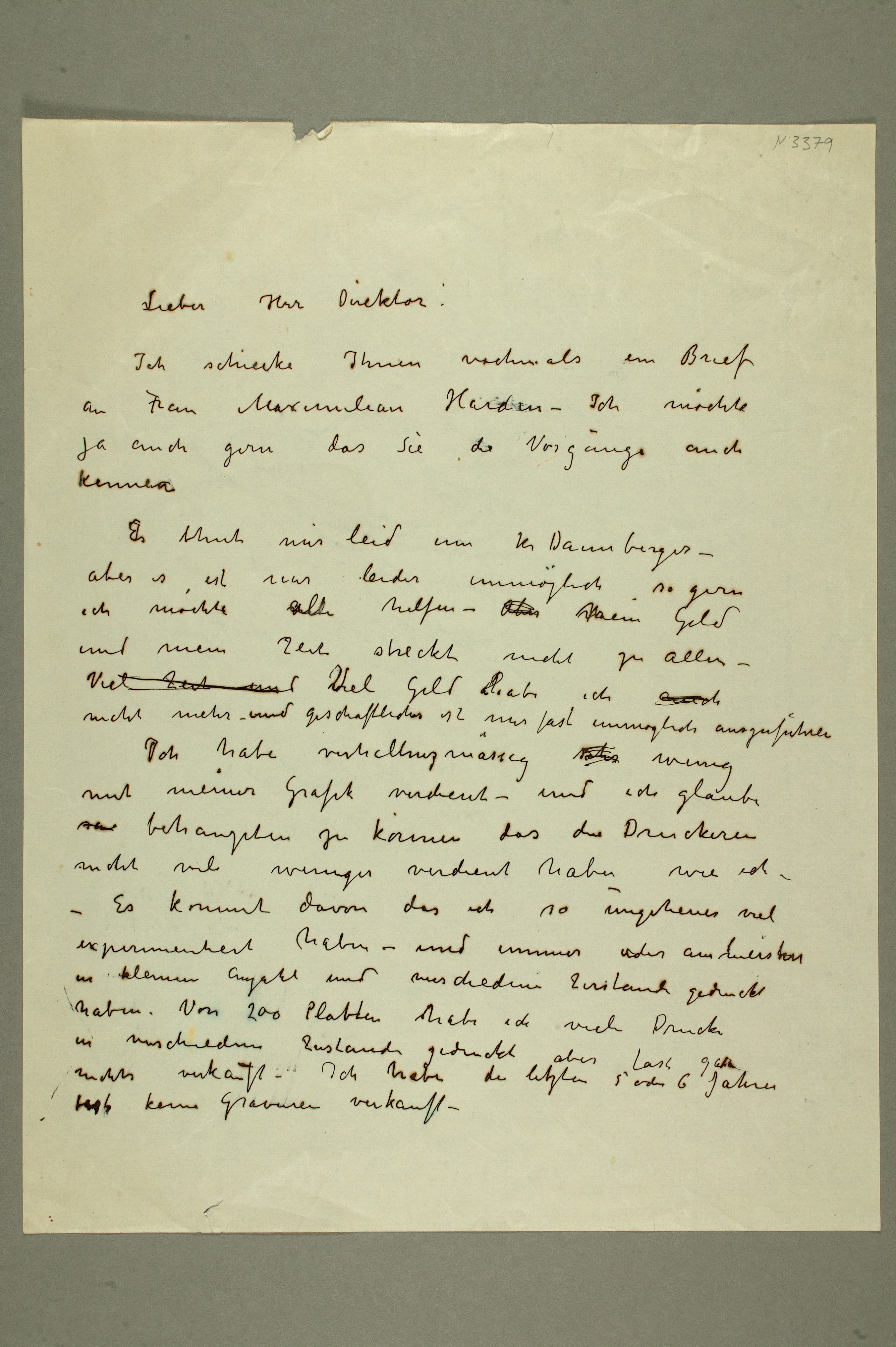 MM N 3379, Munchmuseet. Datert 1932. Brevutkast til Kunsthaus Zürich.