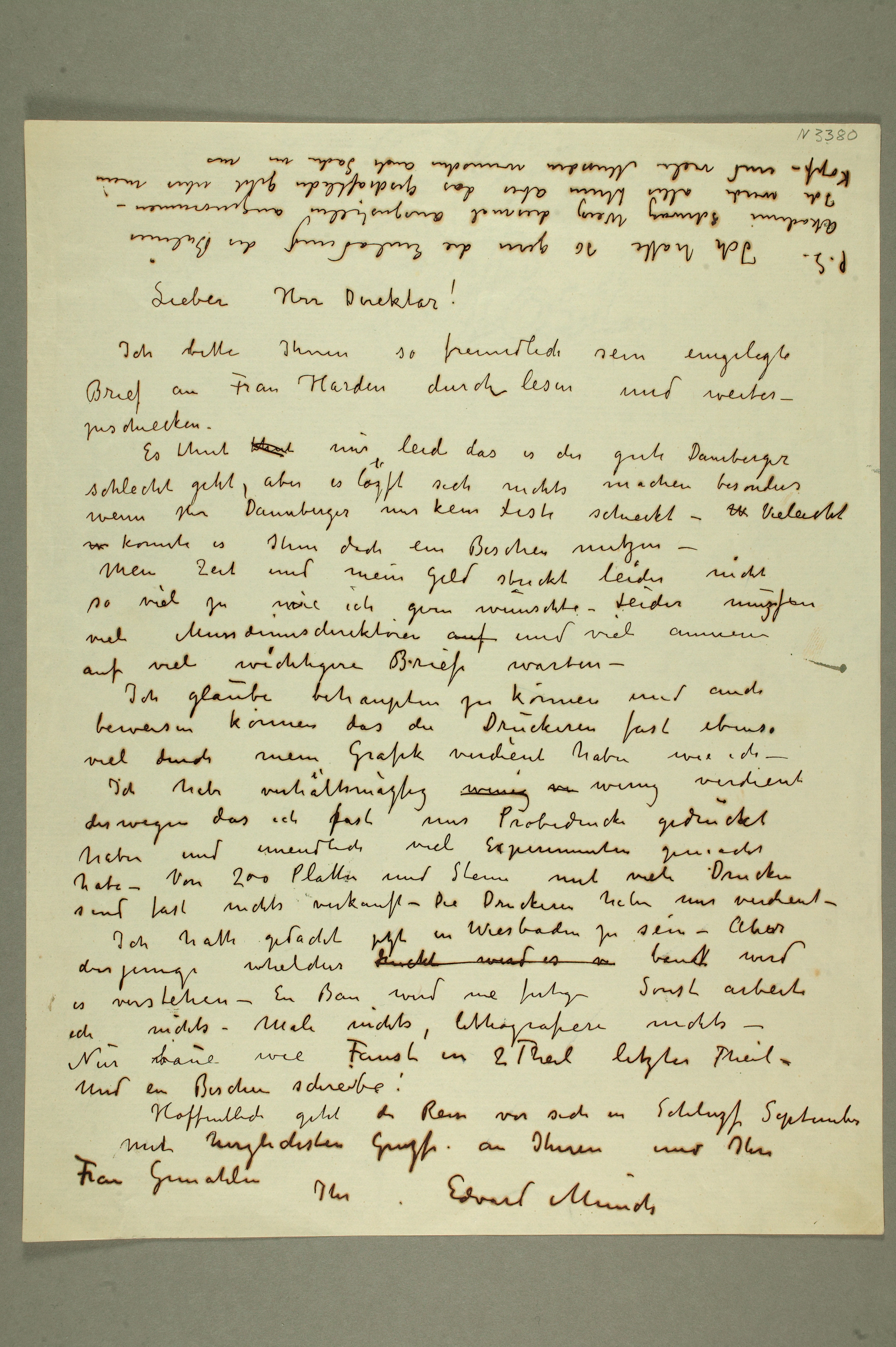 MM N 3380, Munchmuseet. Datert 1932. Brevutkast til Kunsthaus Zürich.