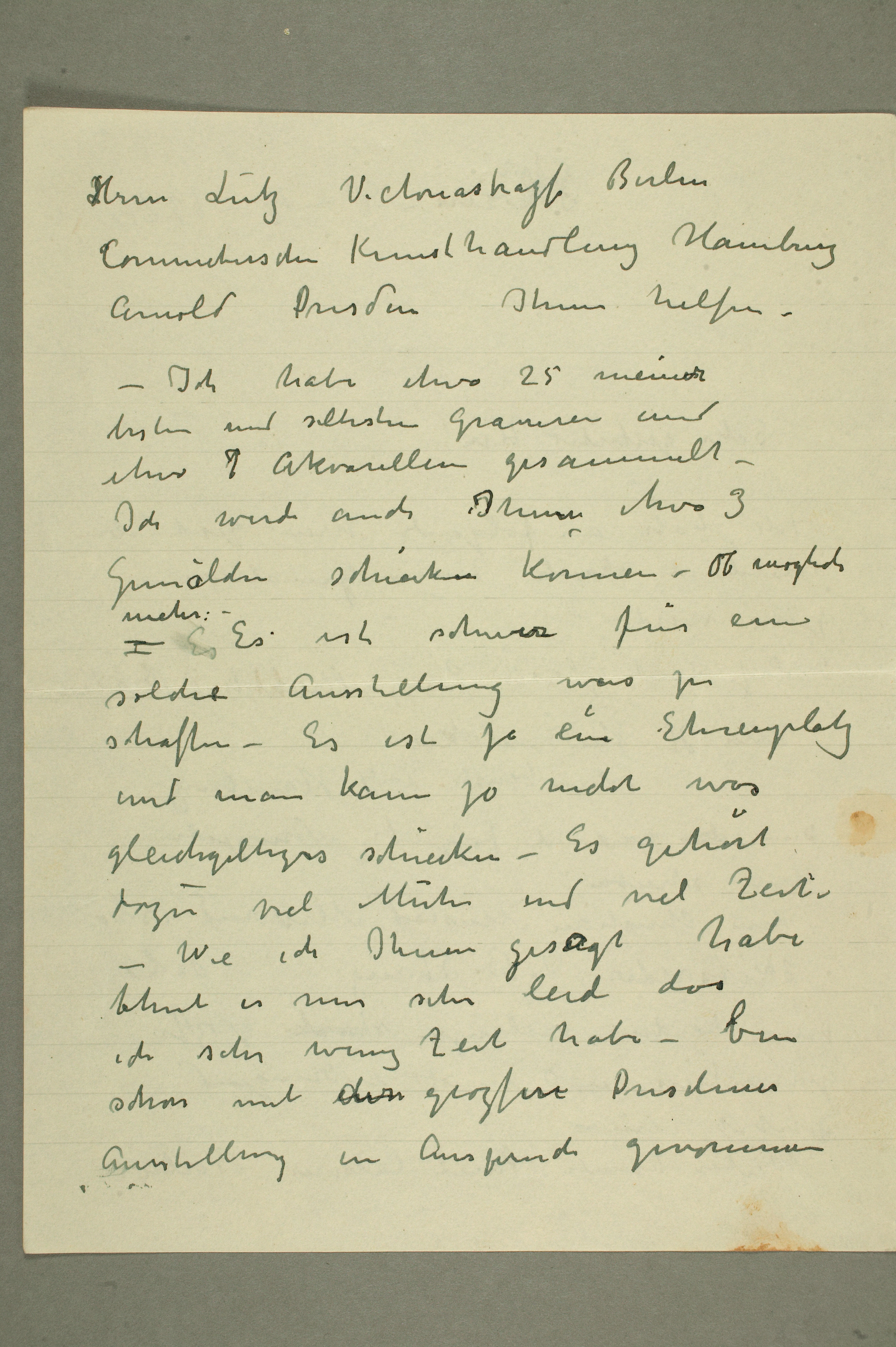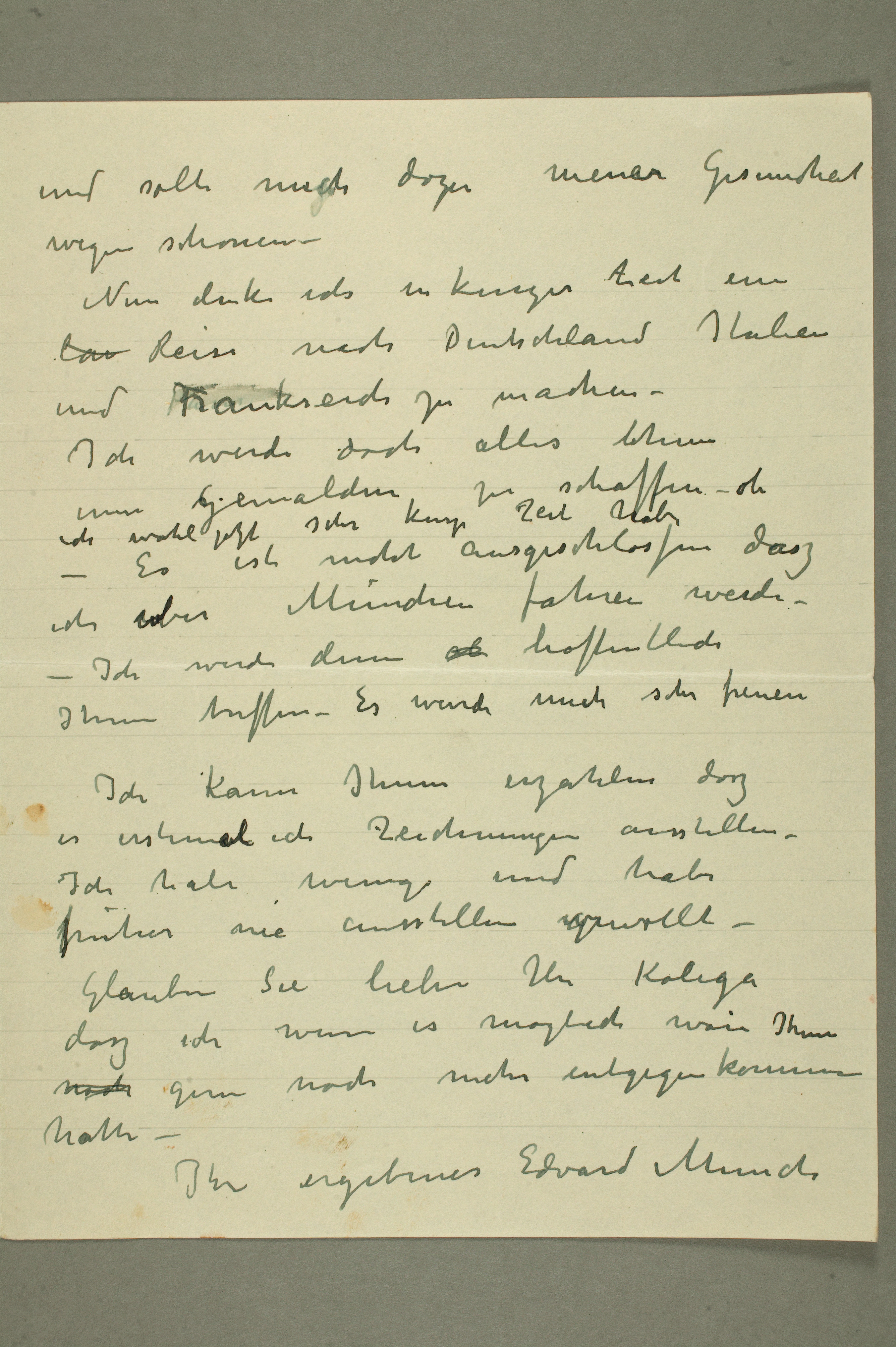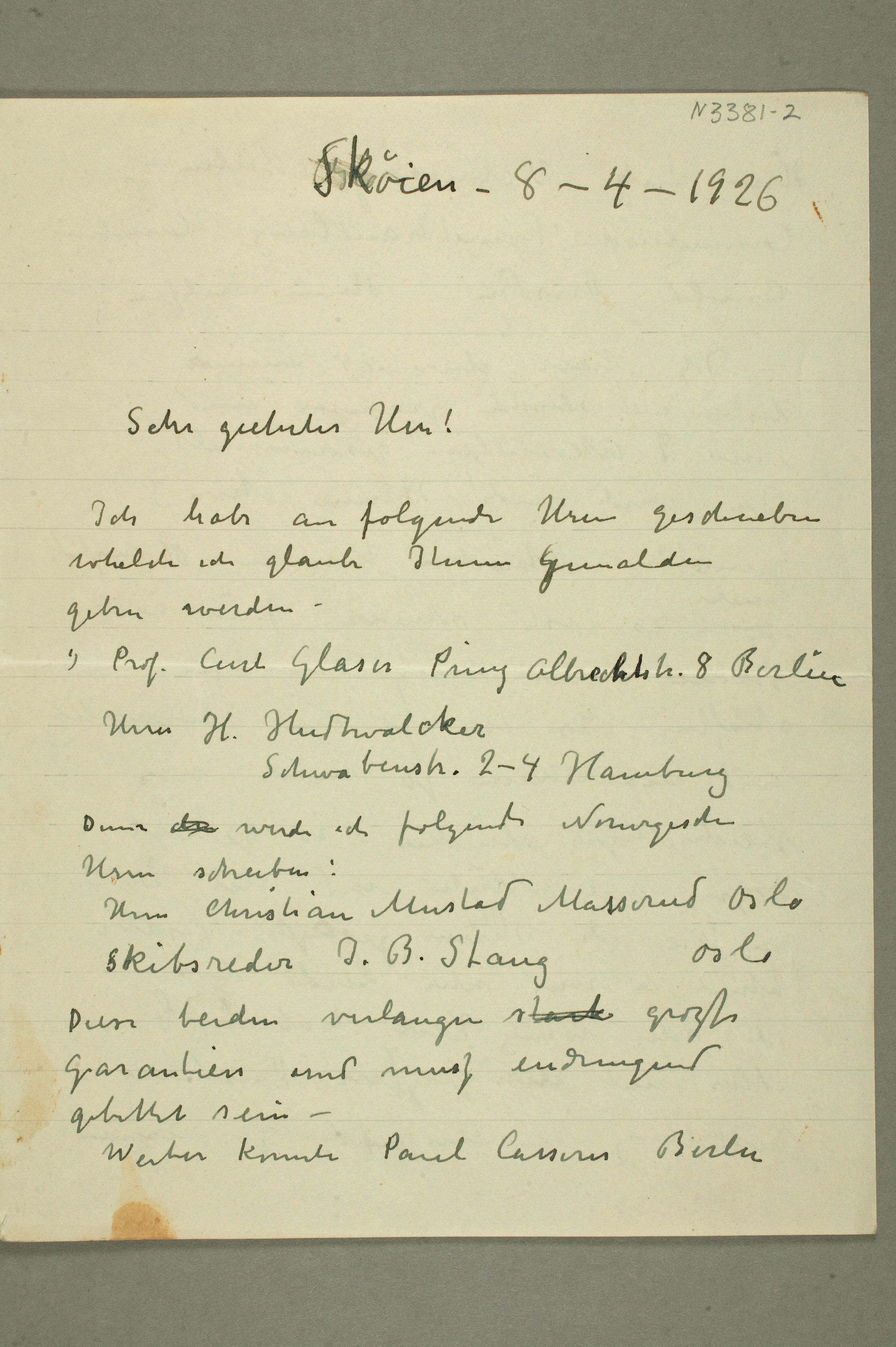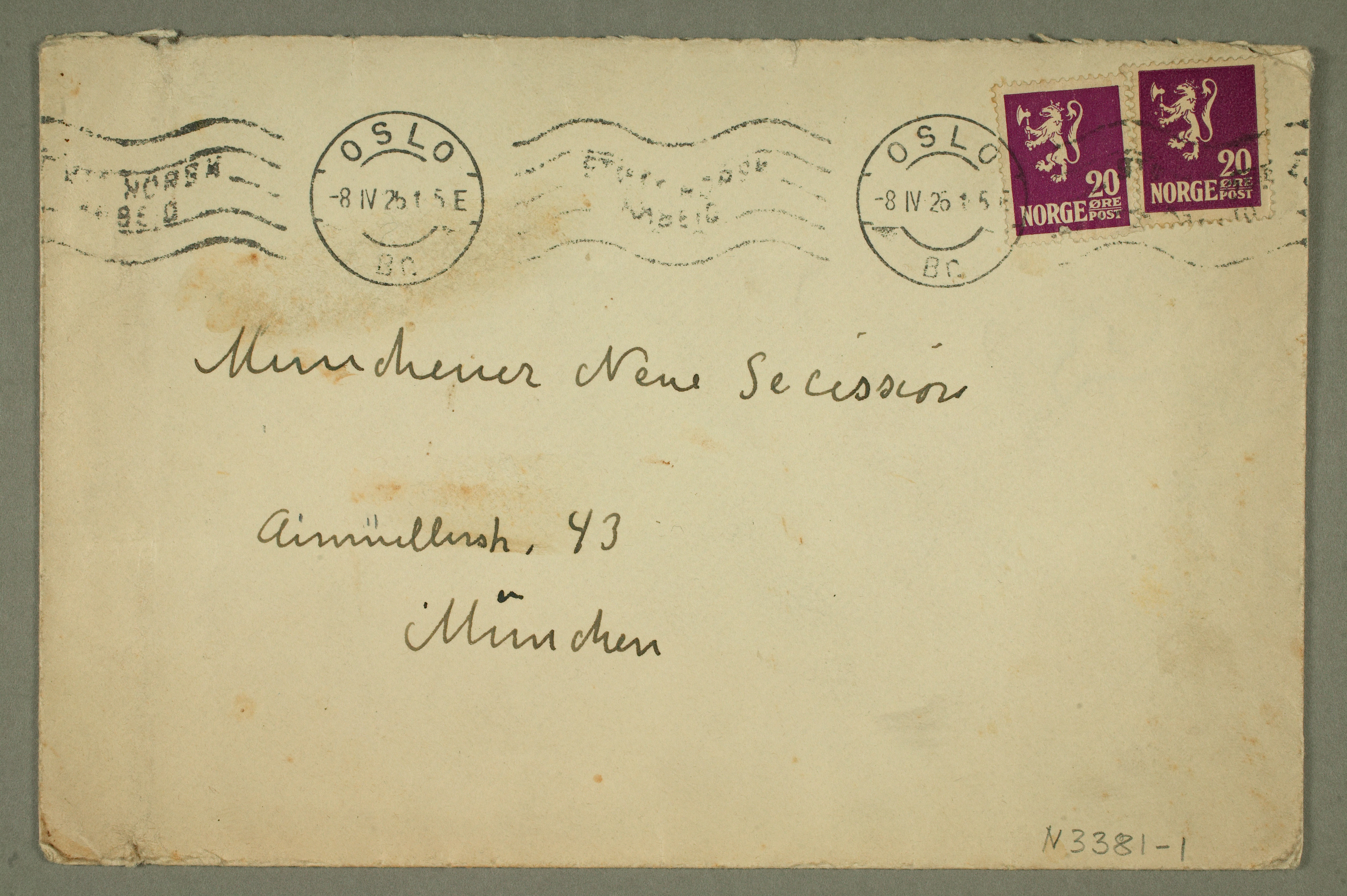 MM N 3381, Munchmuseet. Datert 8.4.1926. Brev til Adolf Schinnerer, Münchener Neue Secession